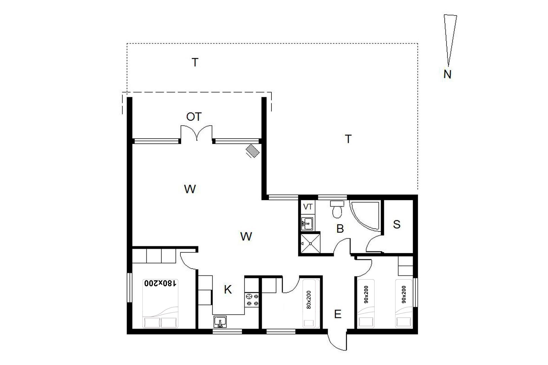 Sengestørrelse: 1 dobbeltseng (180x200 cm) + 2 enkeltsenge (90x200 cm) + 1 køjeseng (80x200 cm).