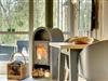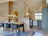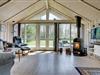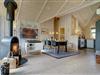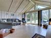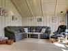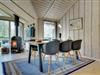 Den lyse stue er sommerhusets naturlige samlingspunkt, hvor køkken, spiseplads og sofaområde smelter sammen til ét – perfekt til samvær og afslapning. Brændeovnen spreder varme og stemning på kølige dage, mens varmepumpen sørger for et behageligt indeklima året rundt.