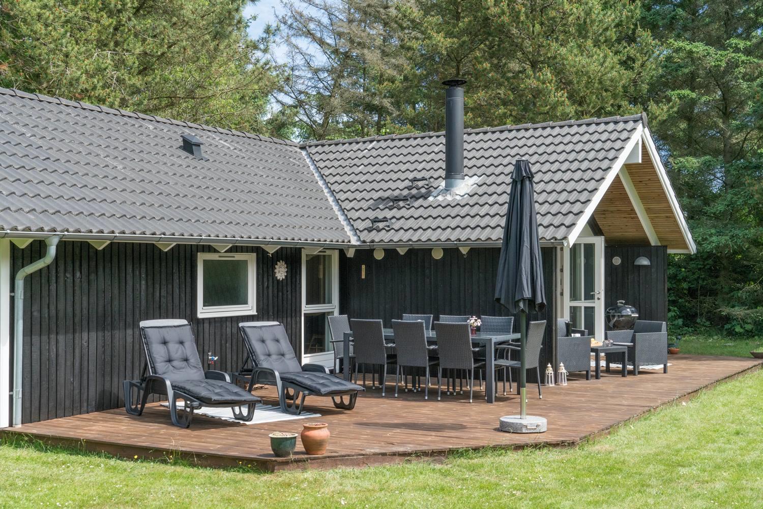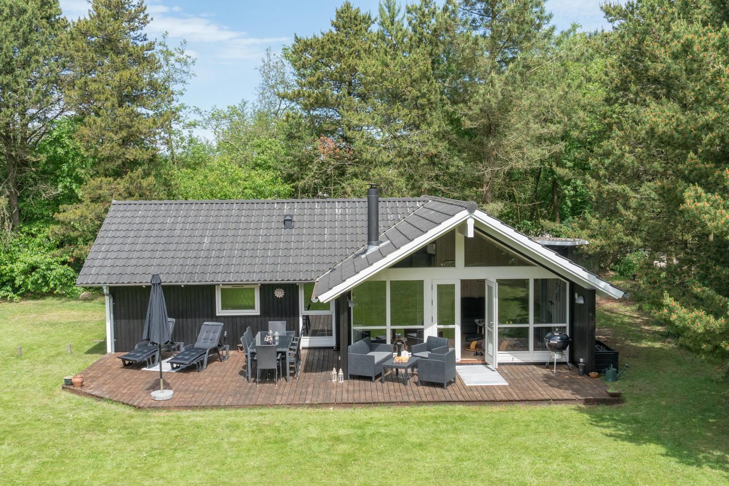 Udendørsområdet er som skabt til familier og naturelskere. På den store naturgrund er der masser af plads til leg og afslapning. Den overdækkede terrasse giver mulighed for at nyde maden i det fri – uanset vind og vejr – hvad enten det er morgenkaffe med fuglefløjt eller en hyggelig aften med god mad.
