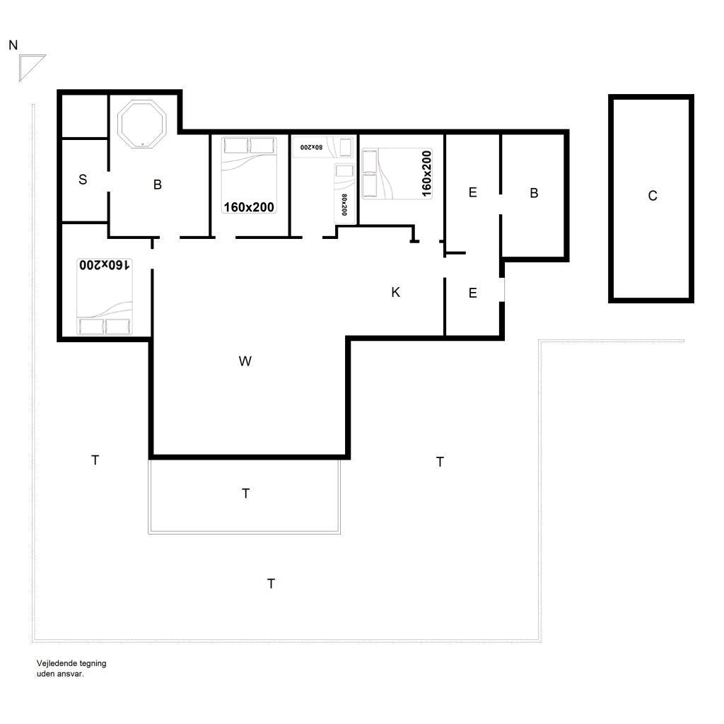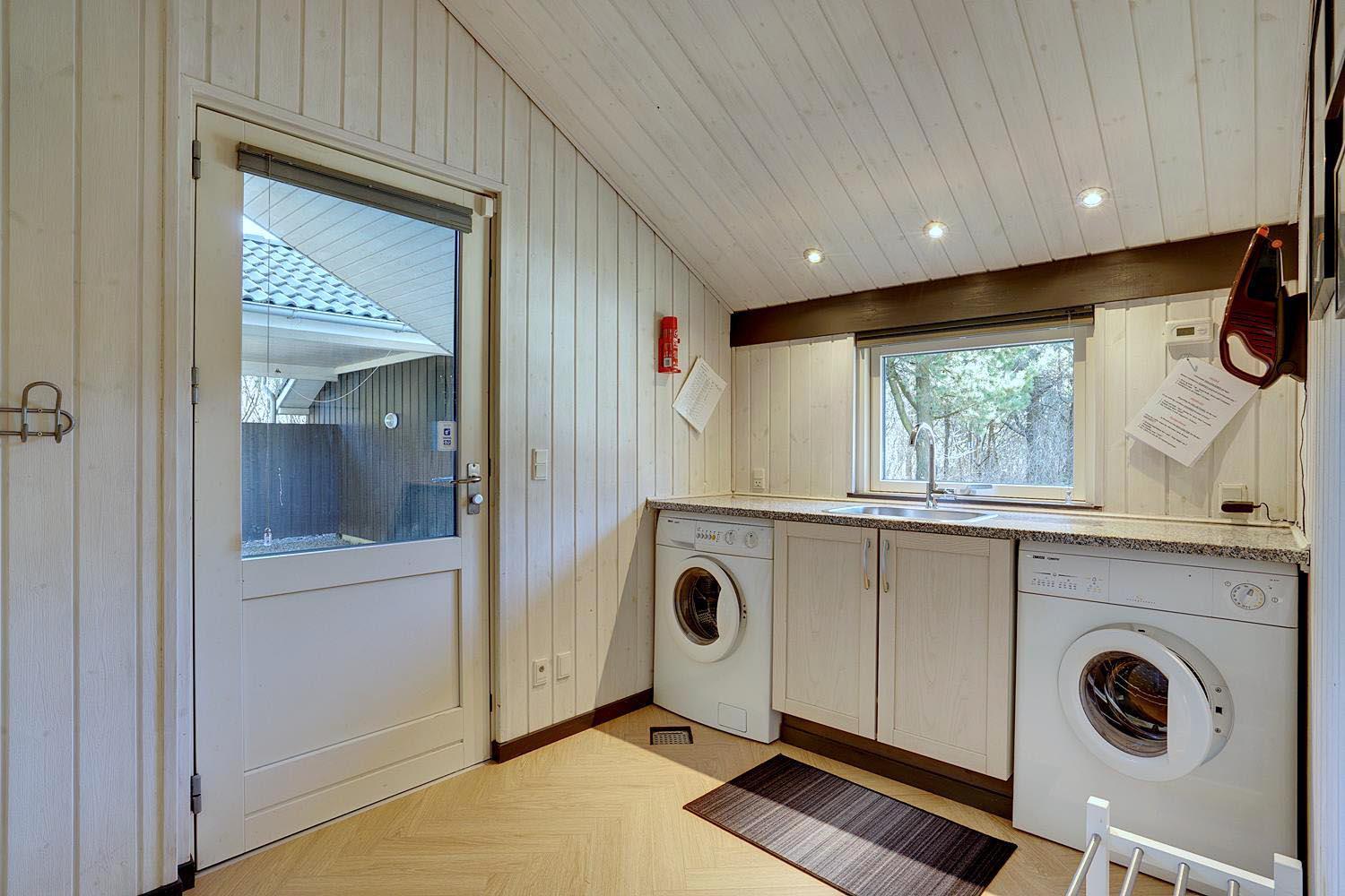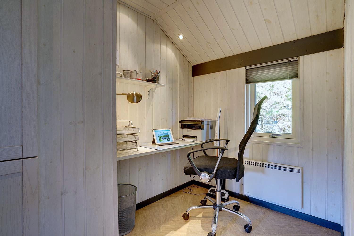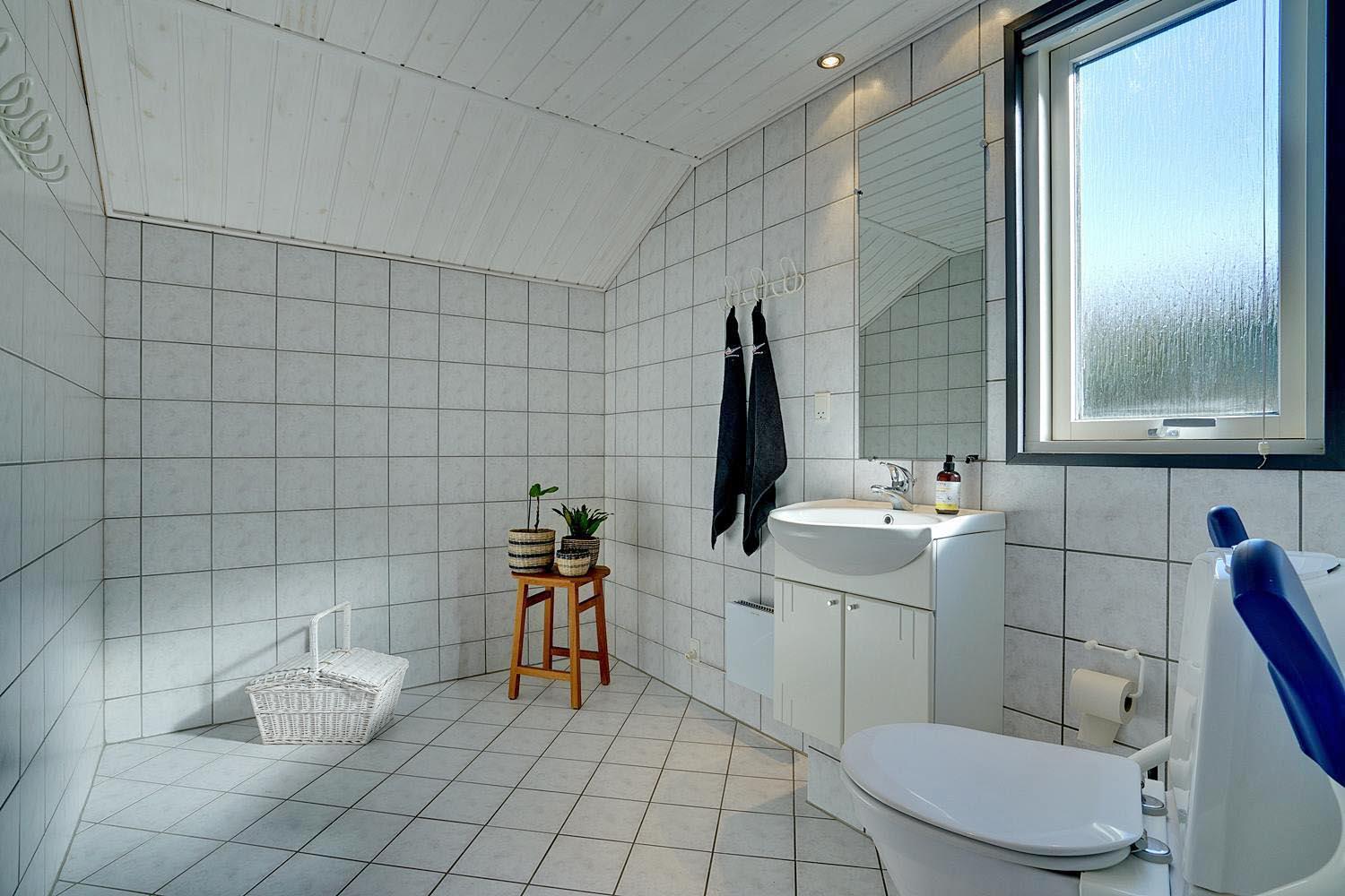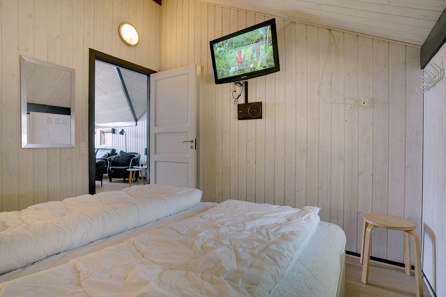 Sommerhuset har 4 soveværelser og god plads til alle. De to moderne badeværelser med gulvvarme giver ekstra komfort. I det store badeværelse kan du slappe af i den private sauna eller nyde en stund i den indendørs standvandsspa – ren wellness, helt for dig selv.