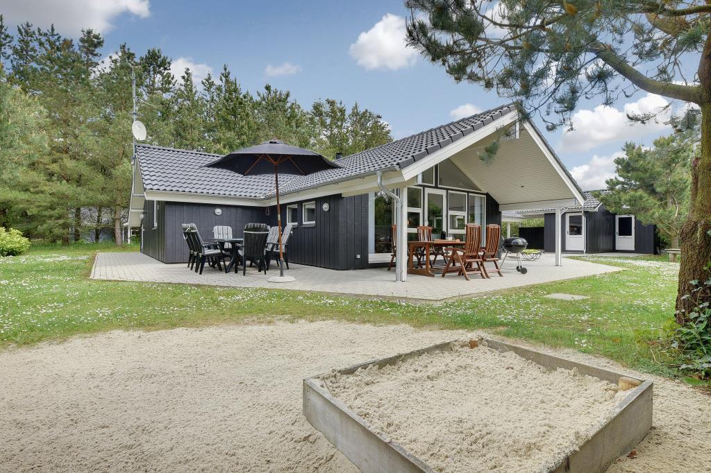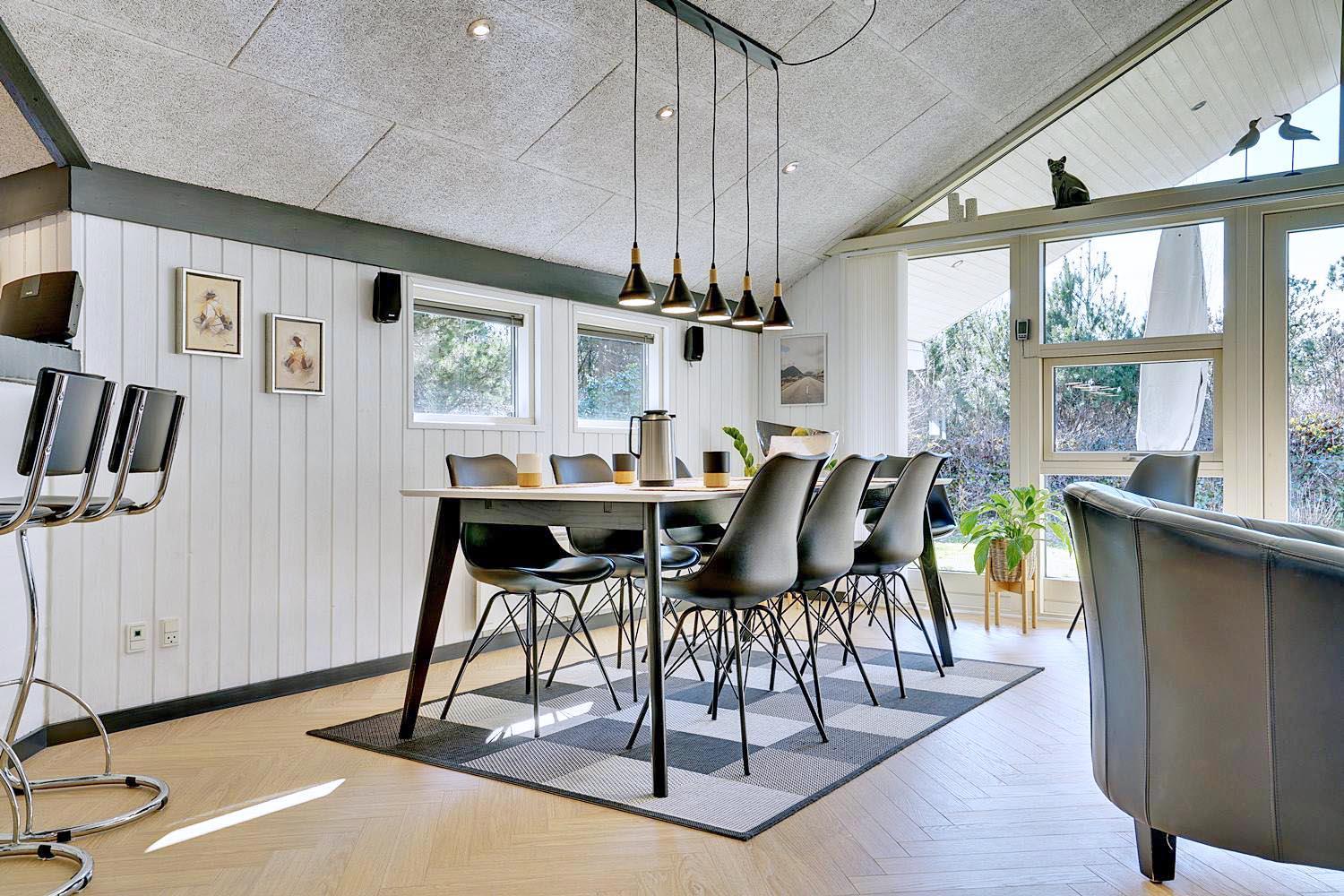 På Hybenvangen 4 i Jegum Ferieland finder du et stilfuldt og indbydende sommerhus på 135 m², hvor der er plads til op til 8 personer. Her kan du nyde roen i Vestjylland sammen med familie eller venner – og samtidig er Vesterhavet kun 11 km væk.