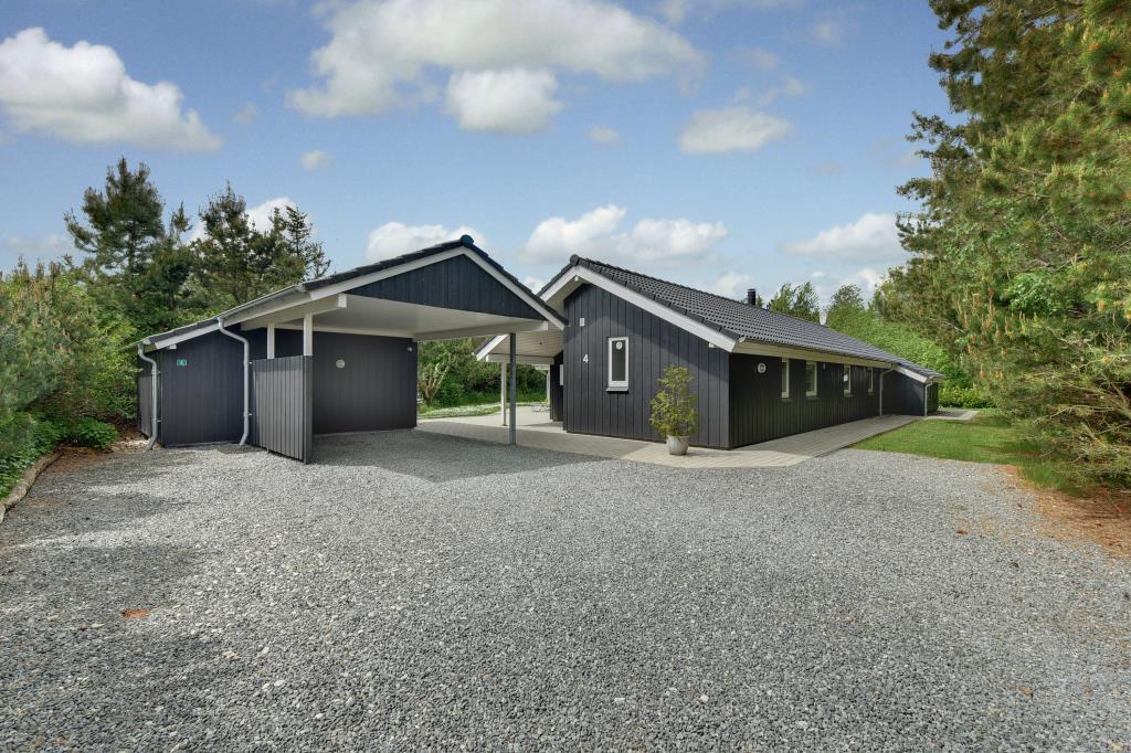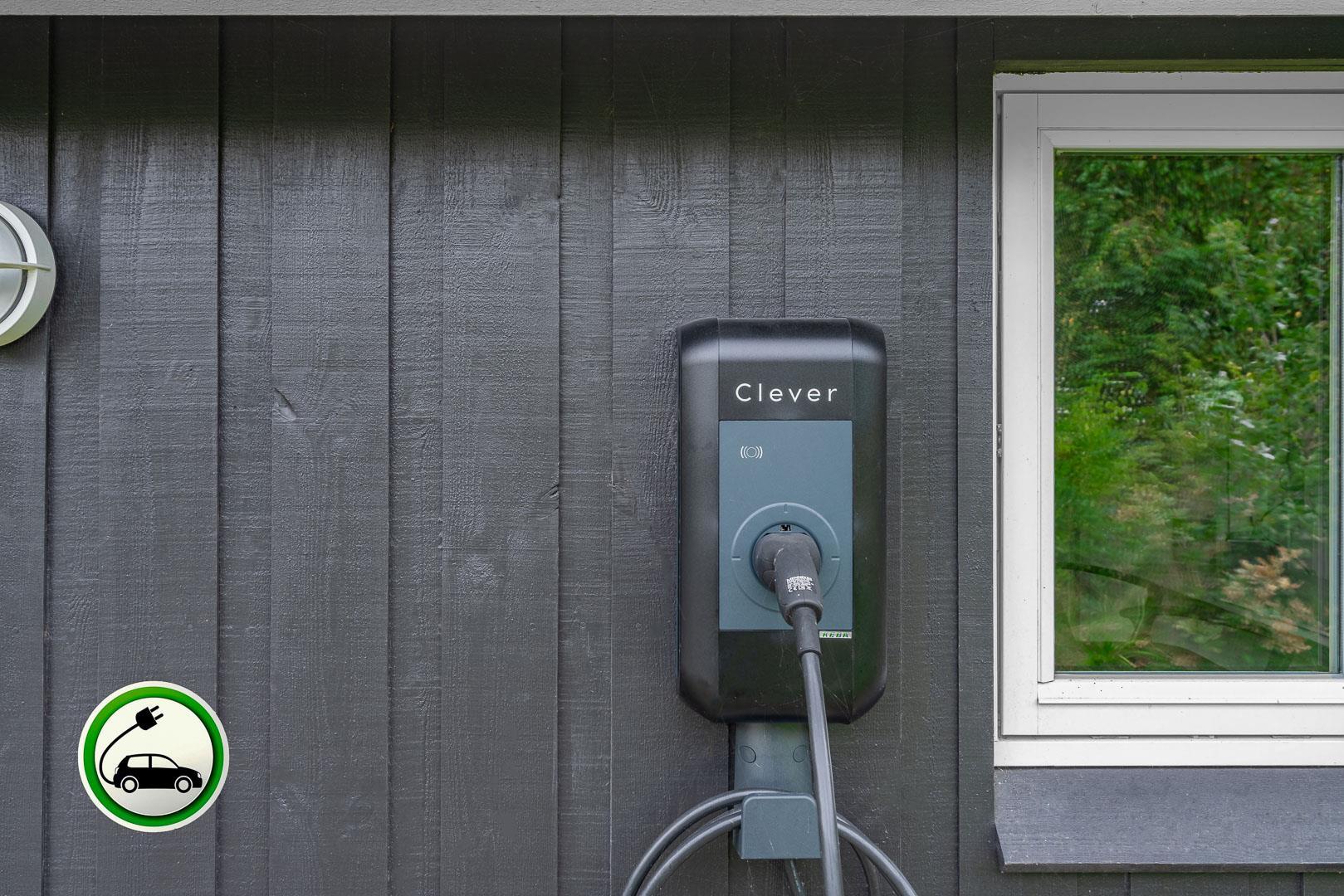 Kommer du i elbil, kan den nemt oplades direkte ved sommerhuset via Type 2-ladestander, og bilen holder trygt i carporten.