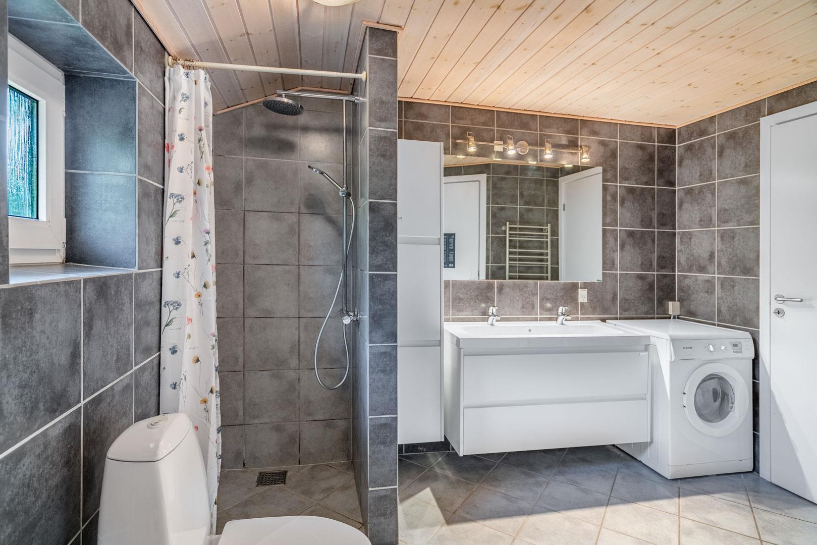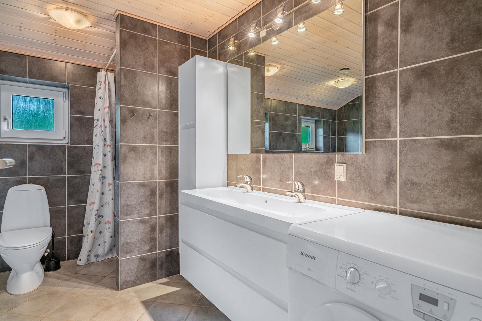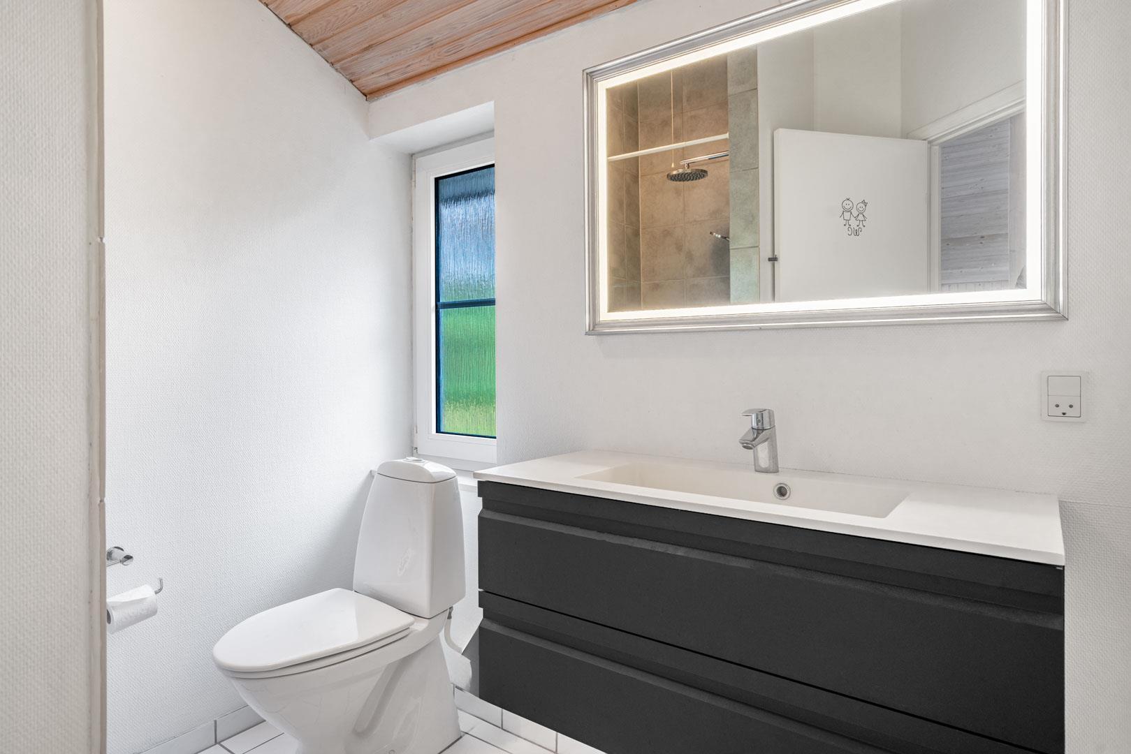 Sommerhuset har to moderne badeværelser med gulvvarme, som gør ferien ekstra behagelig – især i de køligere måneder. Rejser du med små børn, er der også tænkt på de praktiske detaljer med pusleplads.