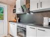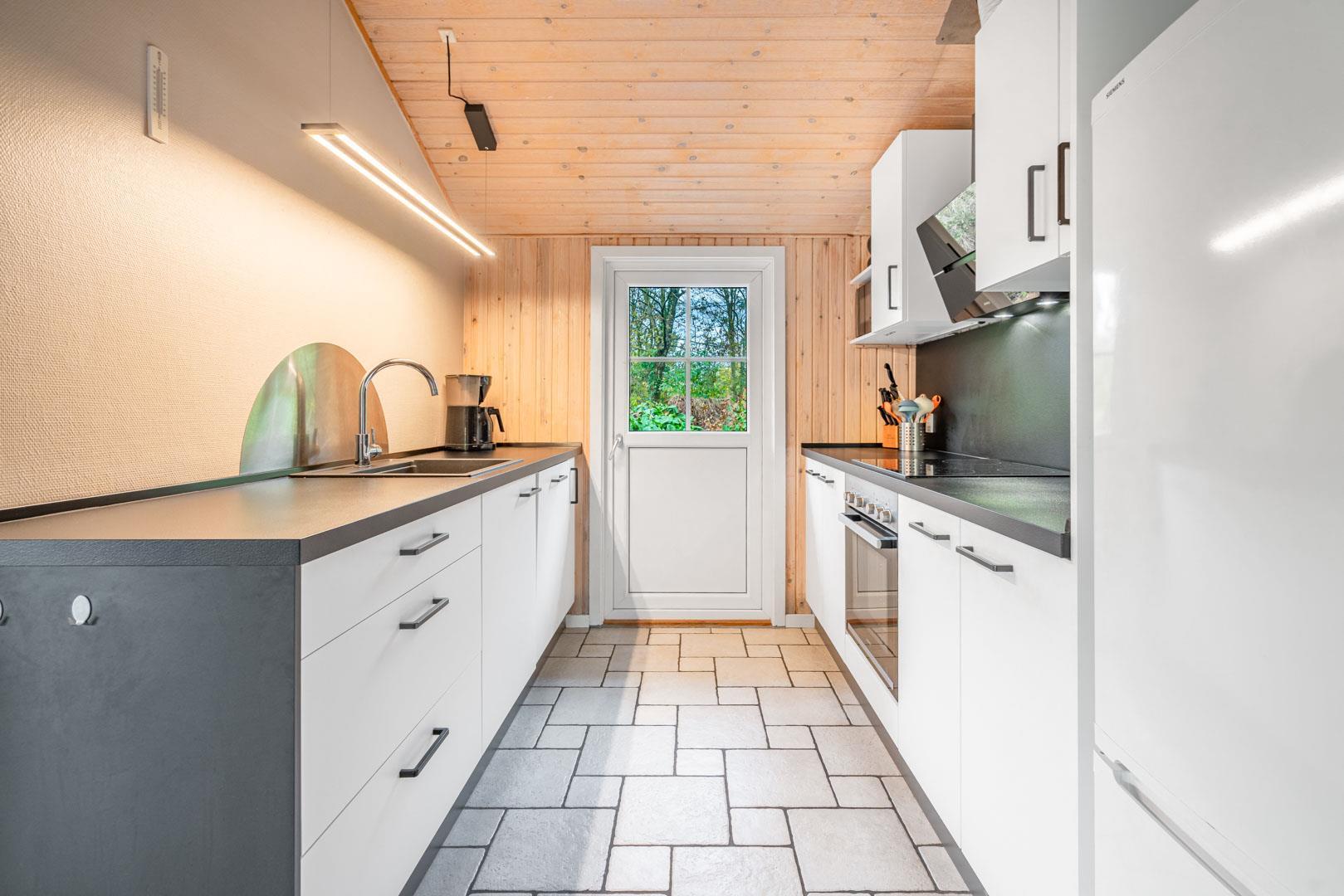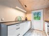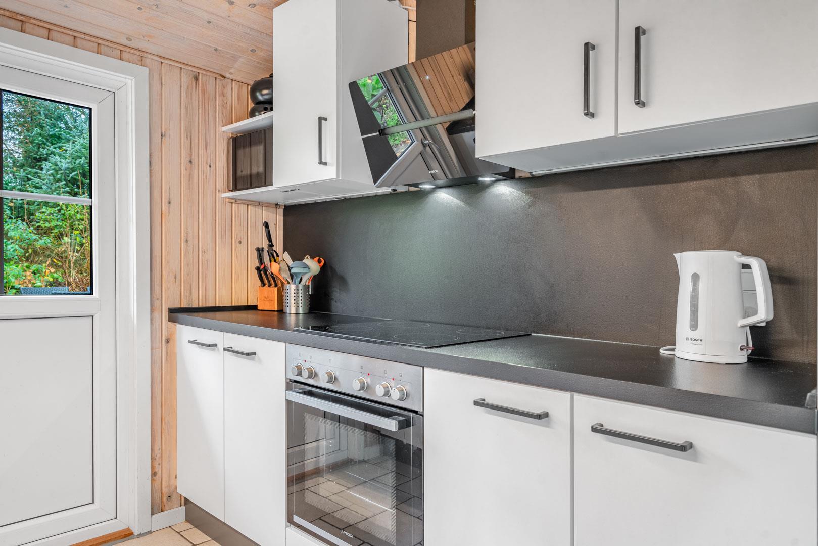 Det åbne køkken ligger i forbindelse med opholdsrummet og har naturligvis både gulvvarme og opvaskemaskine. Vaskemaskine og tørretumbler gør det nemt at være afsted i længere tid, og værdigenstande kan opbevares sikkert i husets værdiboks. Varmepumpen sikrer et behageligt indeklima året rundt.
