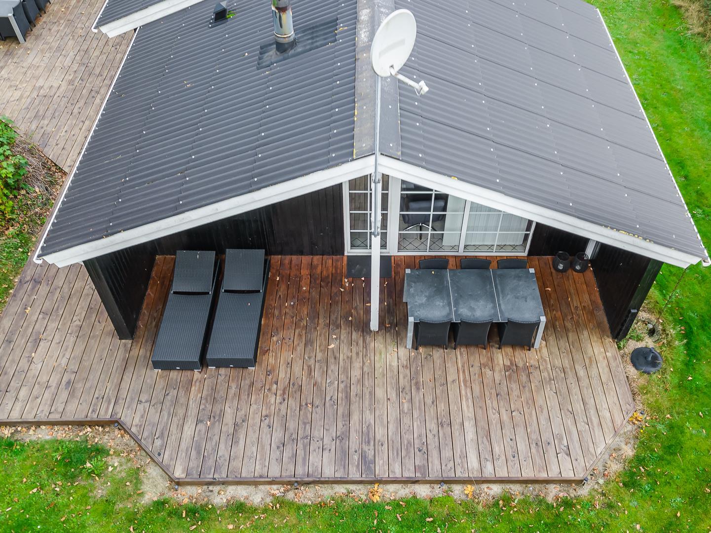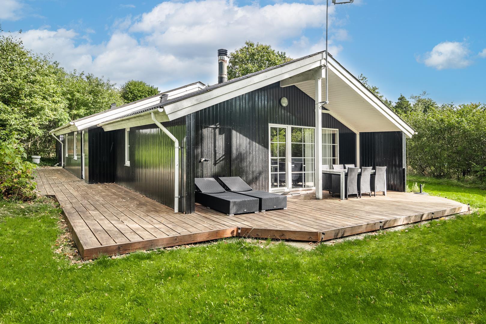 Udelivet er en vigtig del af ferien – og her er rammerne helt rigtige. Den overdækkede terrasse ligger i direkte forlængelse af huset og indbyder til morgenkaffe i læ, lange grillaftener og afslappede stunder i den friske vestjyske luft. Selv når vejret viser sig fra sin mere typiske danske side, kan du sidde tørt og nyde naturen omkring dig.