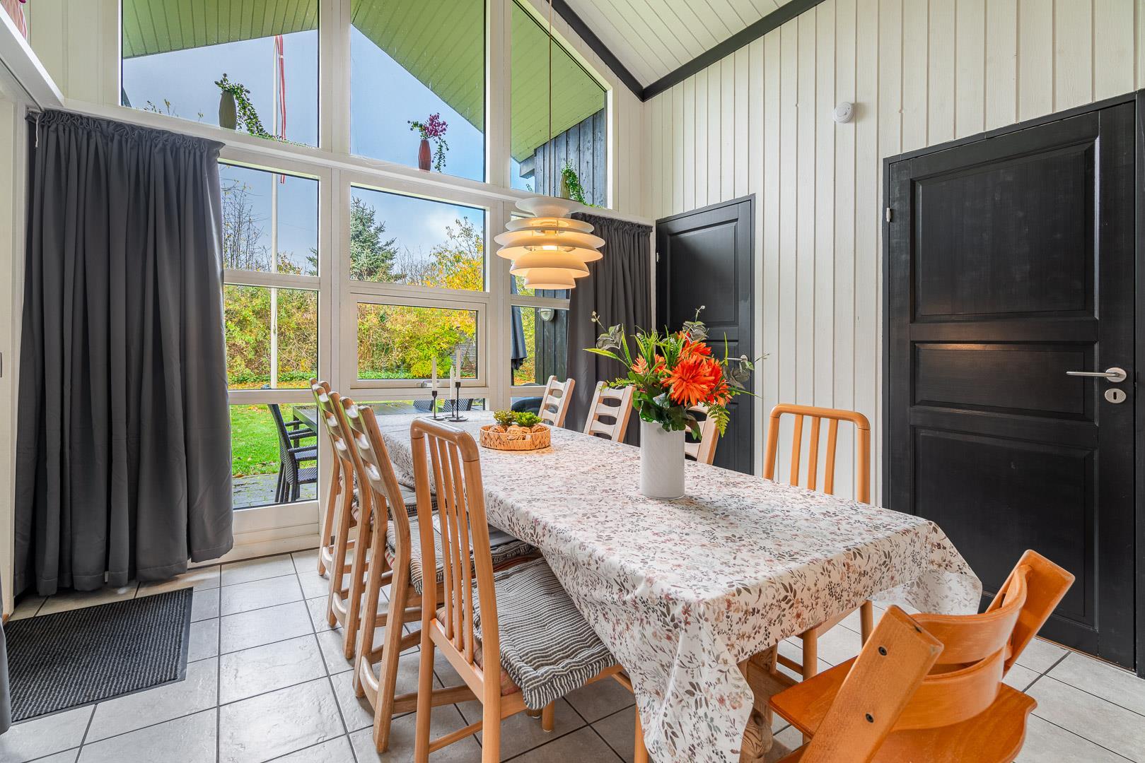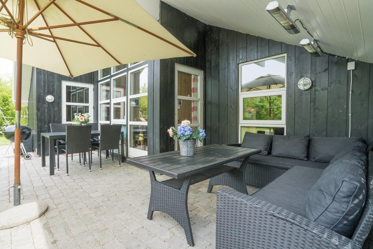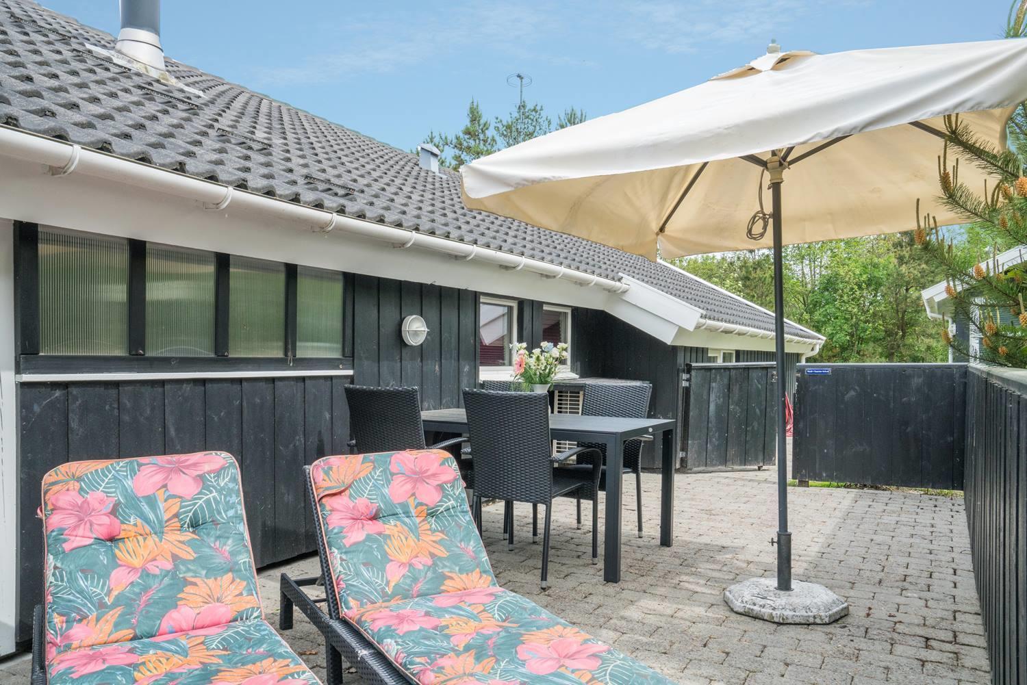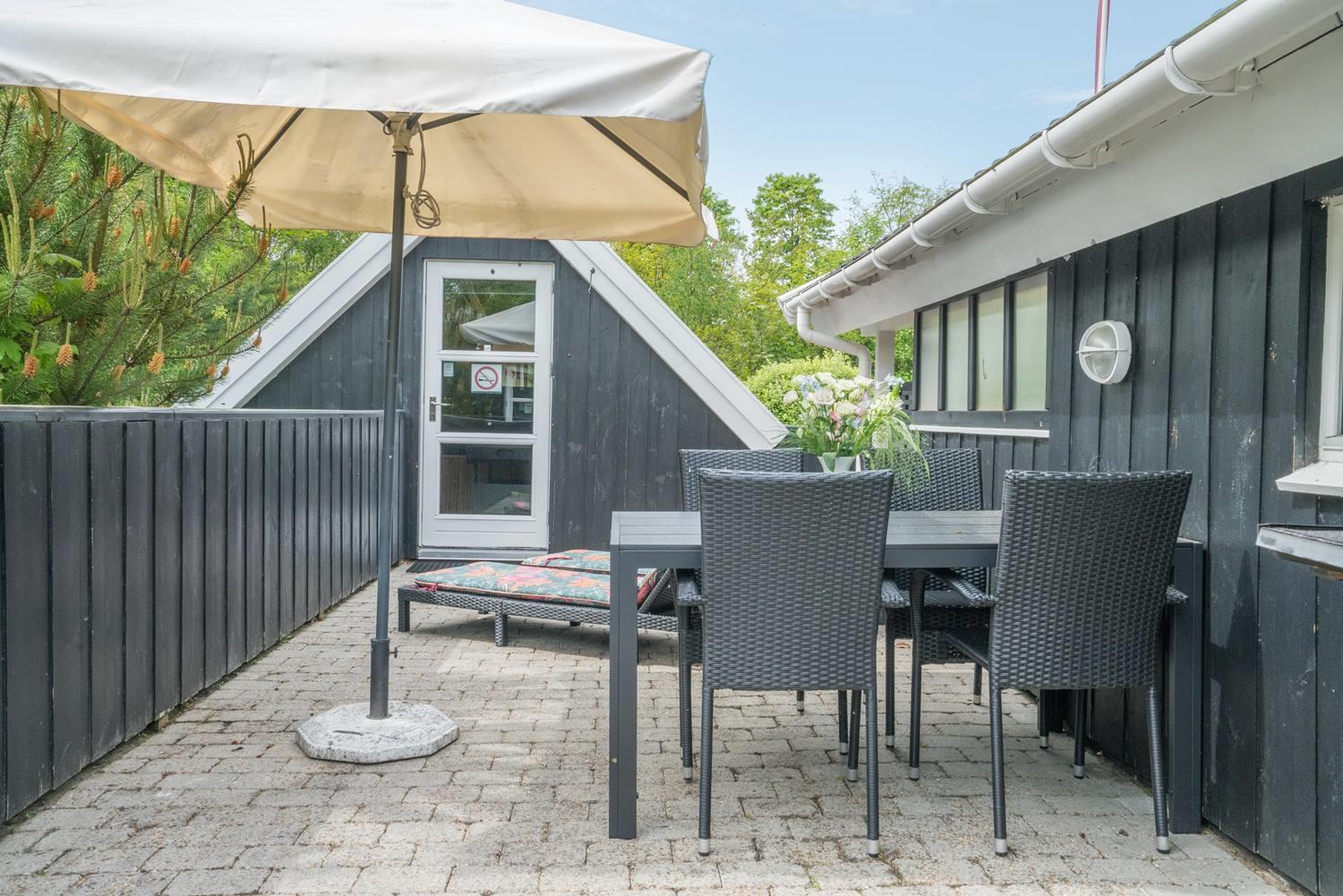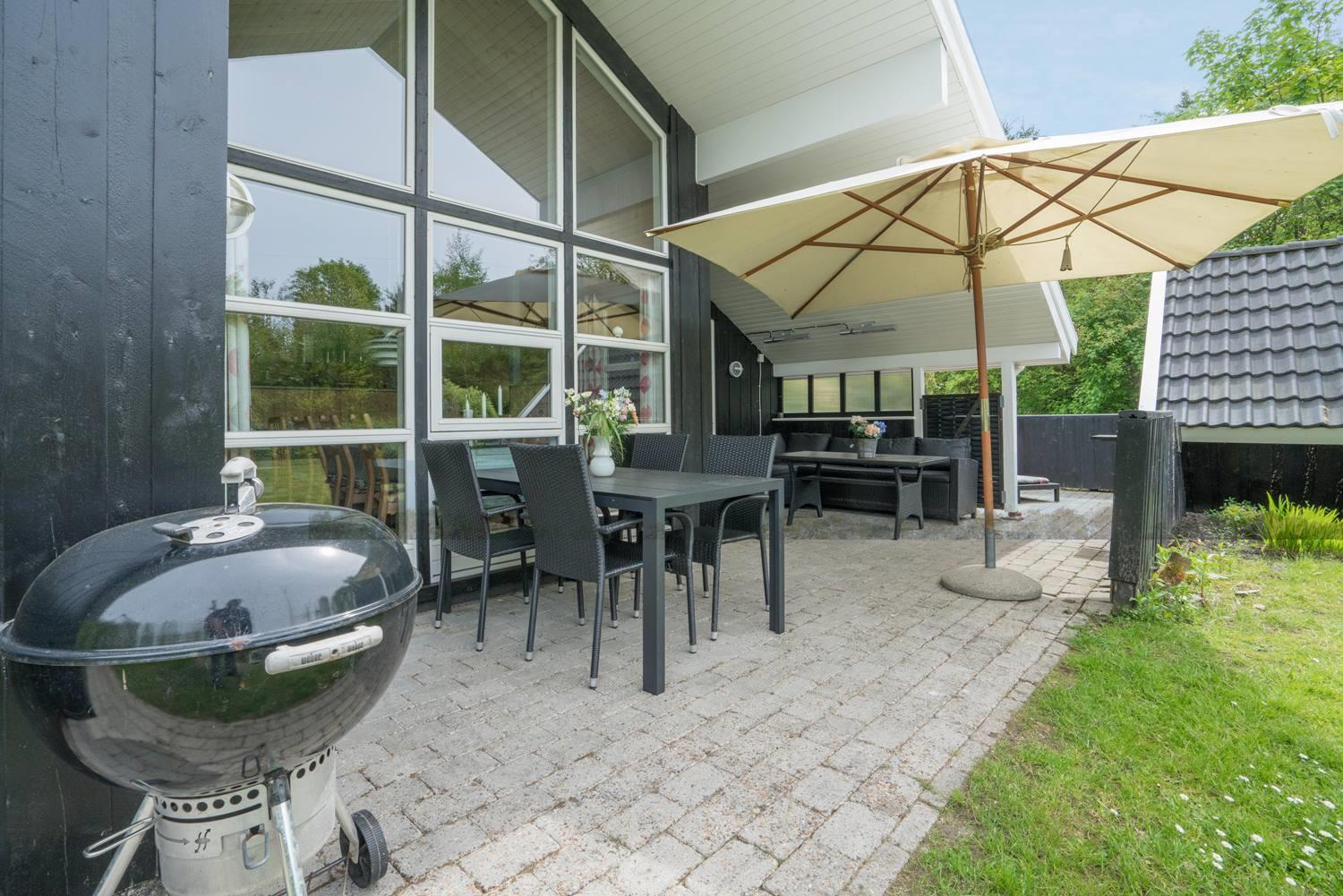 For børnene er haven et lille paradis med gynge, sandkasse og trampolin, hvor der er rig mulighed for leg og bevægelse. Imens kan de voksne nyde roen på den overdækkede terrasse eller tænde op i grillen. Hunden er naturligvis også velkommen – for ferie er bedst, når hele familien er samlet.
