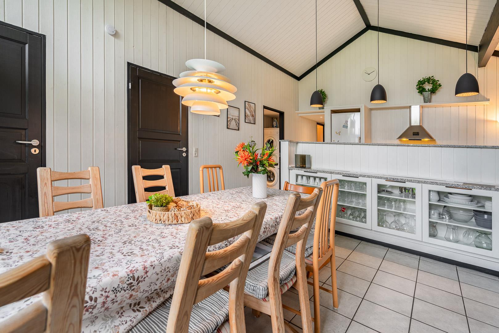 Praktiske faciliteter som vaskemaskine, tørretumbler og carport gør ferien ekstra bekvem, og vandforbruget er inkluderet – en rar bonus.