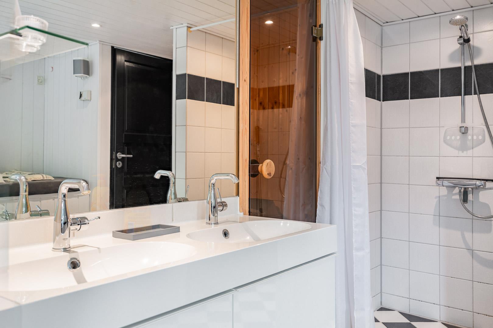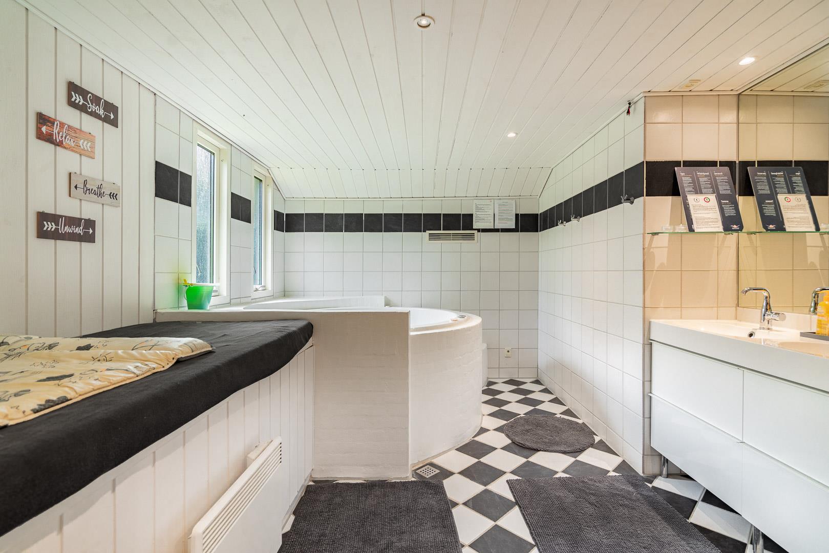Efter en dag med strandture eller cykelture i det vestjyske landskab kan du forkæle dig selv i den private sauna eller slappe af i standvandsspaen. Ren afslapning. De 2 moderne badeværelser – begge med gulvvarme – gør det nemt at være mange uden stress og kø.