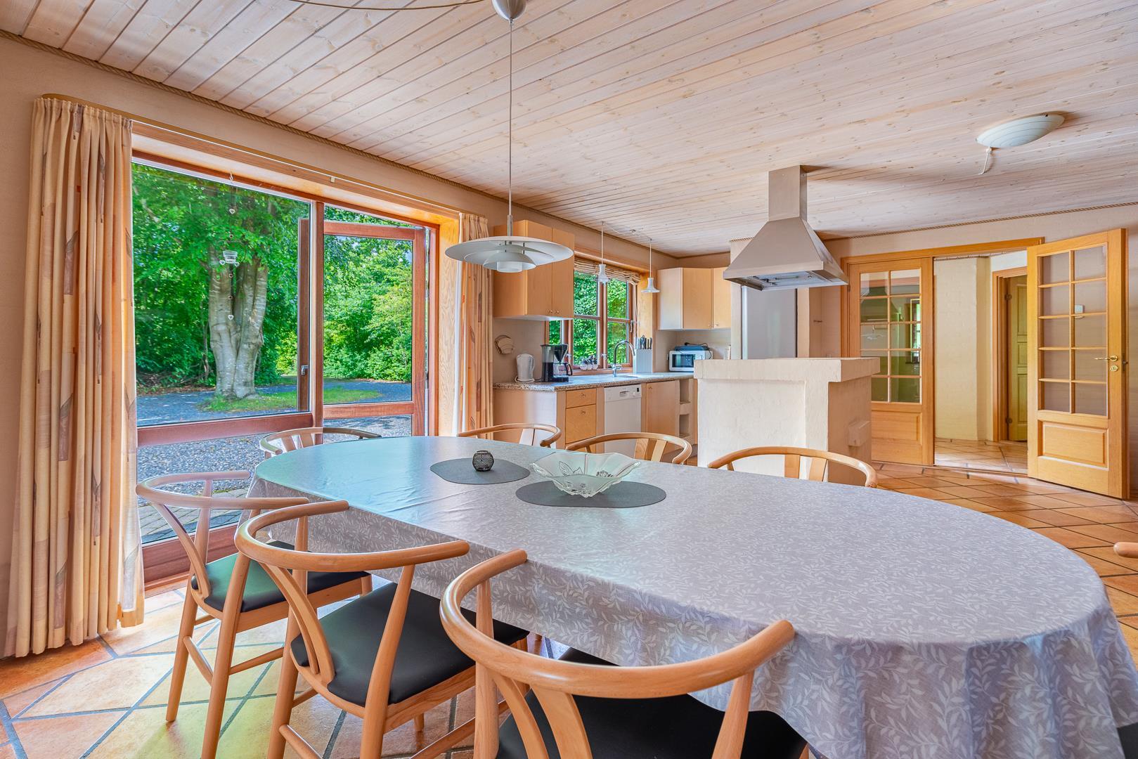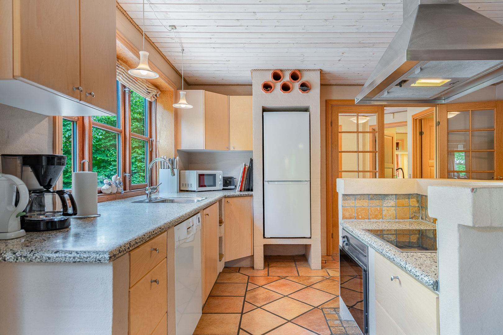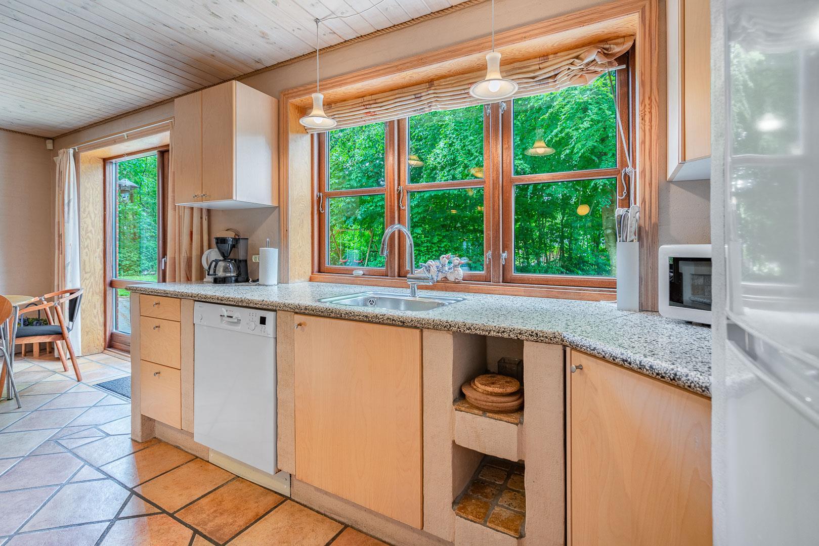 Det åbne køkken ligger i direkte forbindelse med stuen, så I kan lave mad, dække bord og nyde hinandens selskab samtidig. Den åbne planløsning gør huset oplagt til både familier og større grupper, hvor fællesskabet er i centrum.