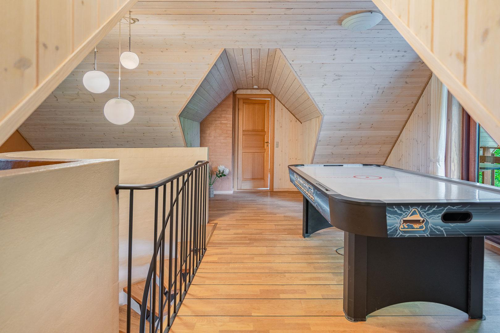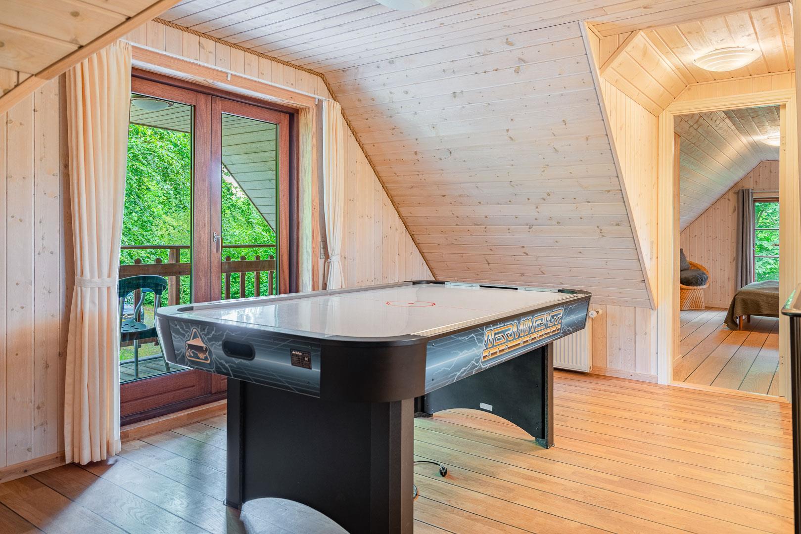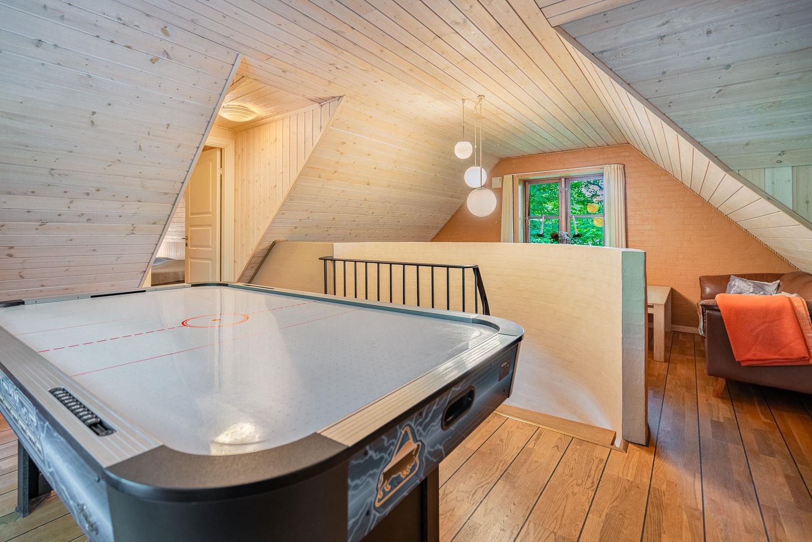 Indendørs sørger et airhockeybord for underholdning – uanset vejret.