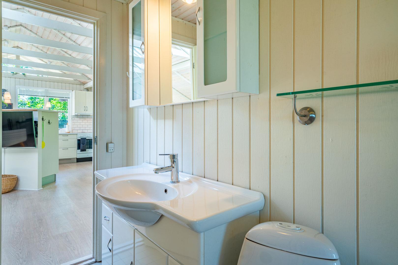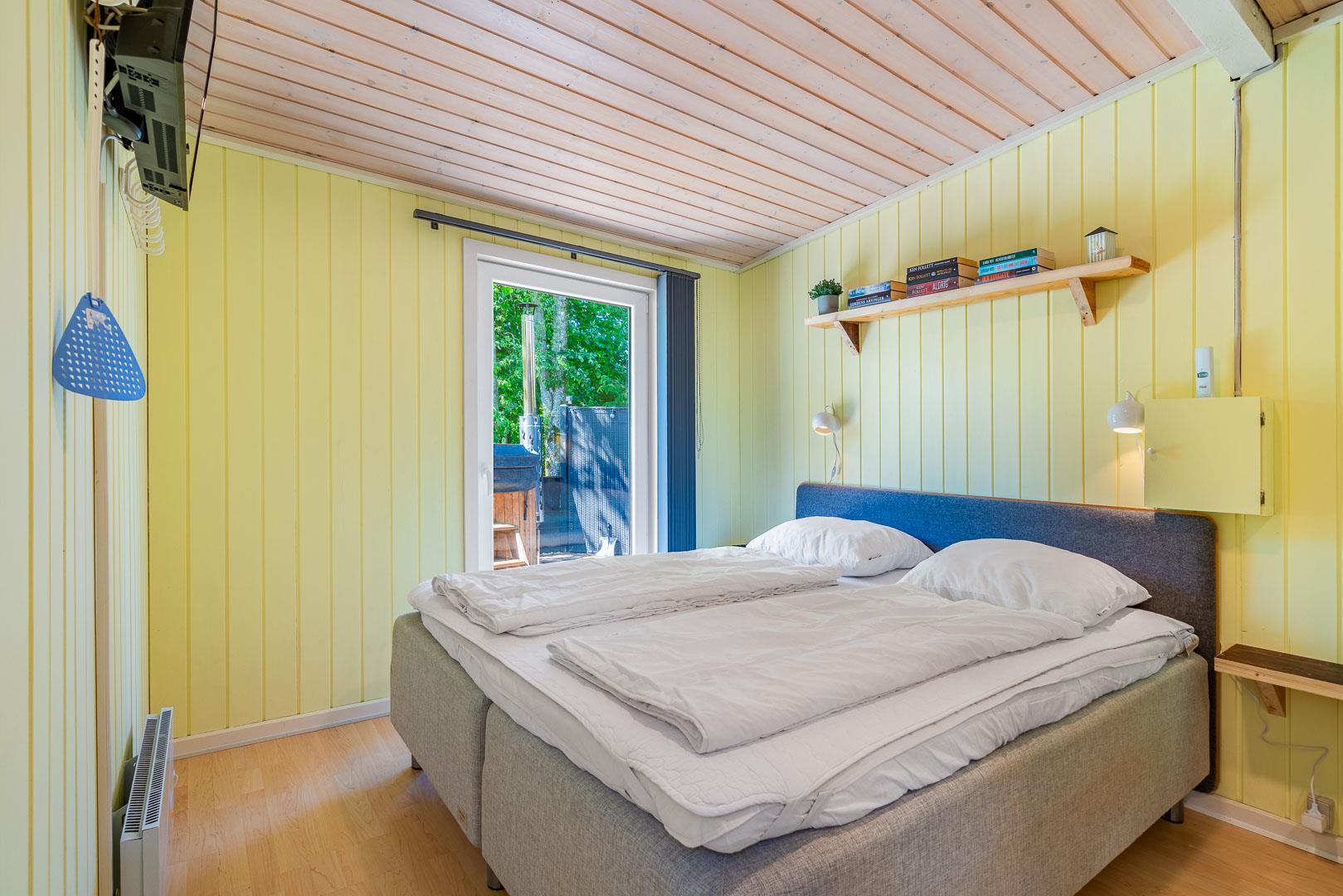 De to soveværelser er indrettet med komfort for øje og giver gode rammer for en afslappende nattesøvn. Badeværelset er moderne og har gulvvarme – en ekstra luksus på køligere morgener.