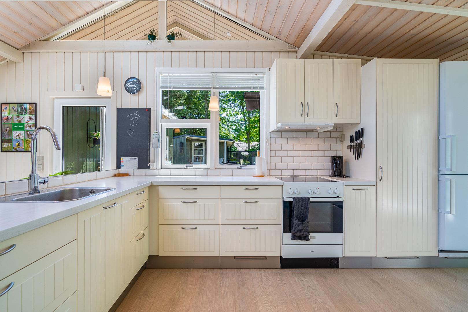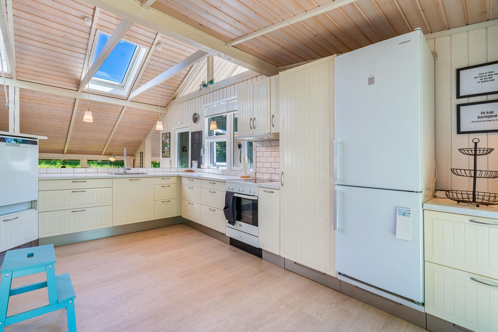 Køkkenet ligger i åben forbindelse med stuen og er veludstyret med alt, hvad I har brug for – naturligvis også opvaskemaskine. Spisepladsen indbyder til lange middage og hyggelige samtaler om dagens oplevelser.