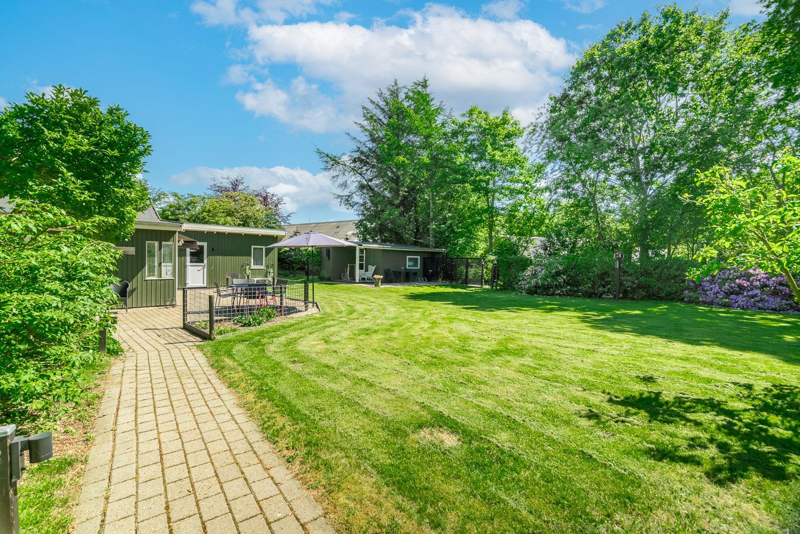 Den overdækkede terrasse er perfekt til morgenkaffen, hyggelige grillaftener eller en stille stund med udsigt til den grønne have – uanset vejret. De store græsarealer giver masser af plads til leg, boldspil eller ren afslapning i solen.
