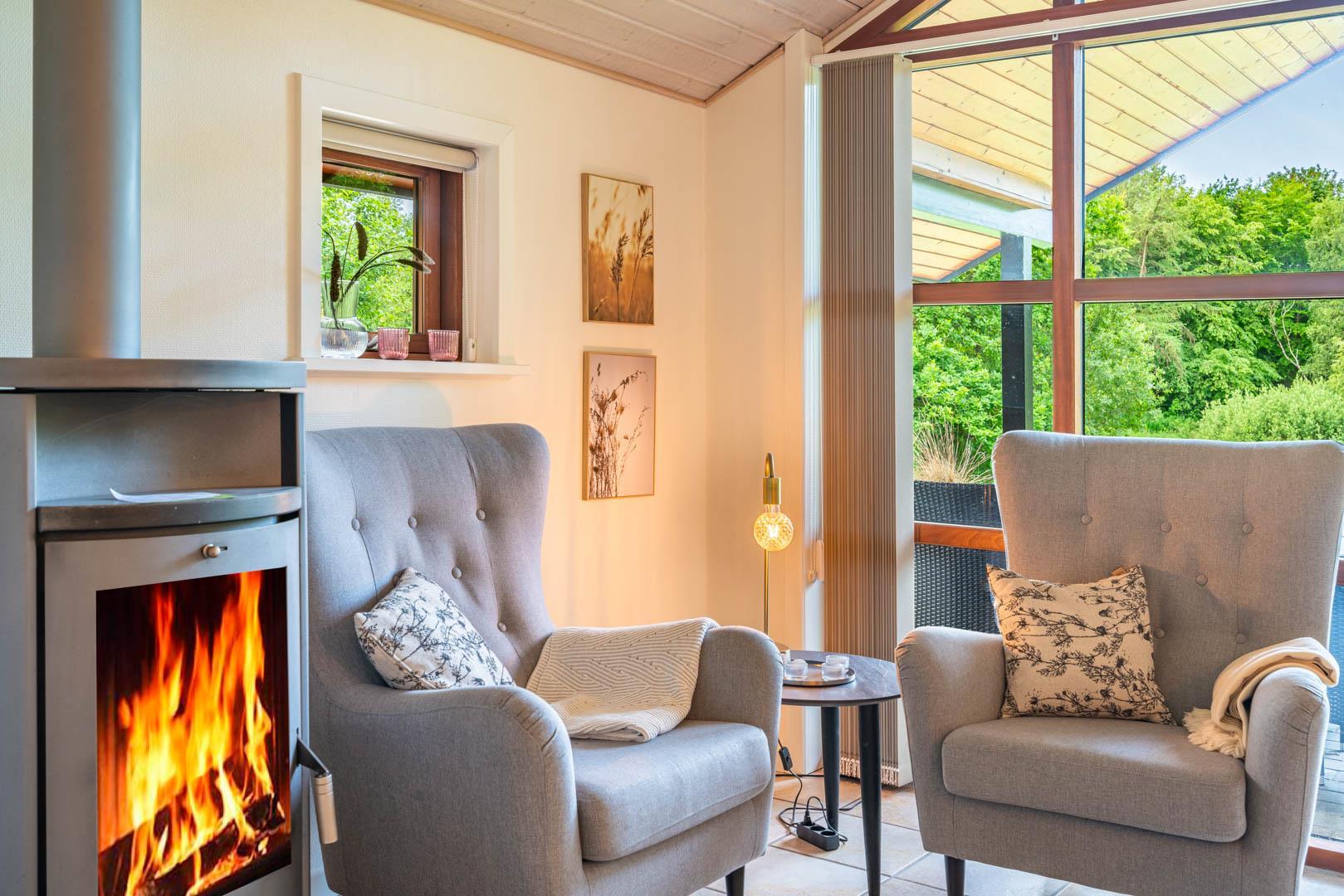 Hyggelig opholdsafdeling med brændeovn og gulvvarme