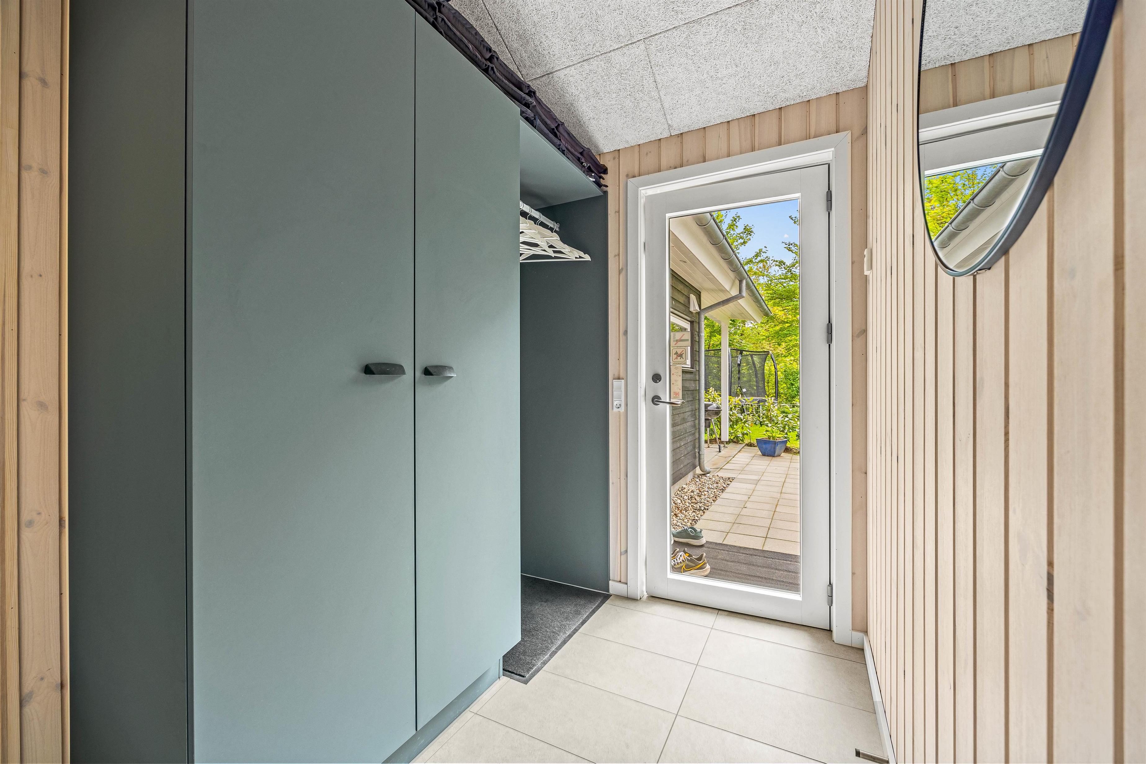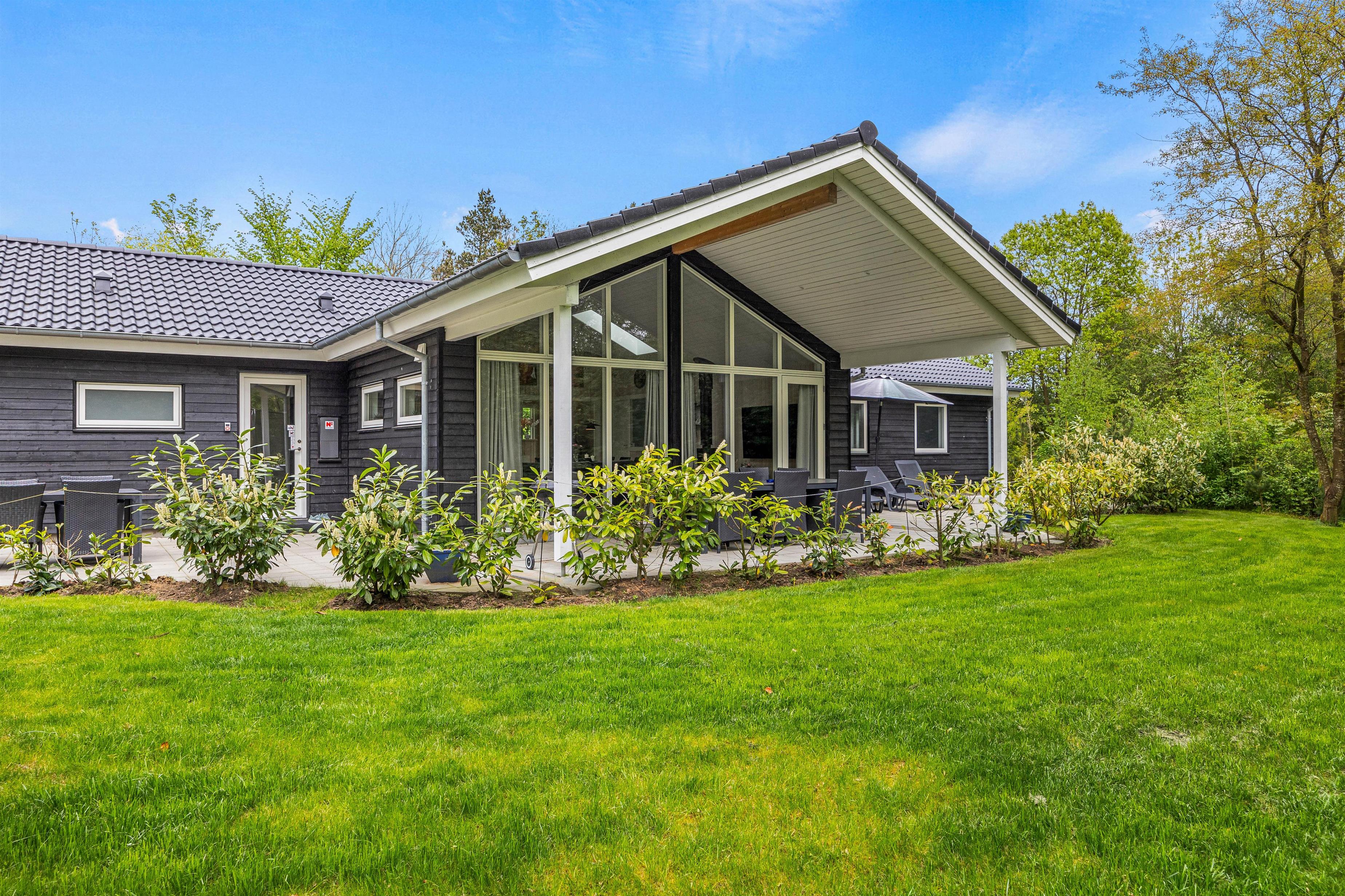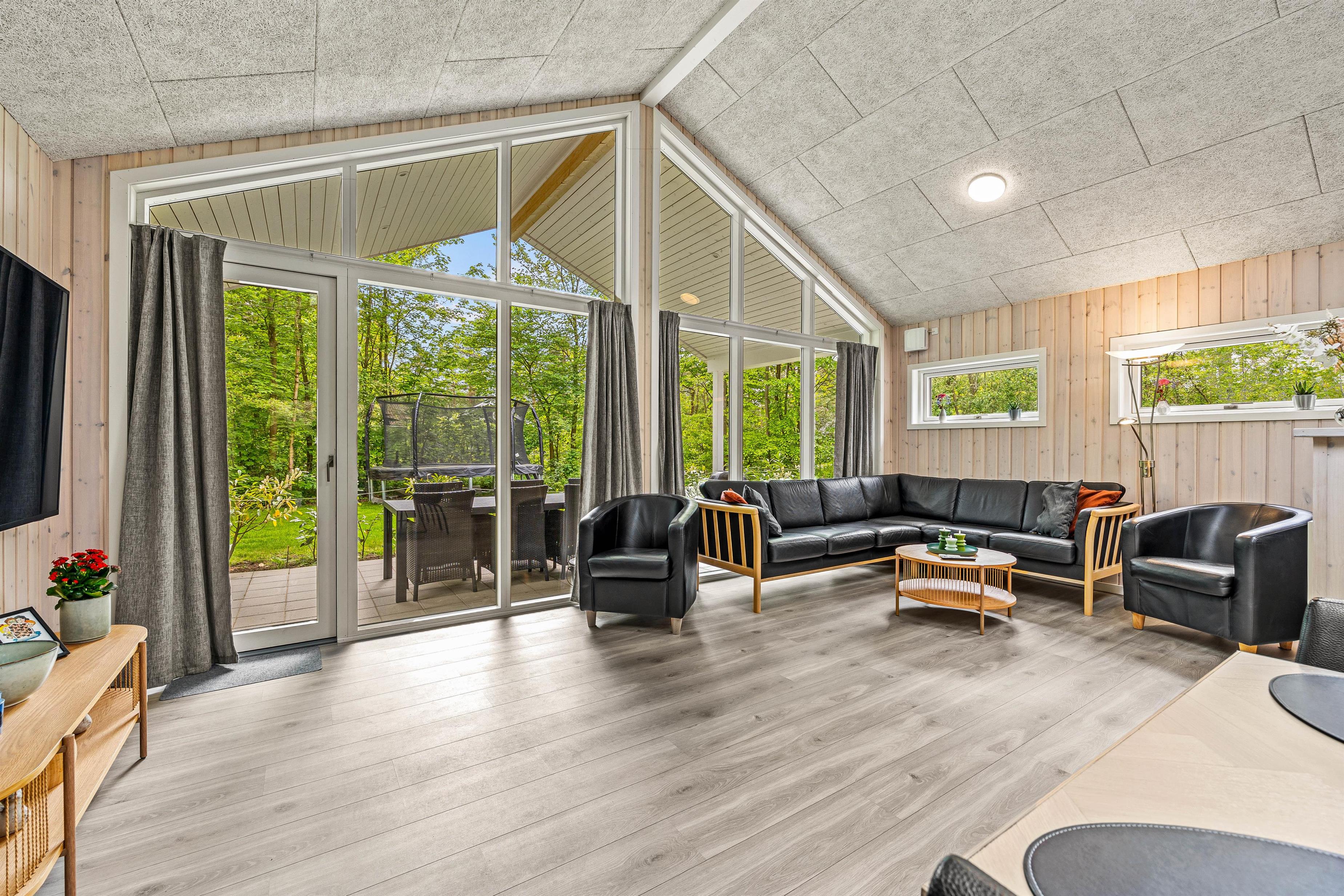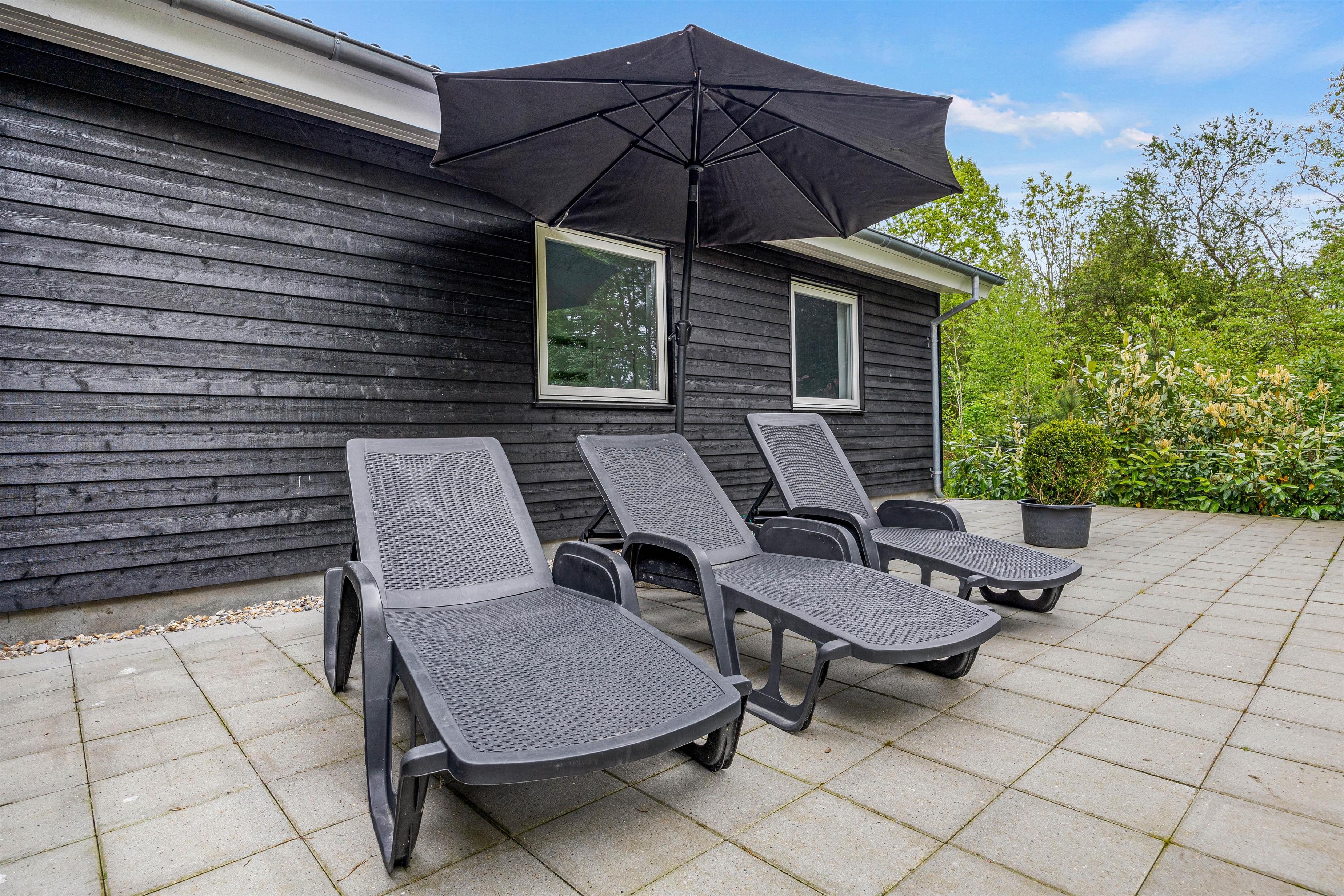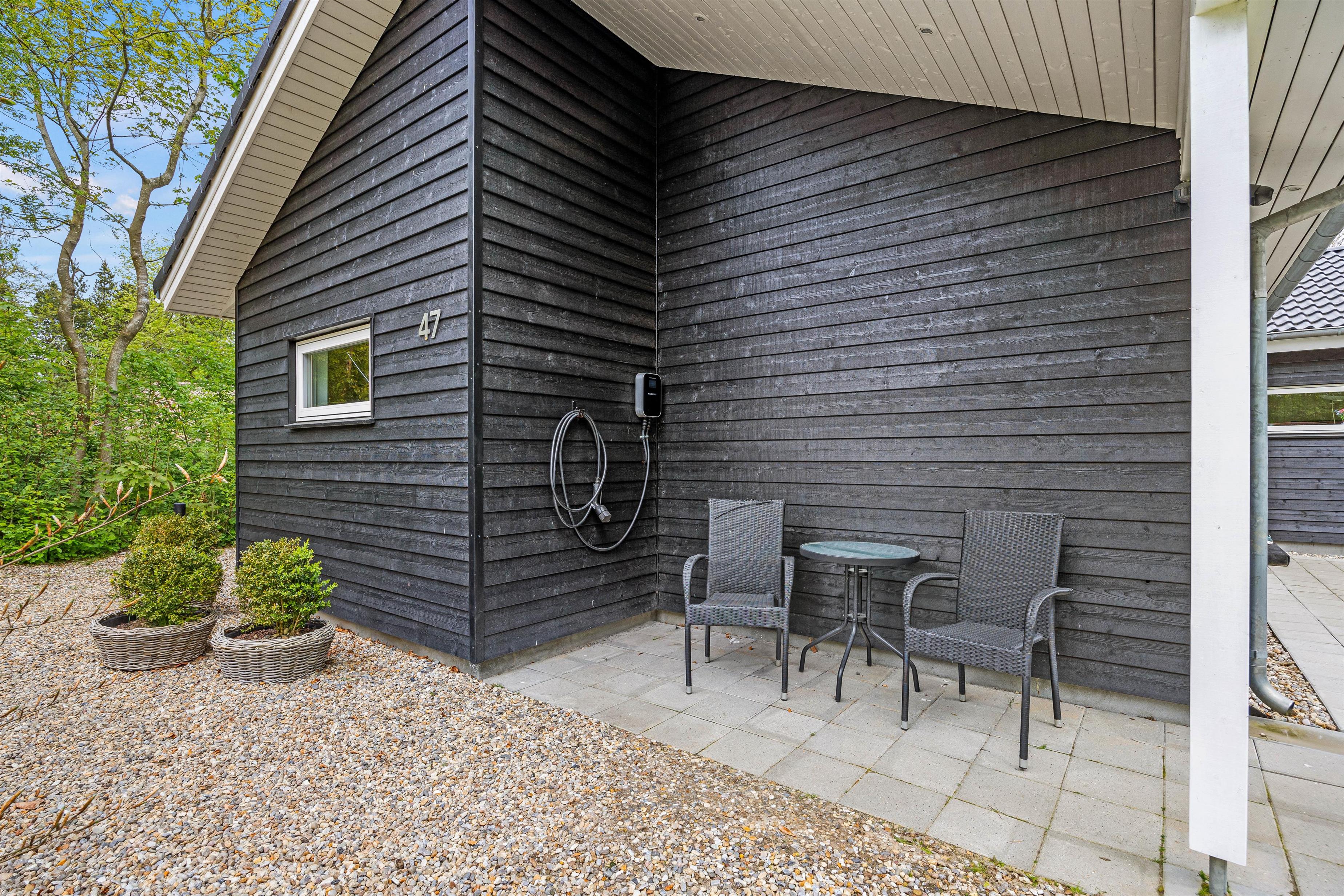 Udenfor venter jer en dejlig have, som er godt afskærmet bag fyrretræerne. Børnene vil elske udendørsfaciliteterne som gynge, sandkasse og trampolin, der inviterer til leg og eventyr i sikre rammer. Her er god plads til leg på den grønne græsplæne, og på den overdækkede terrasse kan I holde de skønneste grillaftner. I haven er der rig mulighed for at nyde udelivet og slappe af i solen!