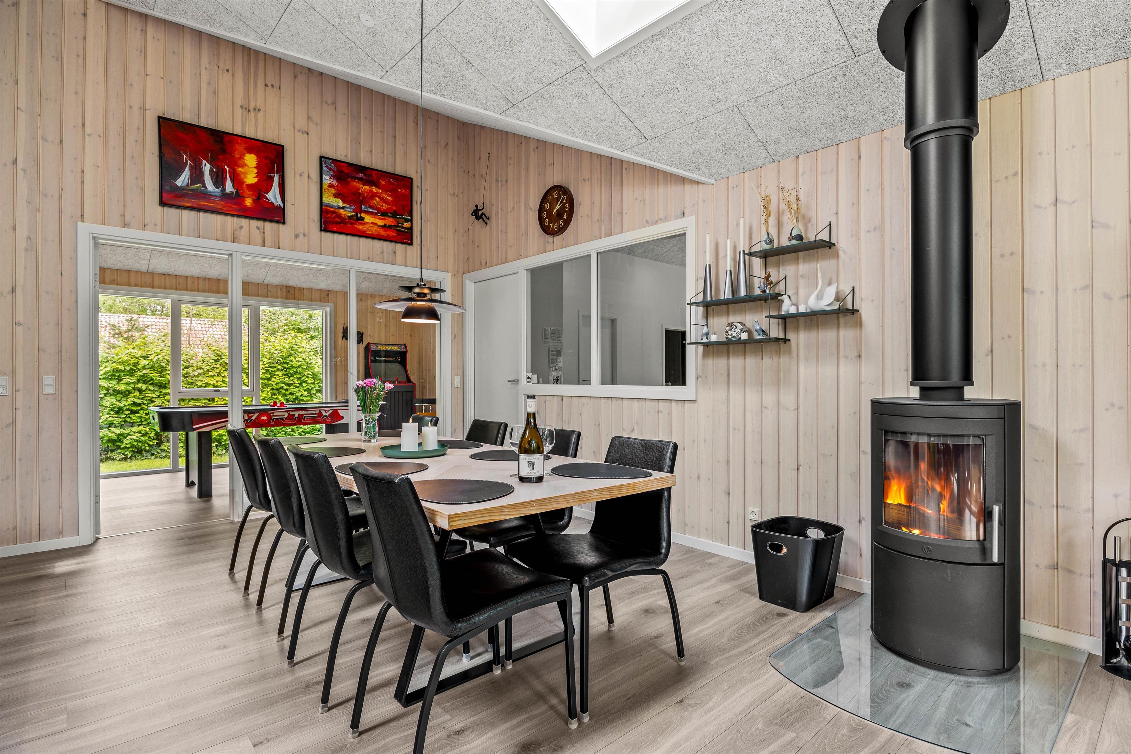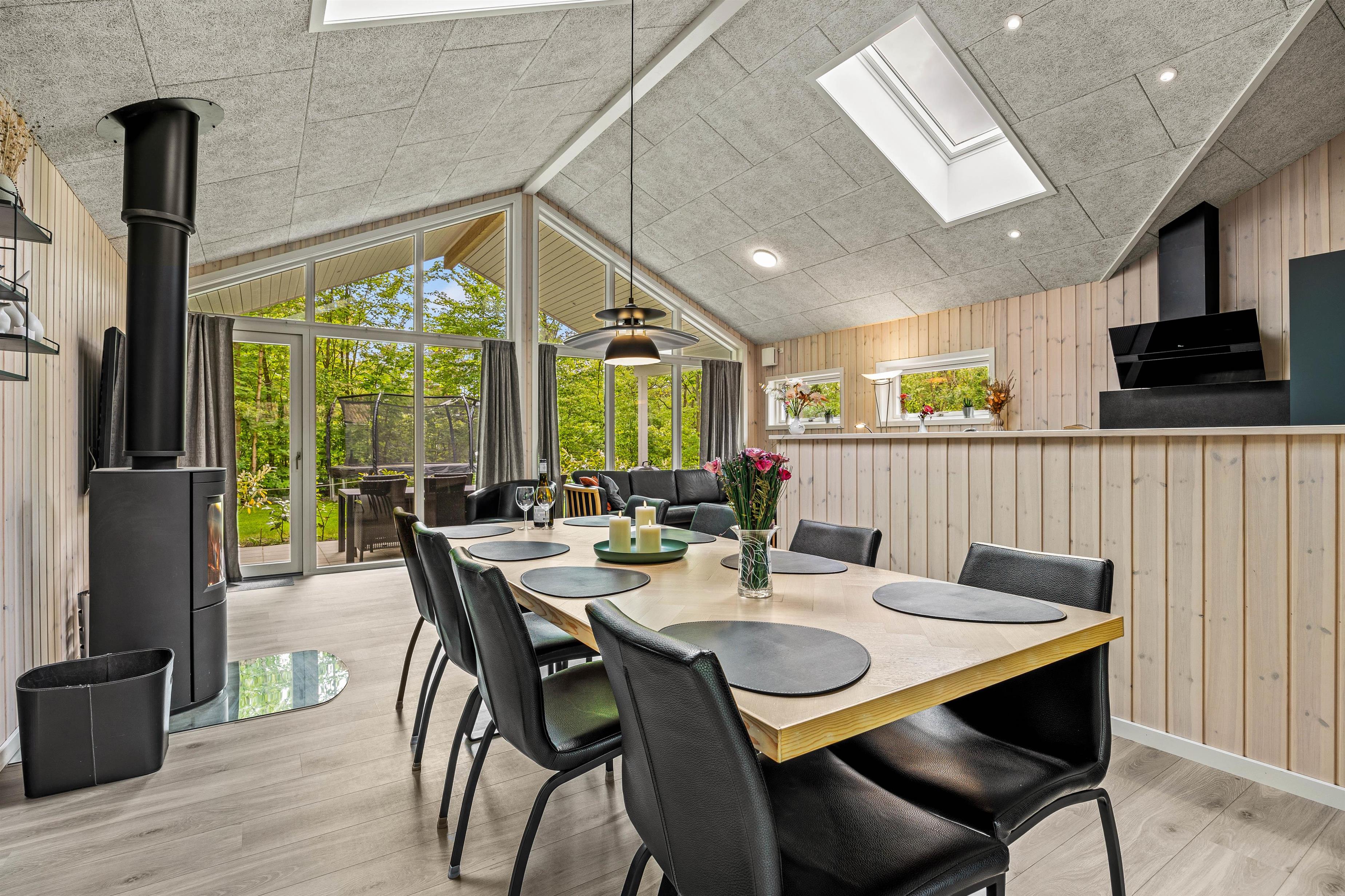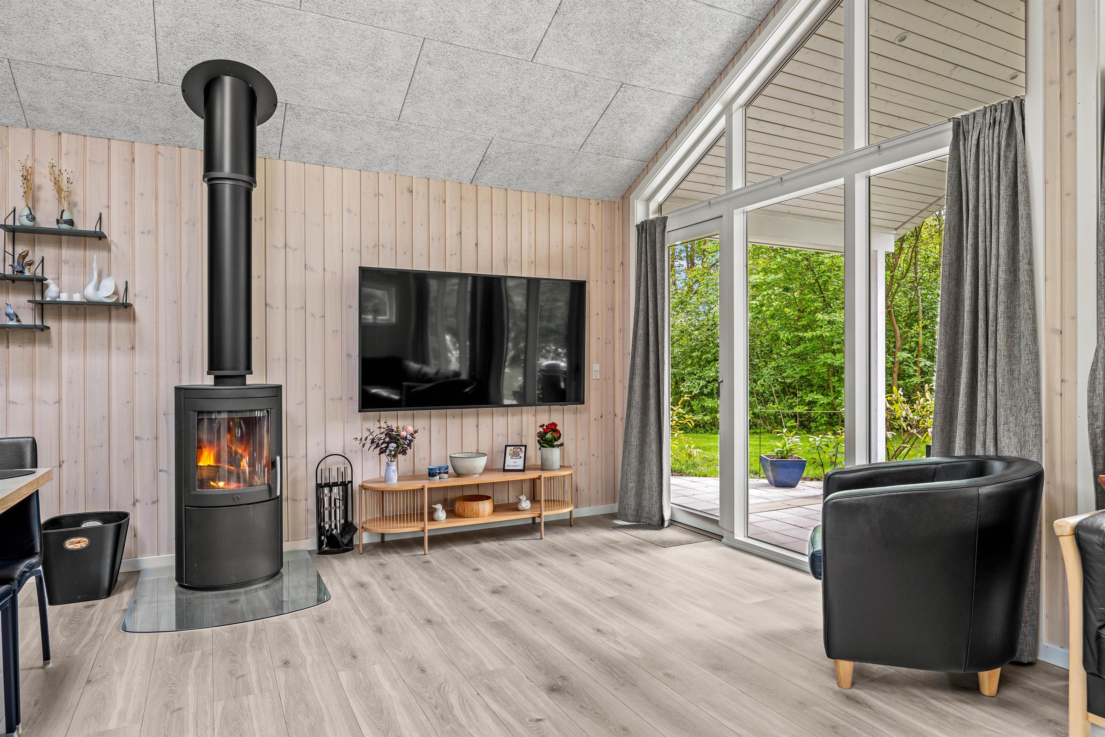 Nyd de hyggelige aftener i det store alrum. Indretningen er hyggelig og enkel. Her er en rar atmosfære, og vinduerne inviterer lyset indenfor. Her kan I slænge jer i sofaen med en god film, holde brætspilsaften og tilberede nogle skønne retter i køkkenet. Her er god plads til samvær, og den skønne brændeovn sætter prikken over i´et. I feriehuset finder I en Chromecast, så I let kan streame jeres yndlingsfilm og serier.