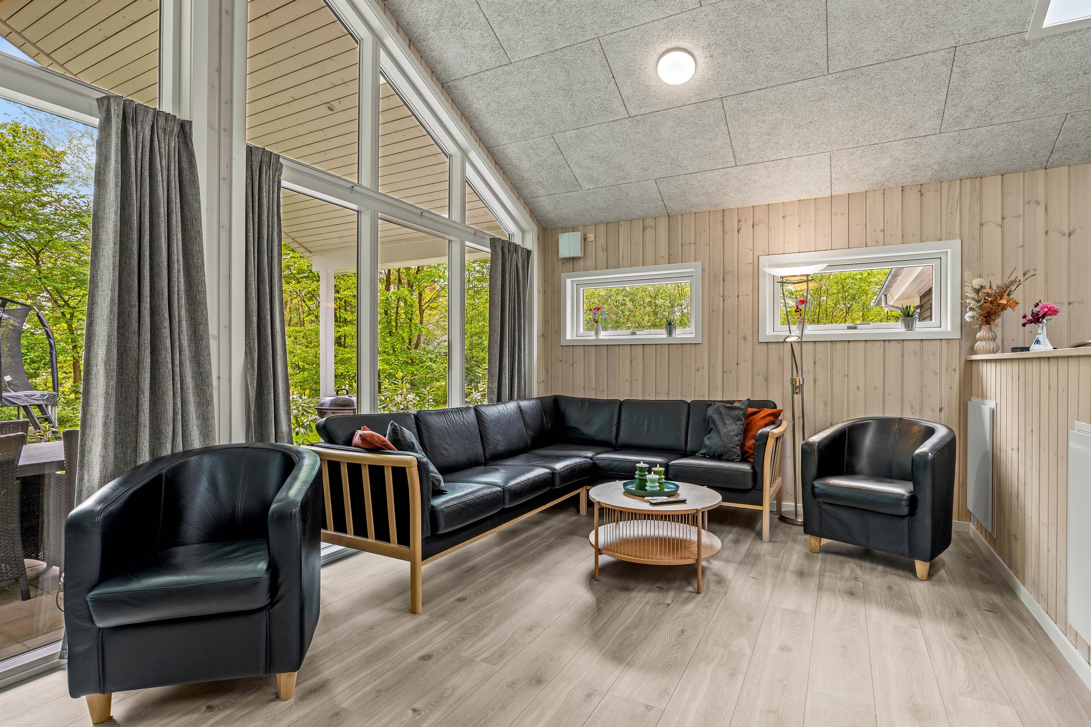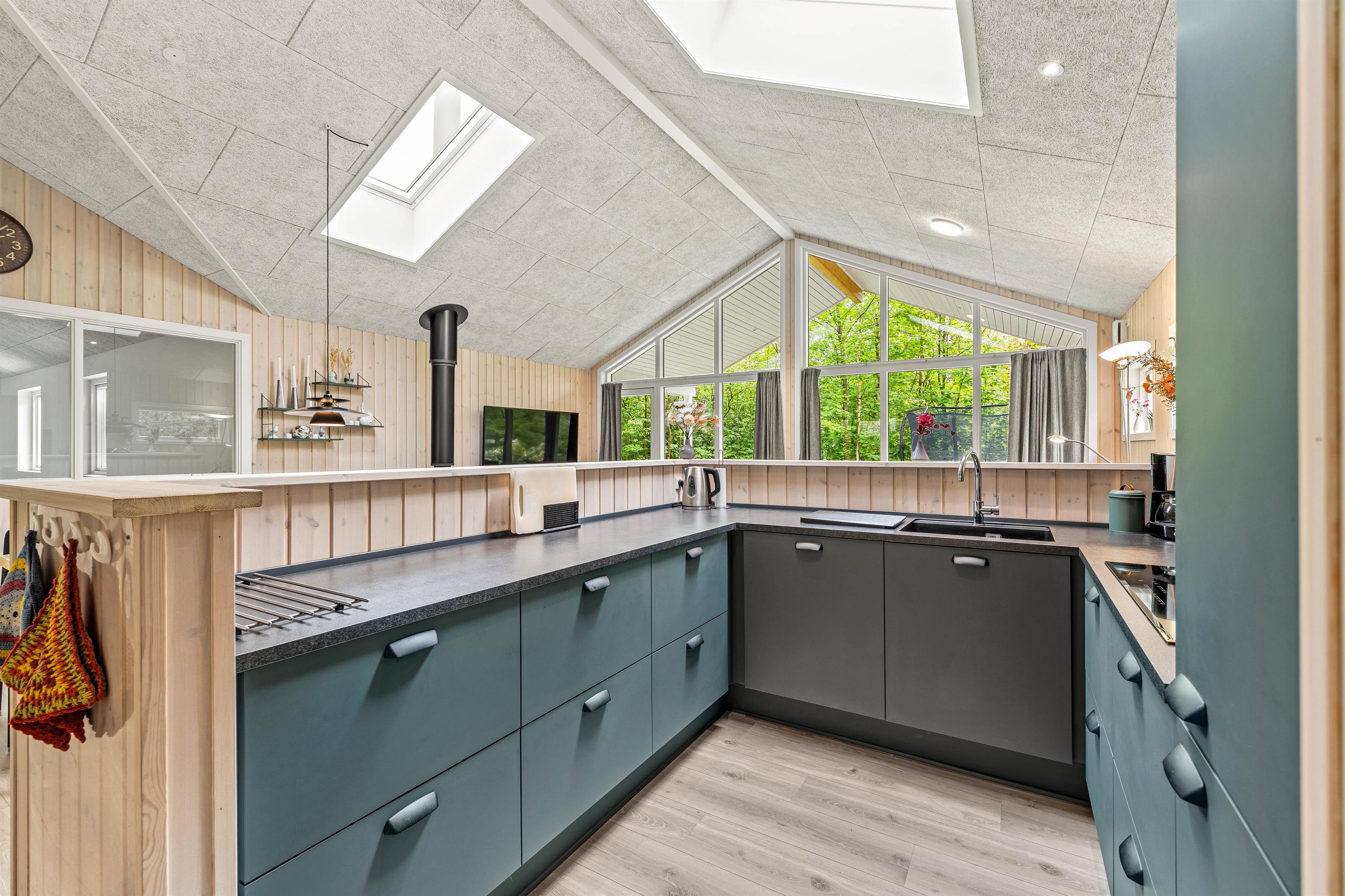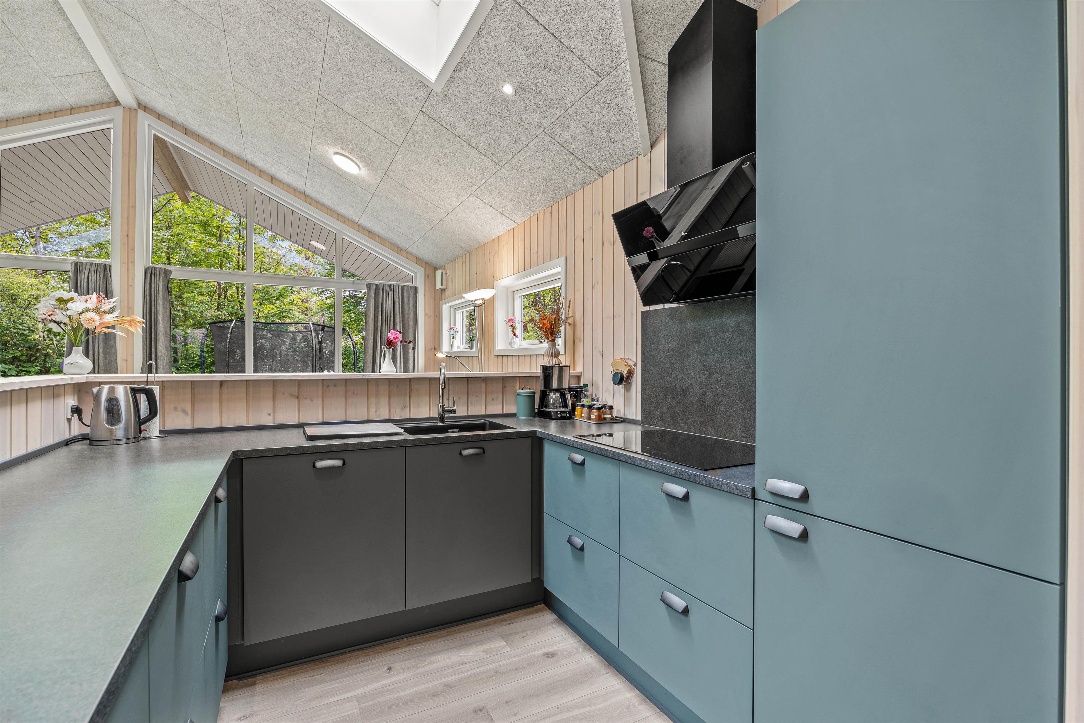 Nyd de hyggelige aftener i det store alrum. Indretningen er hyggelig og enkel. Her er en rar atmosfære, og vinduerne inviterer lyset indenfor. Her kan I slænge jer i sofaen med en god film, holde brætspilsaften og tilberede nogle skønne retter i køkkenet. Her er god plads til samvær, og den skønne brændeovn sætter prikken over i´et. I feriehuset finder I en Chromecast, så I let kan streame jeres yndlingsfilm og serier.