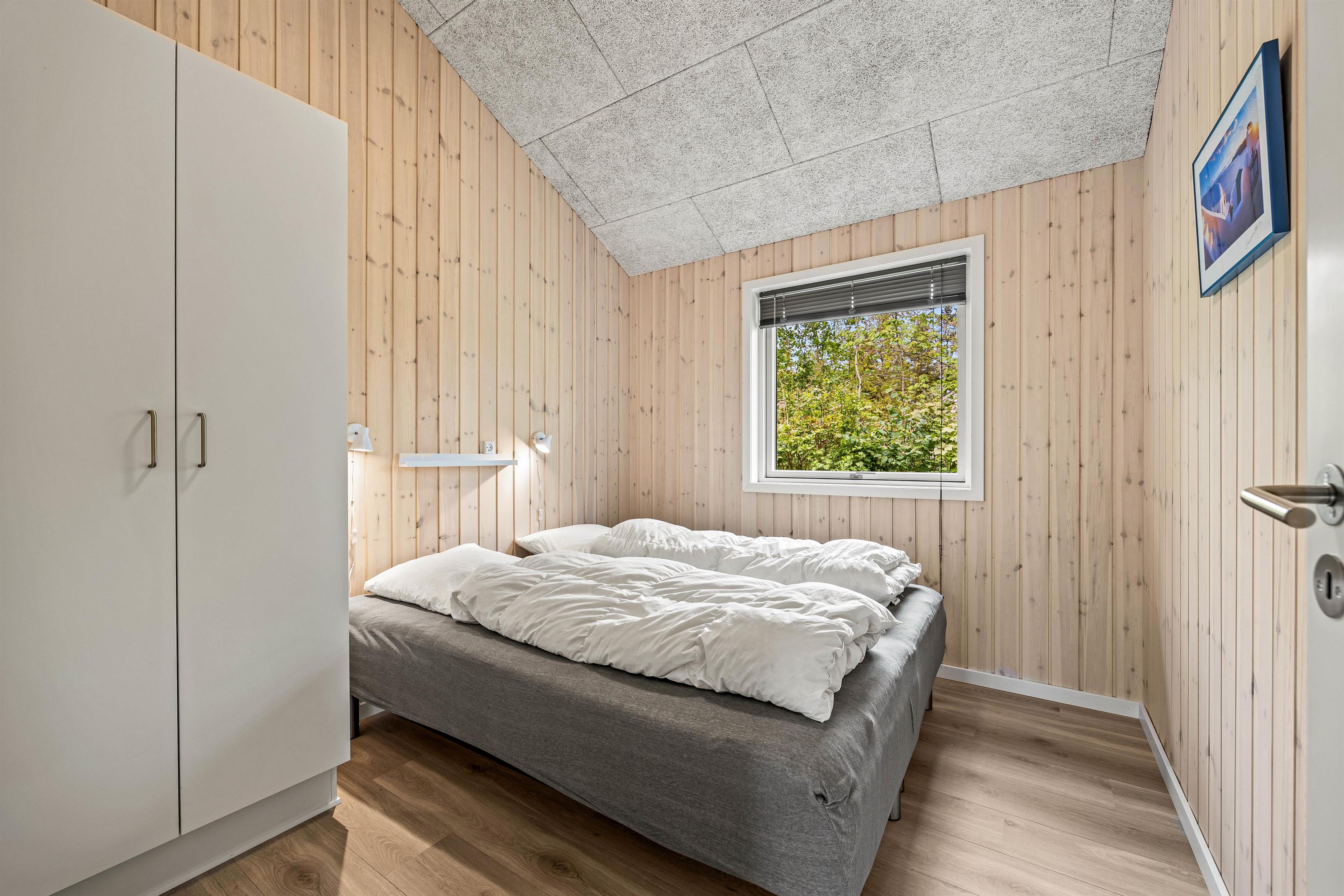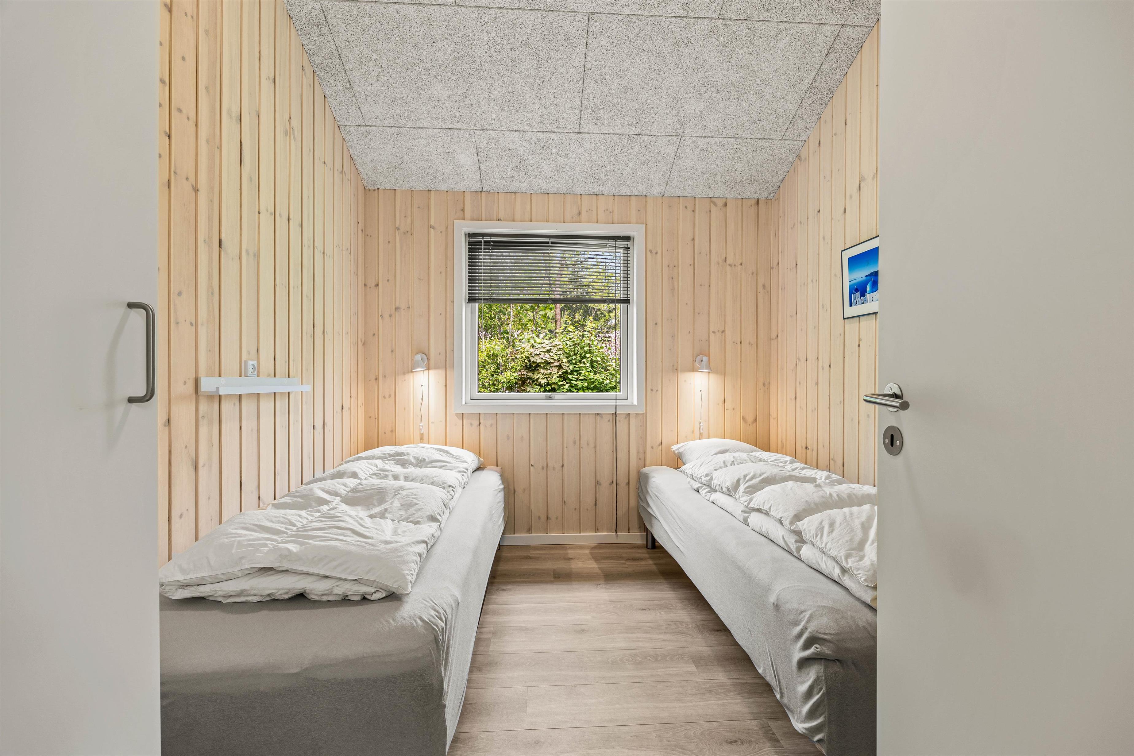De 8 sovepladser er fordelt på de 4 soveværelser. Alle soveværelser er indrettet med indbyggende skabe til opbevaring og gode senge, så I kan få en god nattesøvn. Her er to badeværelser – begge med gulvvarme – på den måde undgår i kø om morgenen. Som et plus finder I her en vaskesøjle med vaskemaskine og tørretumbler. Her bliver tøjvasken til en leg og I har mulighed for at opfriske håndklæderne under opholdet.
