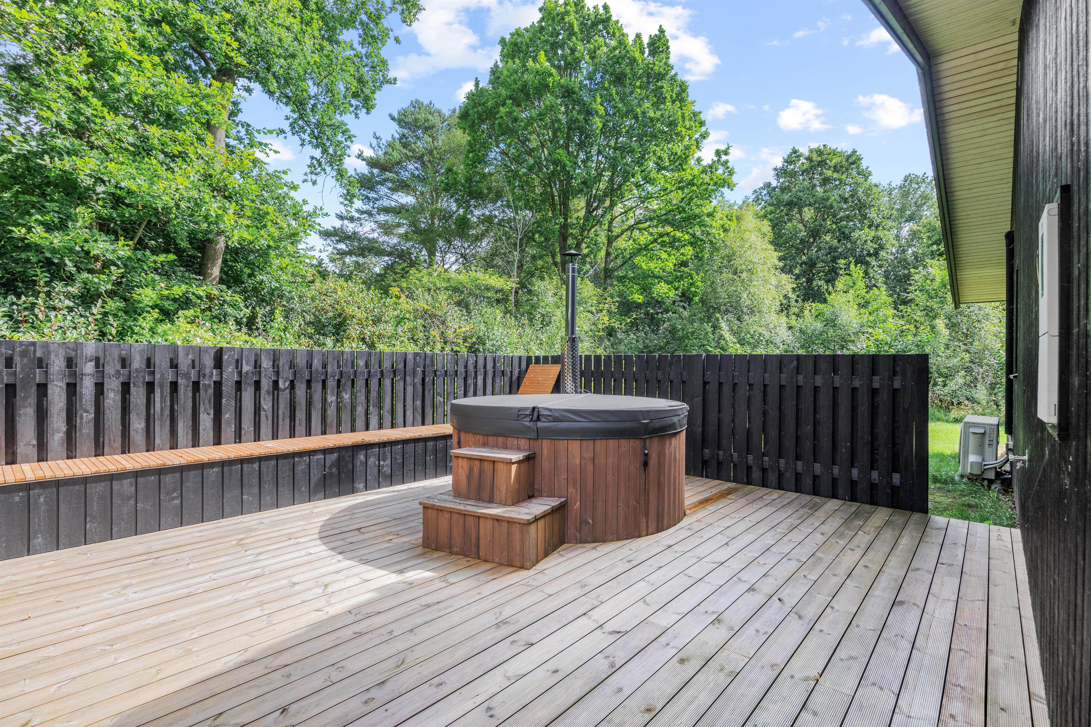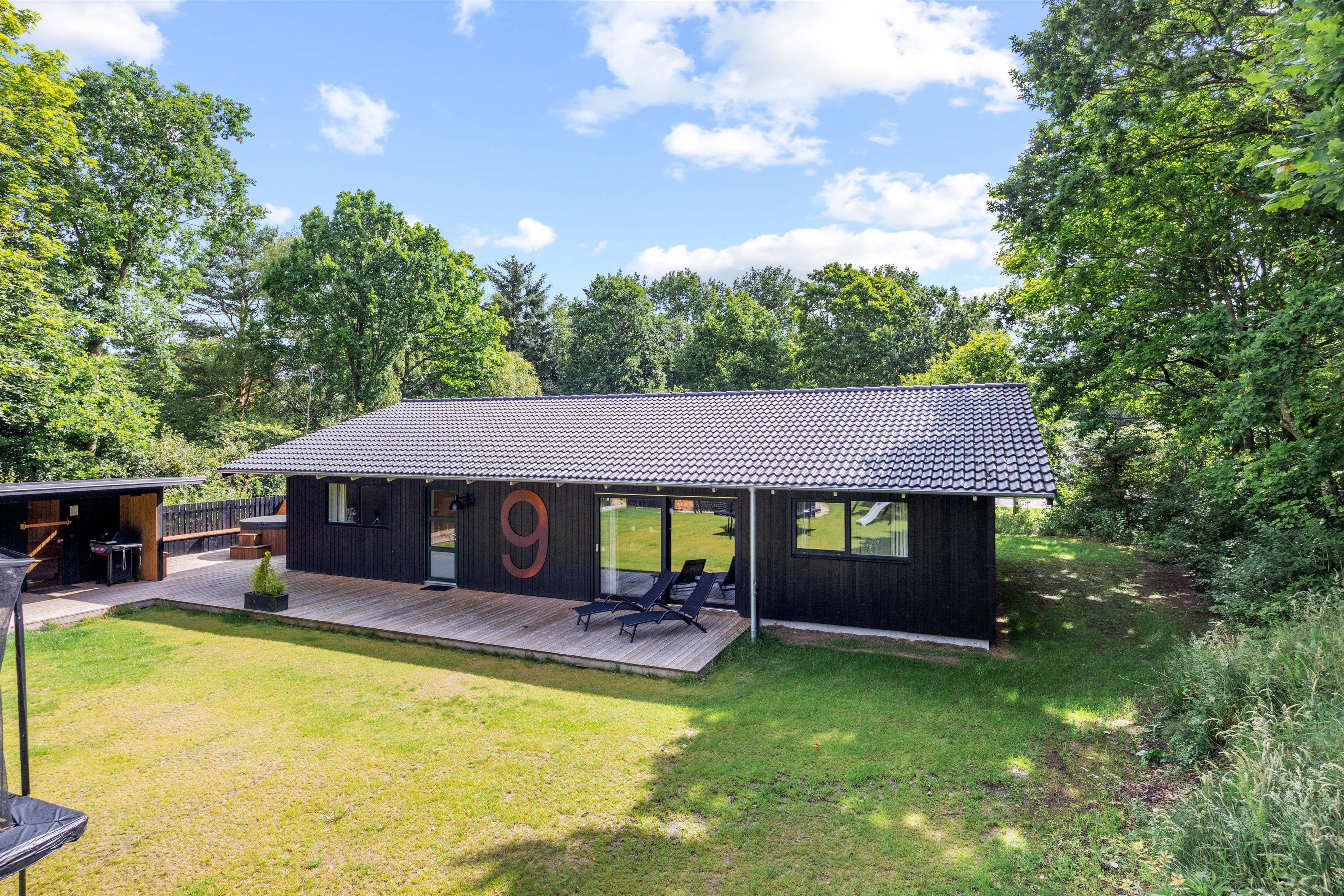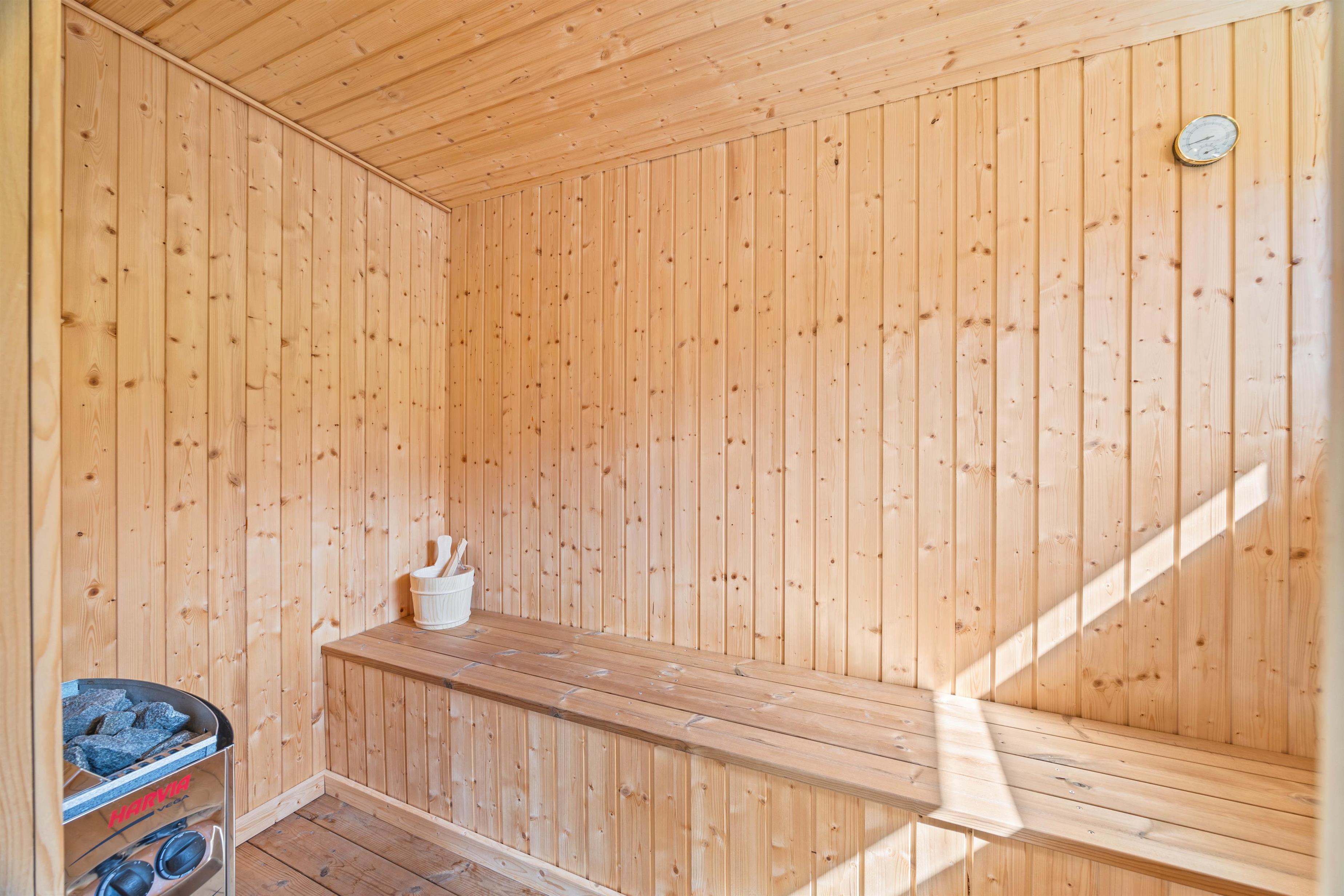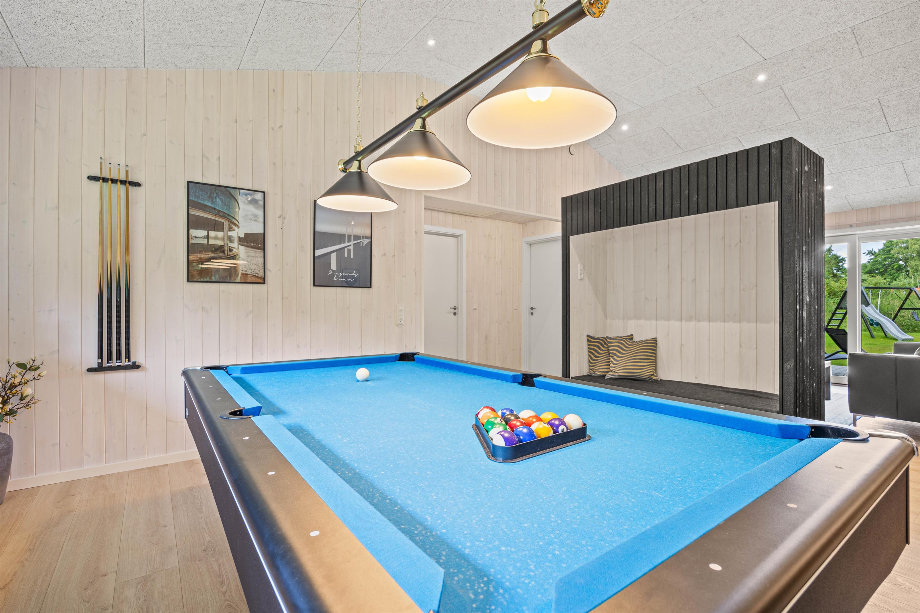 Sommerhuset er et aktivitetshus, fyldt med muligheder for underholdning for både børn og voksne. Prøv kræfter med et spil poolbillard, der inviterer til timevis af sjov og konkurrence. Udendørs er her en gynge, som sikkert vil være til glæde for børnene, mens trampolinen sørger for mange timers leg og latter. For de voksne kan den overdækkede terrasse med havemøbler danne ramme om hyggelige aftener. Det skønne vildmarksbad og den indbydende sauna tilbyder velværeoplevelser i særklasse, perfekte til afslapning og nærvær efter en dag fyldt med eventyr.