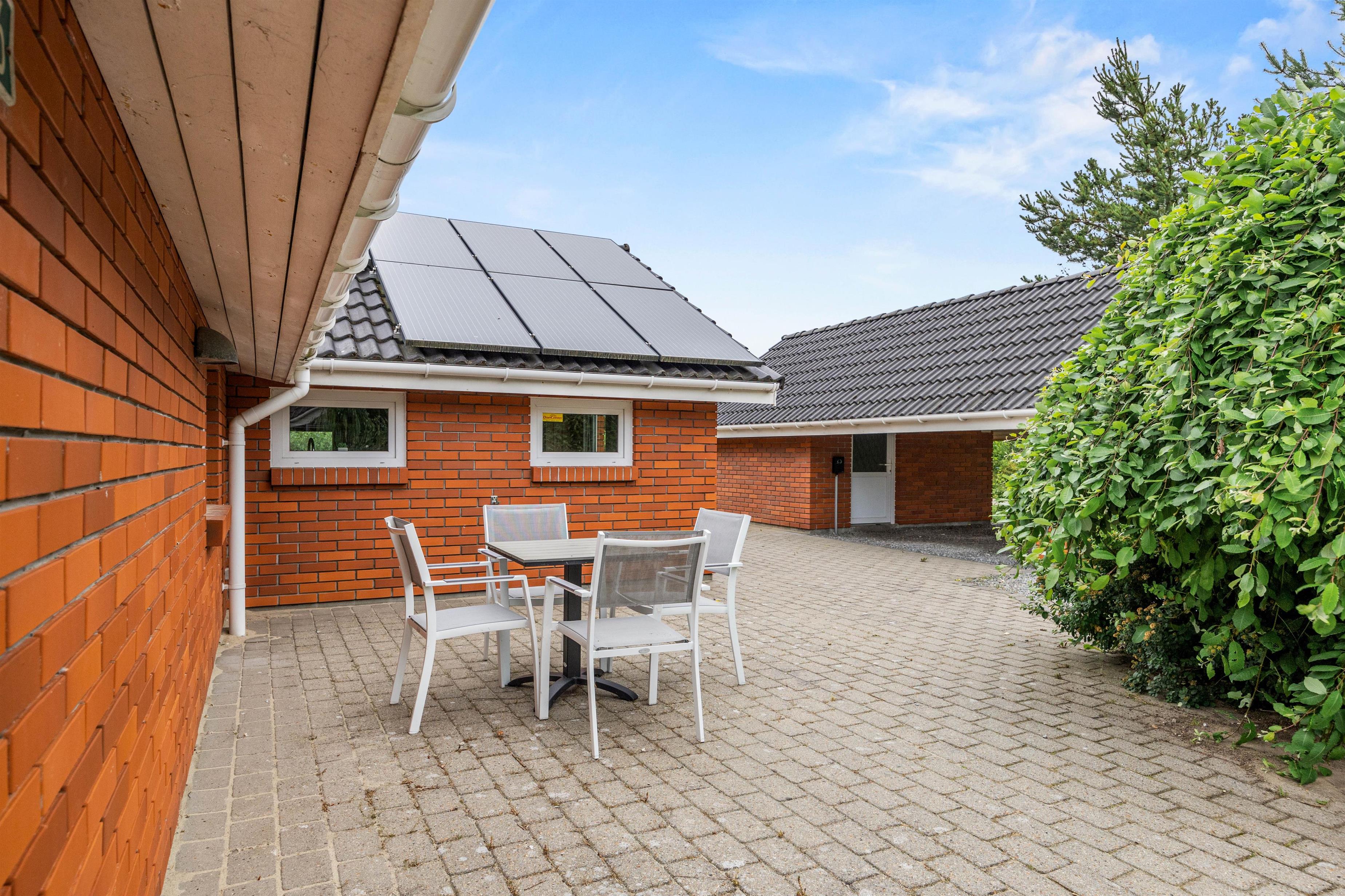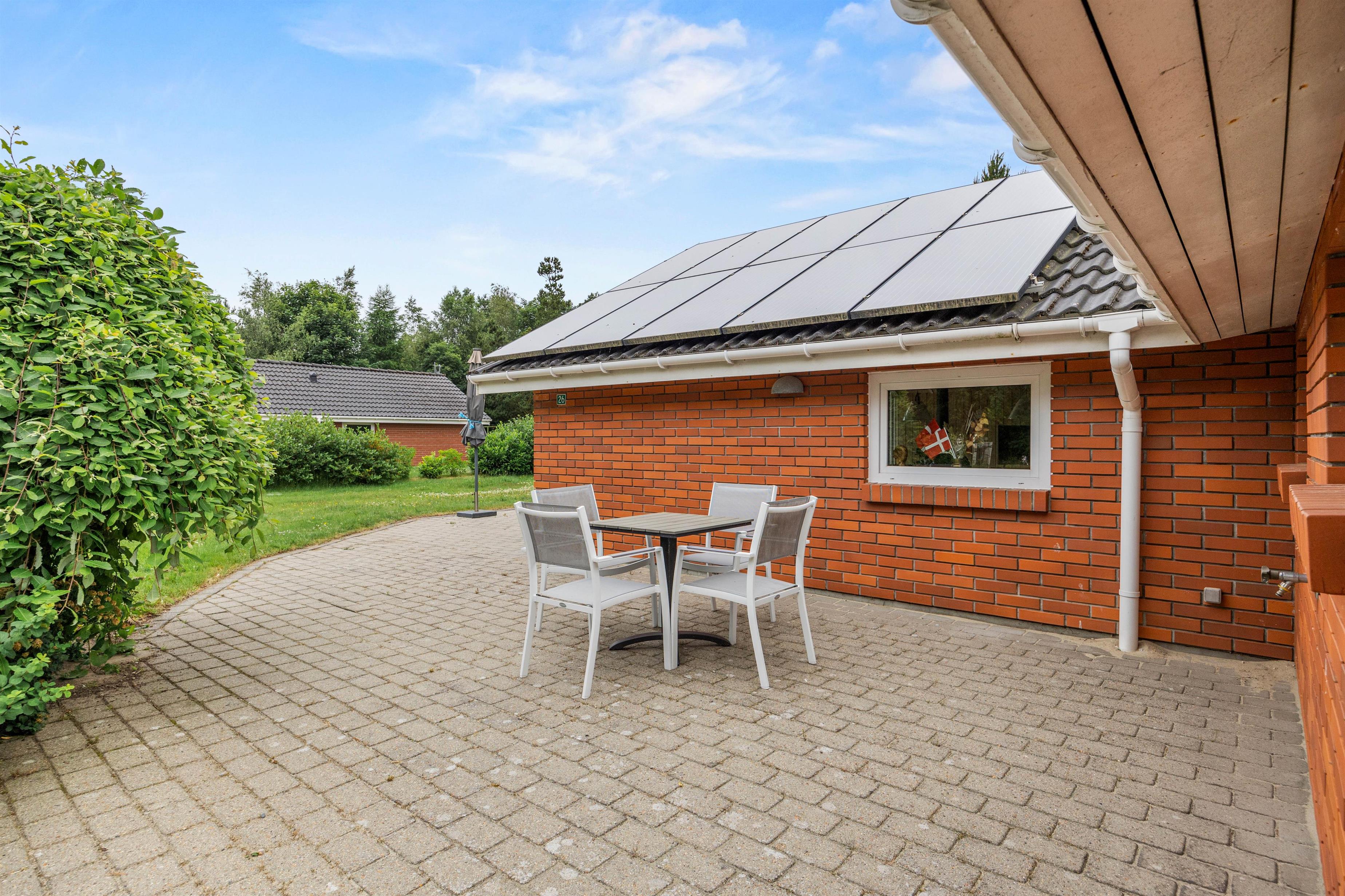 Udearealet er en perle i sig selv, med et grundareal på 1550 m², der giver rigelig plads til udendørs aktiviteter og afslapning. Terrassen er både åben, afskærmet og overdækket, hvilket gør det muligt at nyde udelivet uanset vejrforholdene. Her kan I samles omkring grillen til hyggelige måltider under åben himmel eller finde skygge på de varmeste dage.