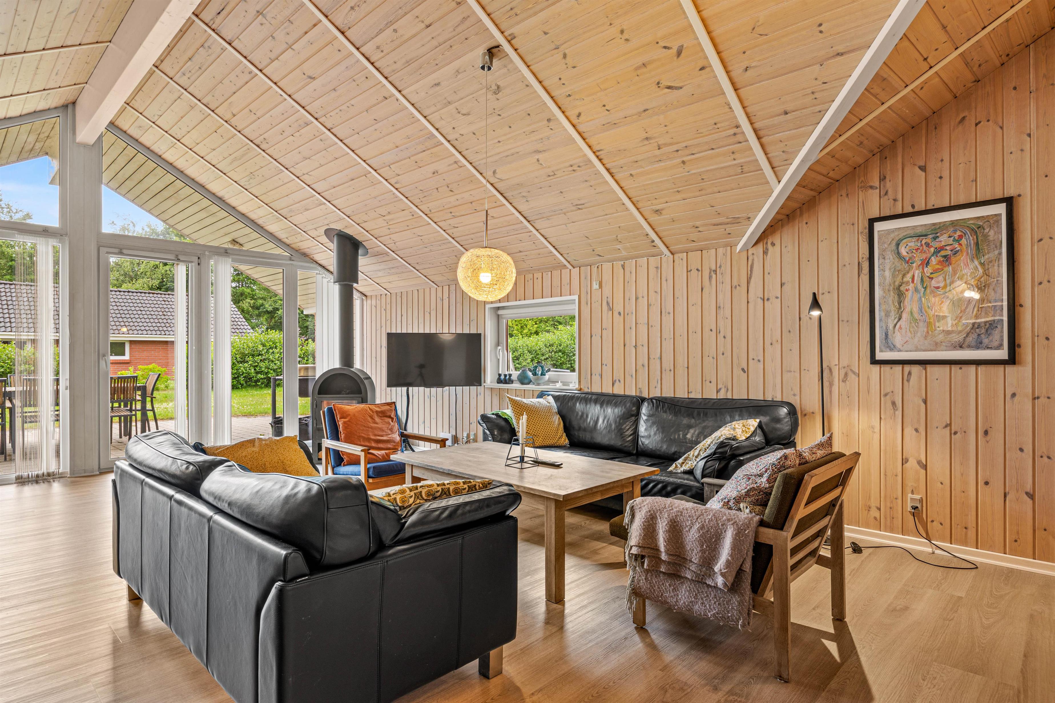Når du går ind i sommerhuset, mødes du af en indbydende atmosfære, hvor komfort og funktionalitet går hånd i hånd. Den rummelige stue inviterer til afslapning med sin hyggelige brændeovn, der bliver et naturligt midtpunkt på køligere dage. Bevæger du dig videre, finder I det velindrettede køkken, hvor en opvaskemaskine sørger for, at oprydning efter måltiderne er hurtigt klaret.