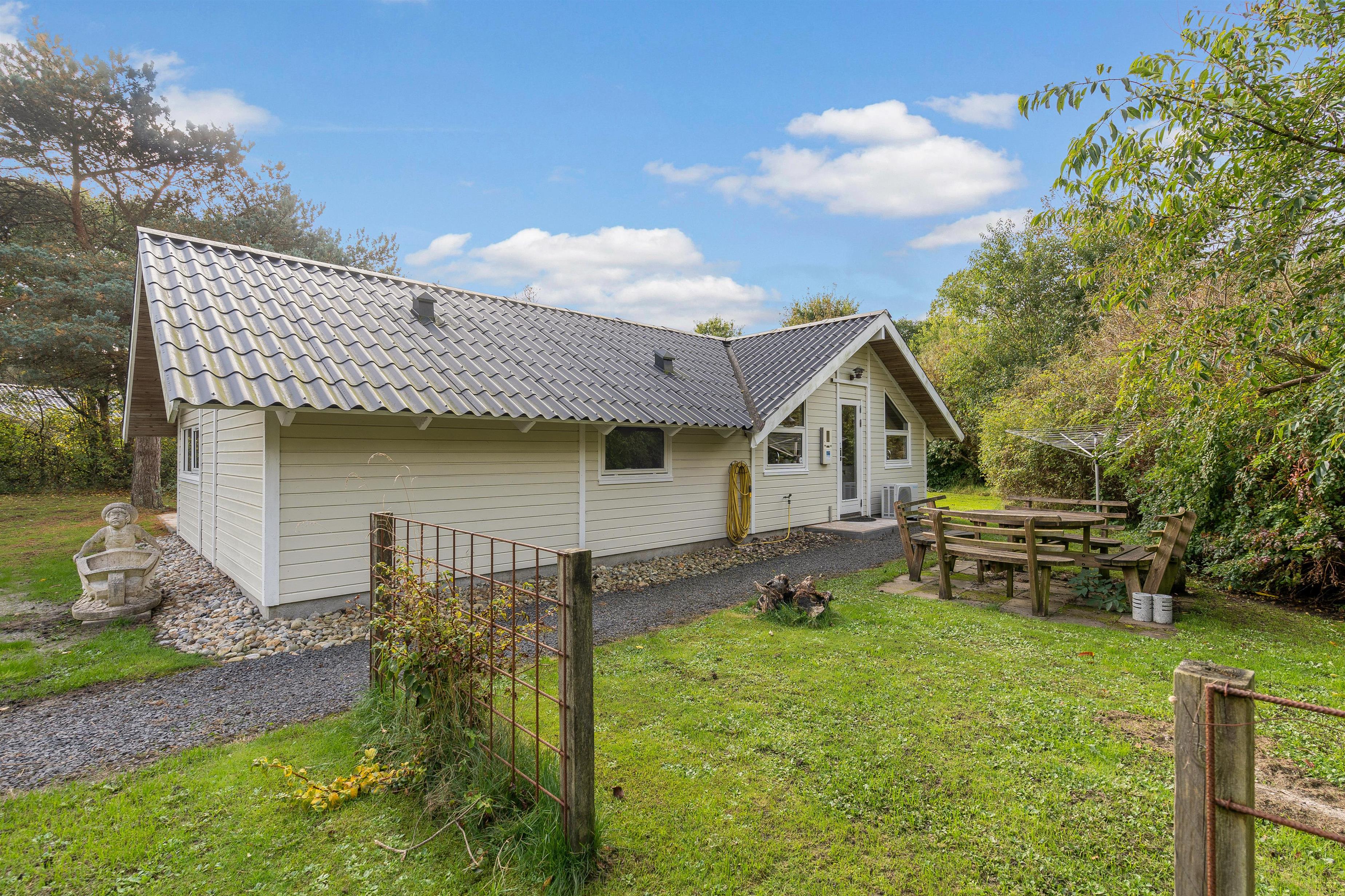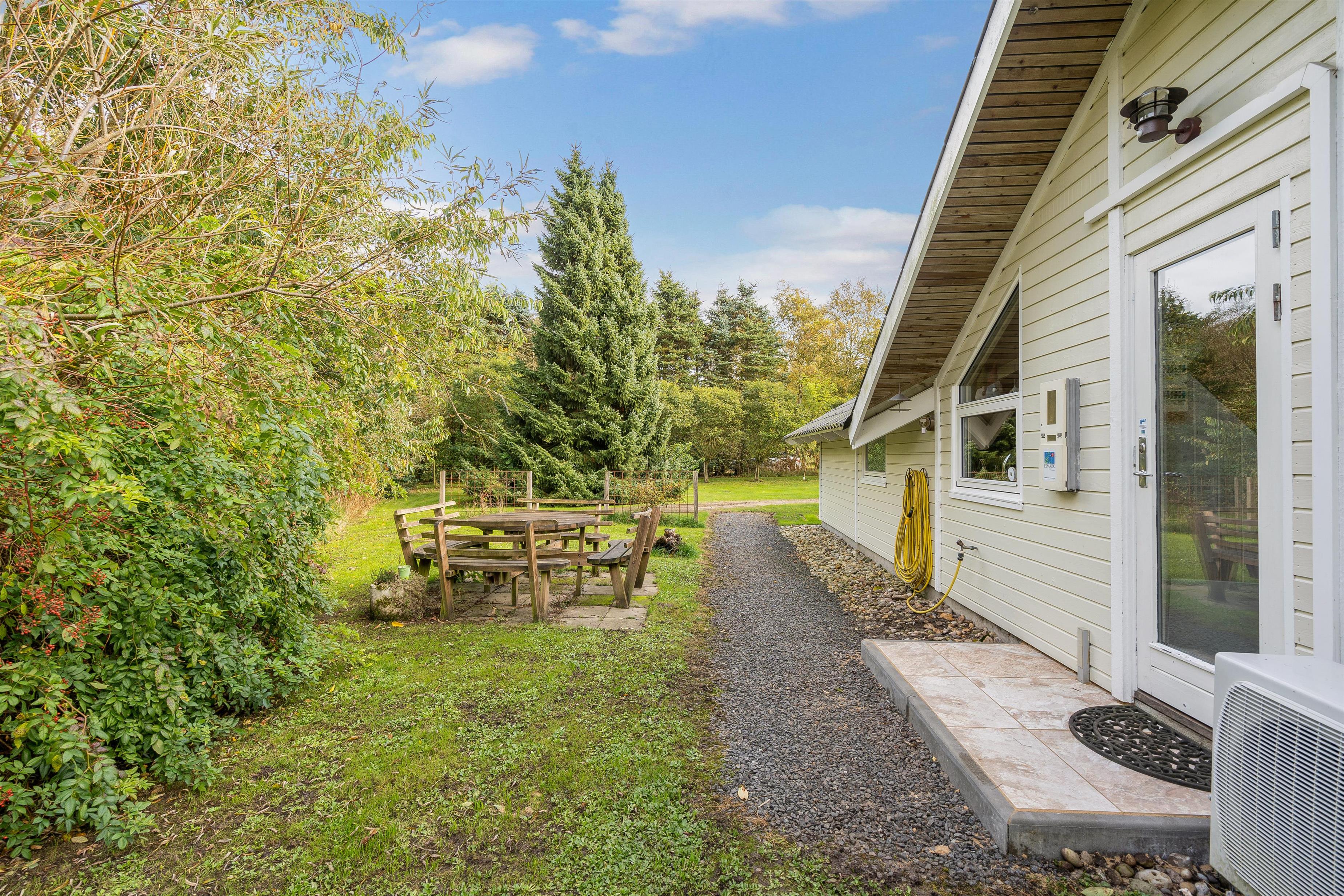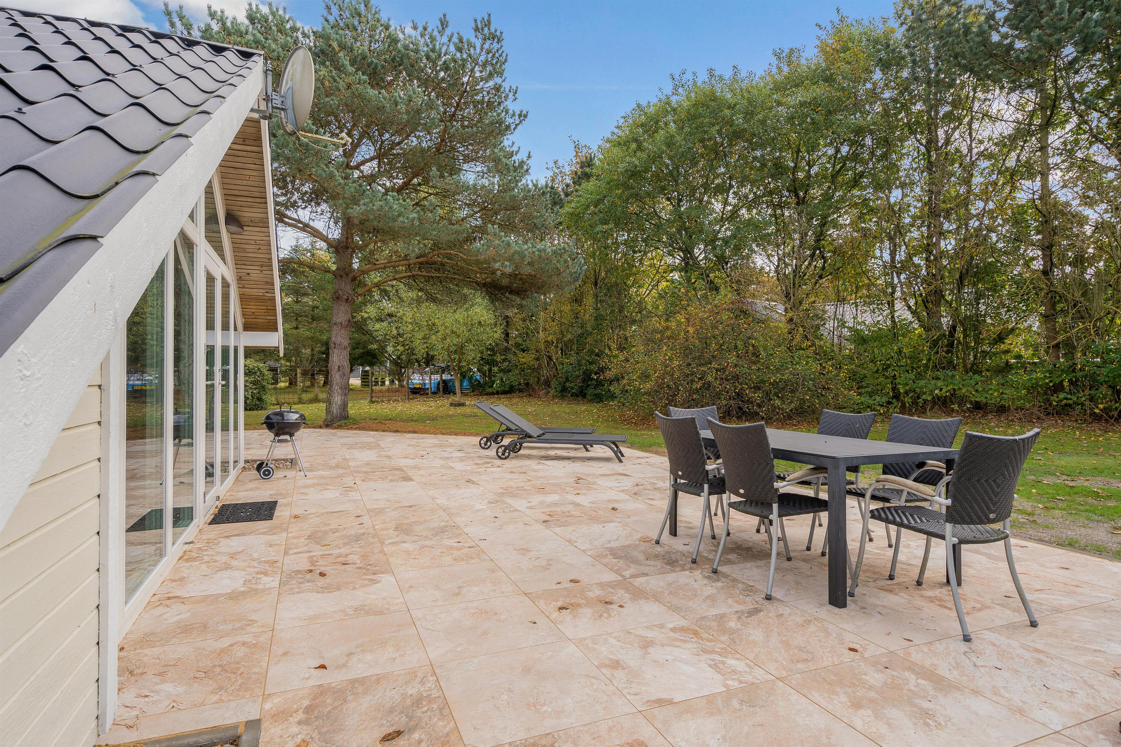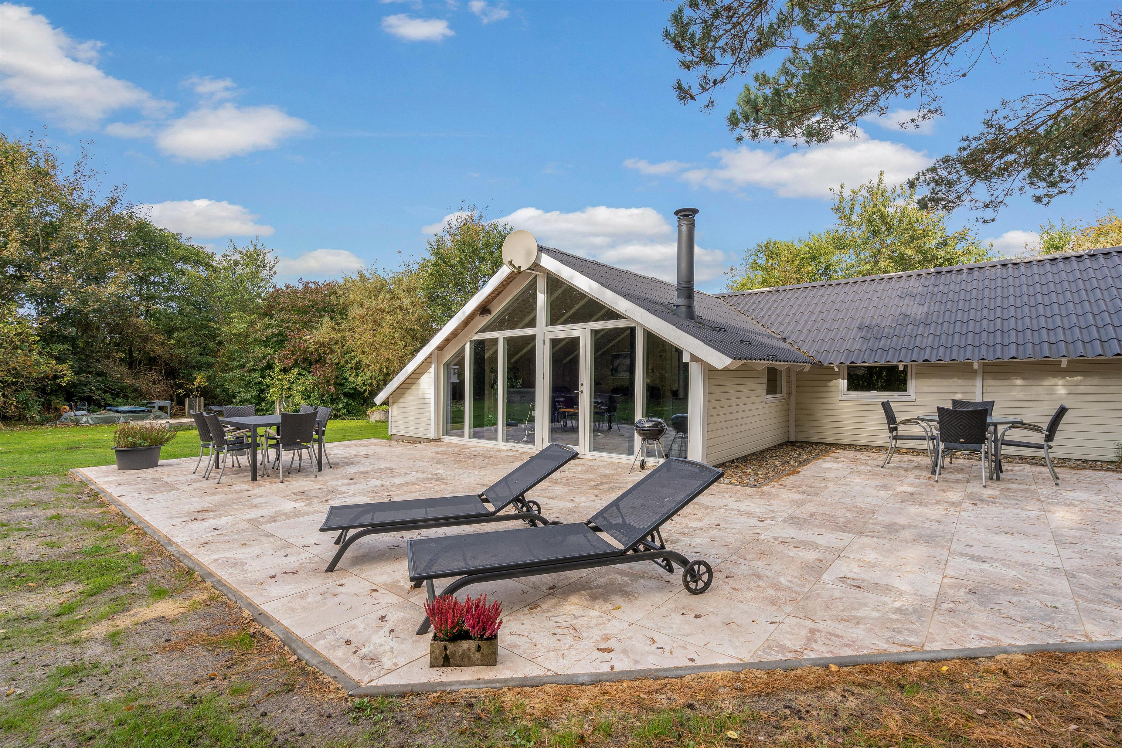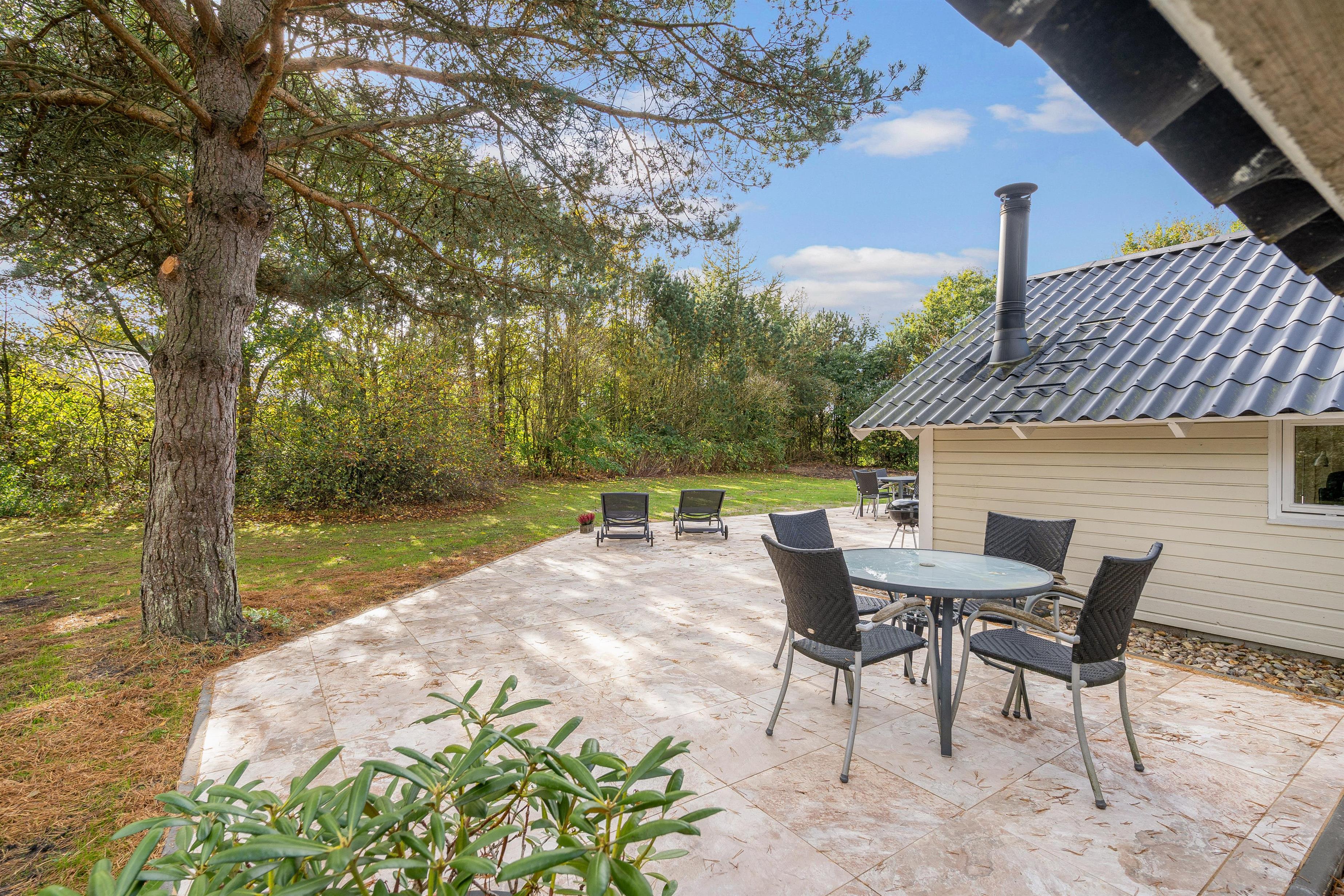 Der er også et legehus, hvor børnene kan slippe fantasien løs og nyde timevis af leg. Terrassen tilbyder mulighed for grillmad og hyggelige stunder under åben himmel, hvor I kan nyde solen og det fri. Udendørsområdet er veludstyret for at sikre, at alle i familien har noget at glæde sig over under ferien.