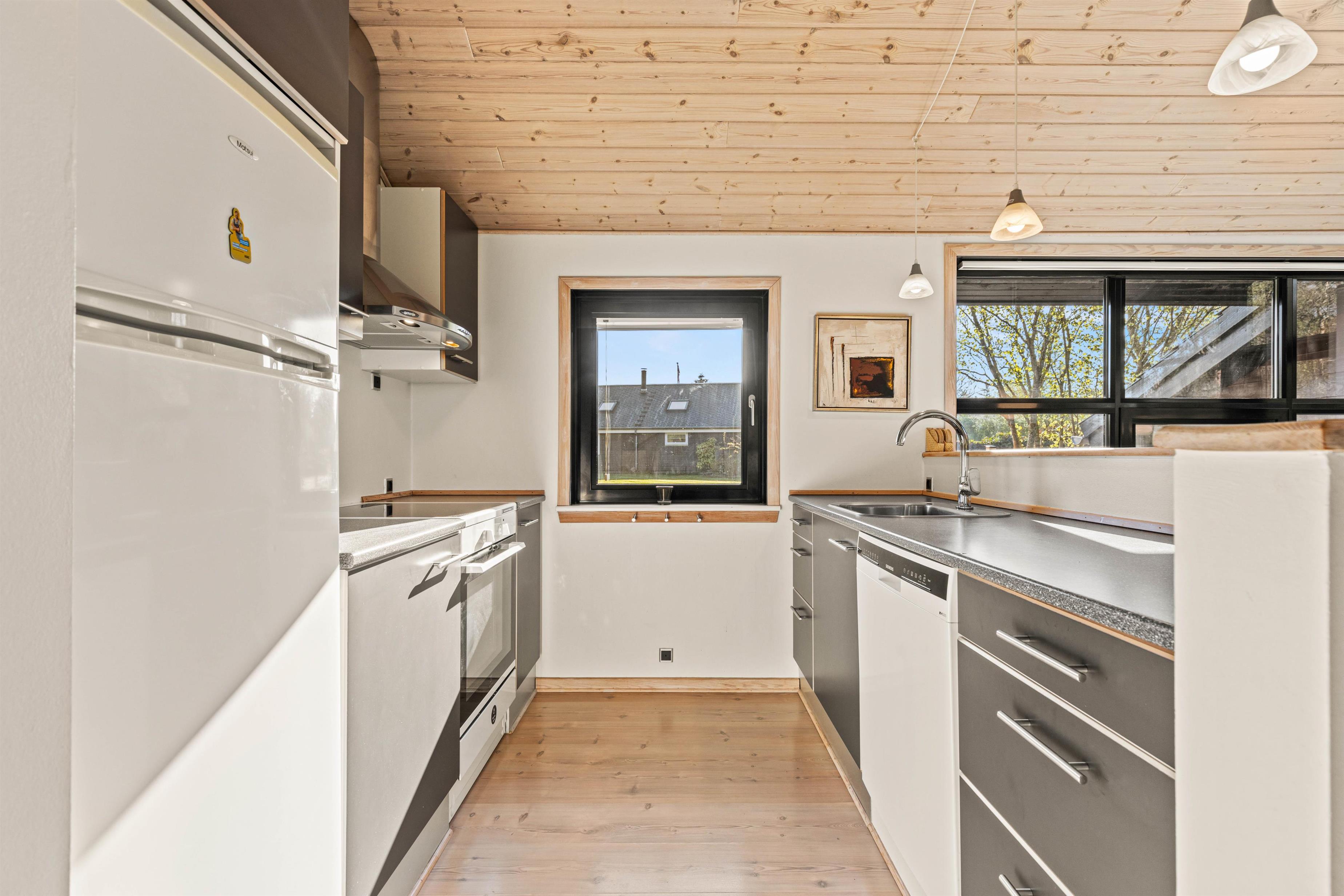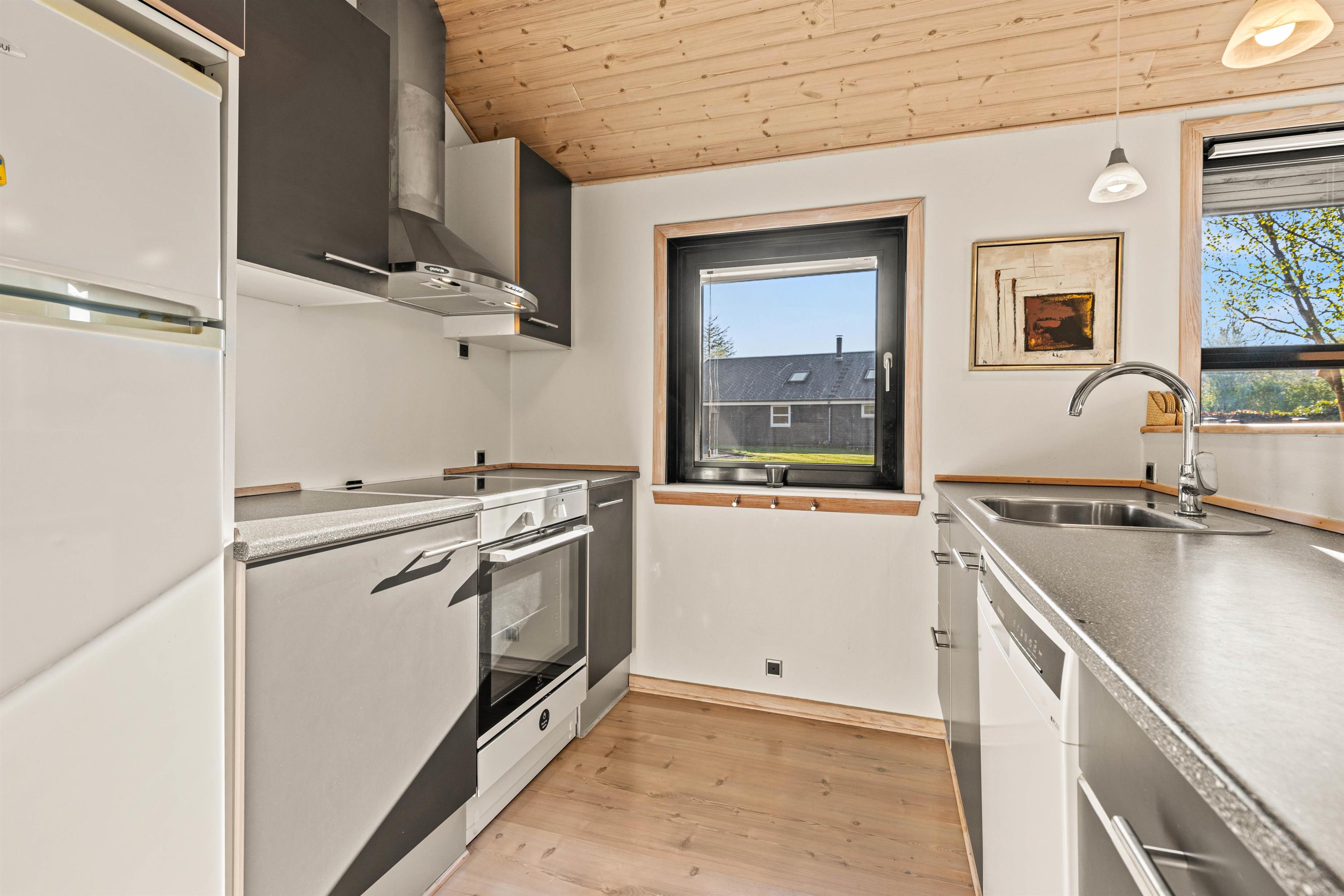 Her er der masser af mulighed for at slappe af og nyde familietiden sammen. I det store fællesrum med stue, køkken og spiseafdeling kan I samles til gode feriemiddage, kortspil og sofahygge foran den knitrende brændeovn.