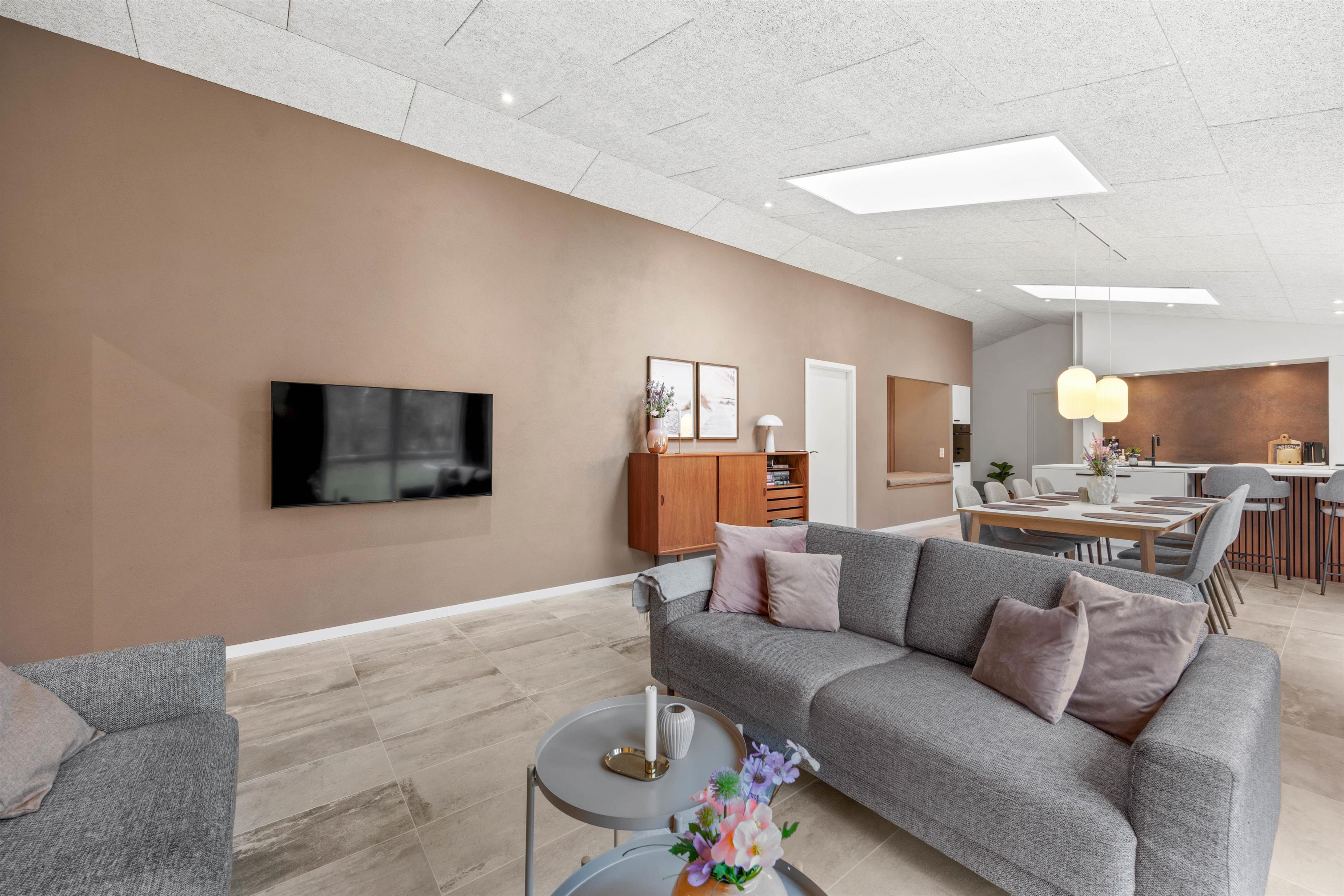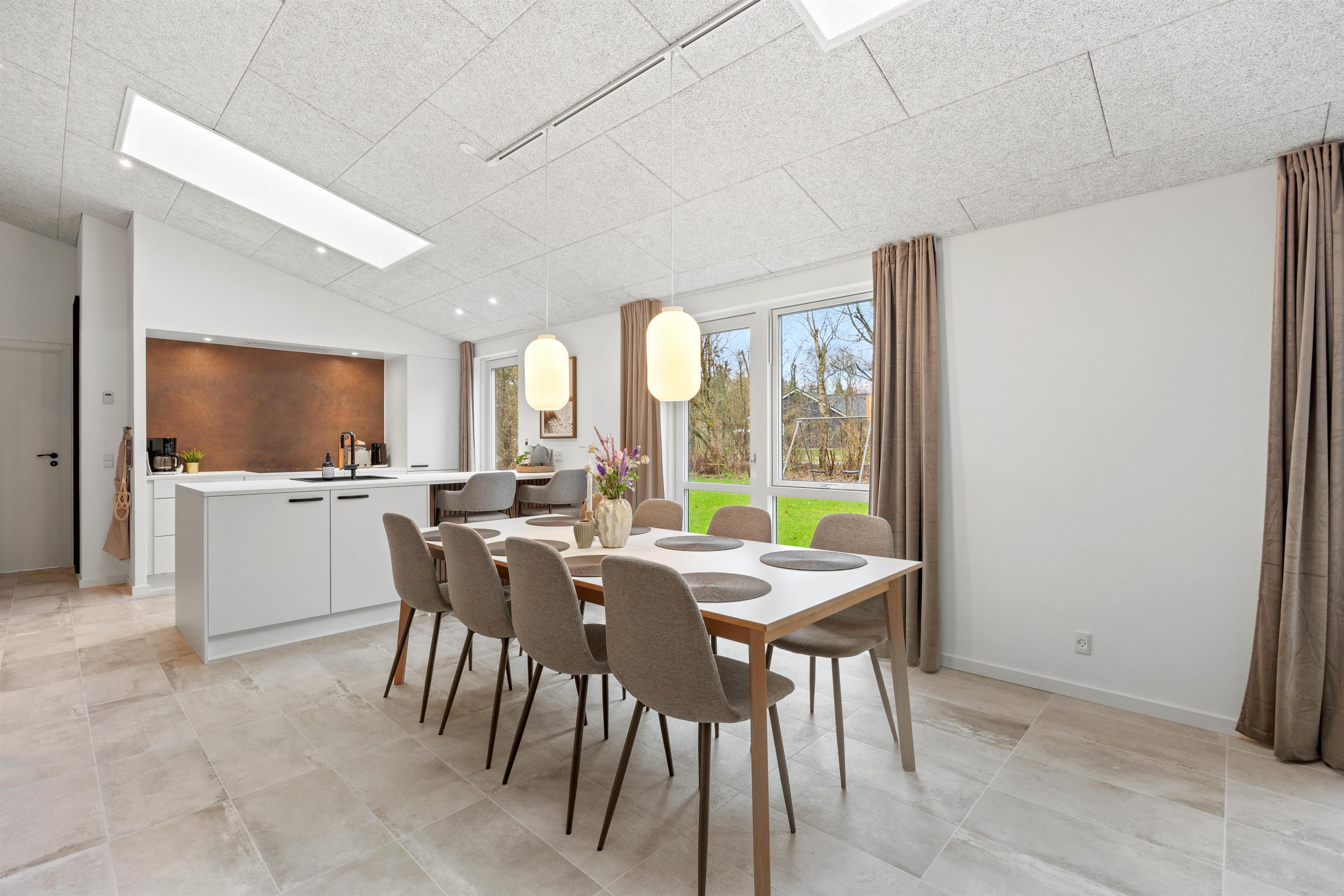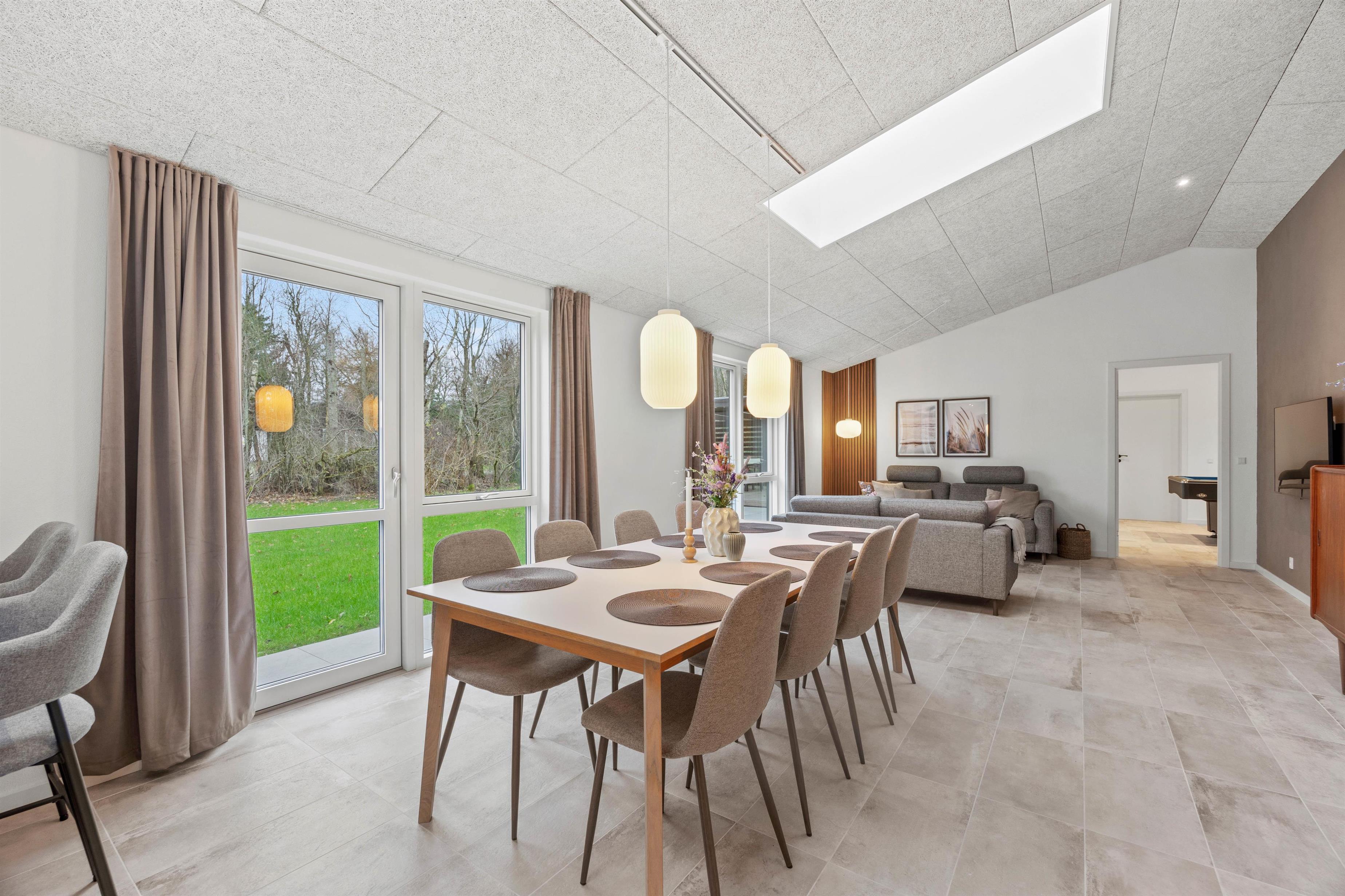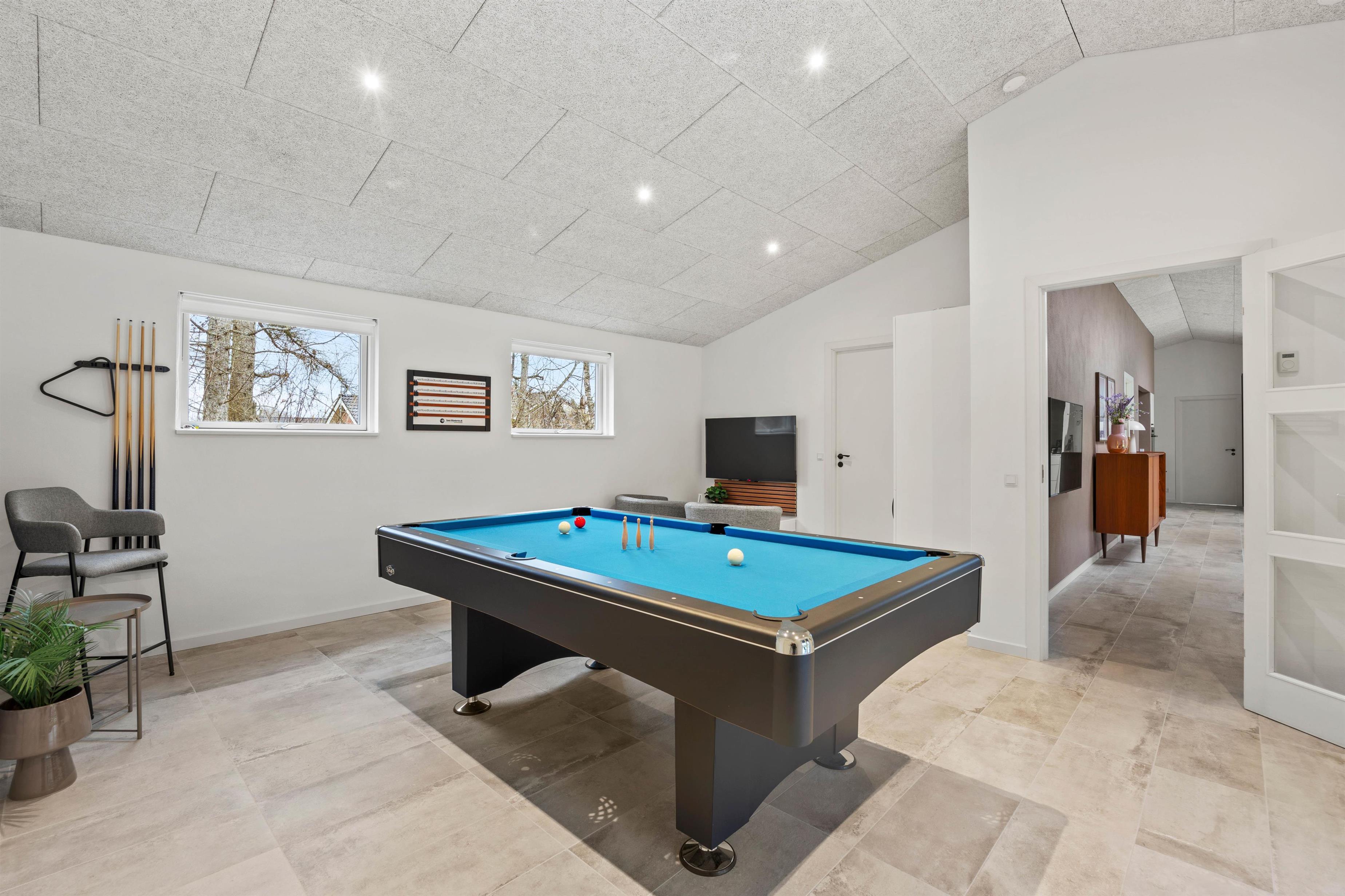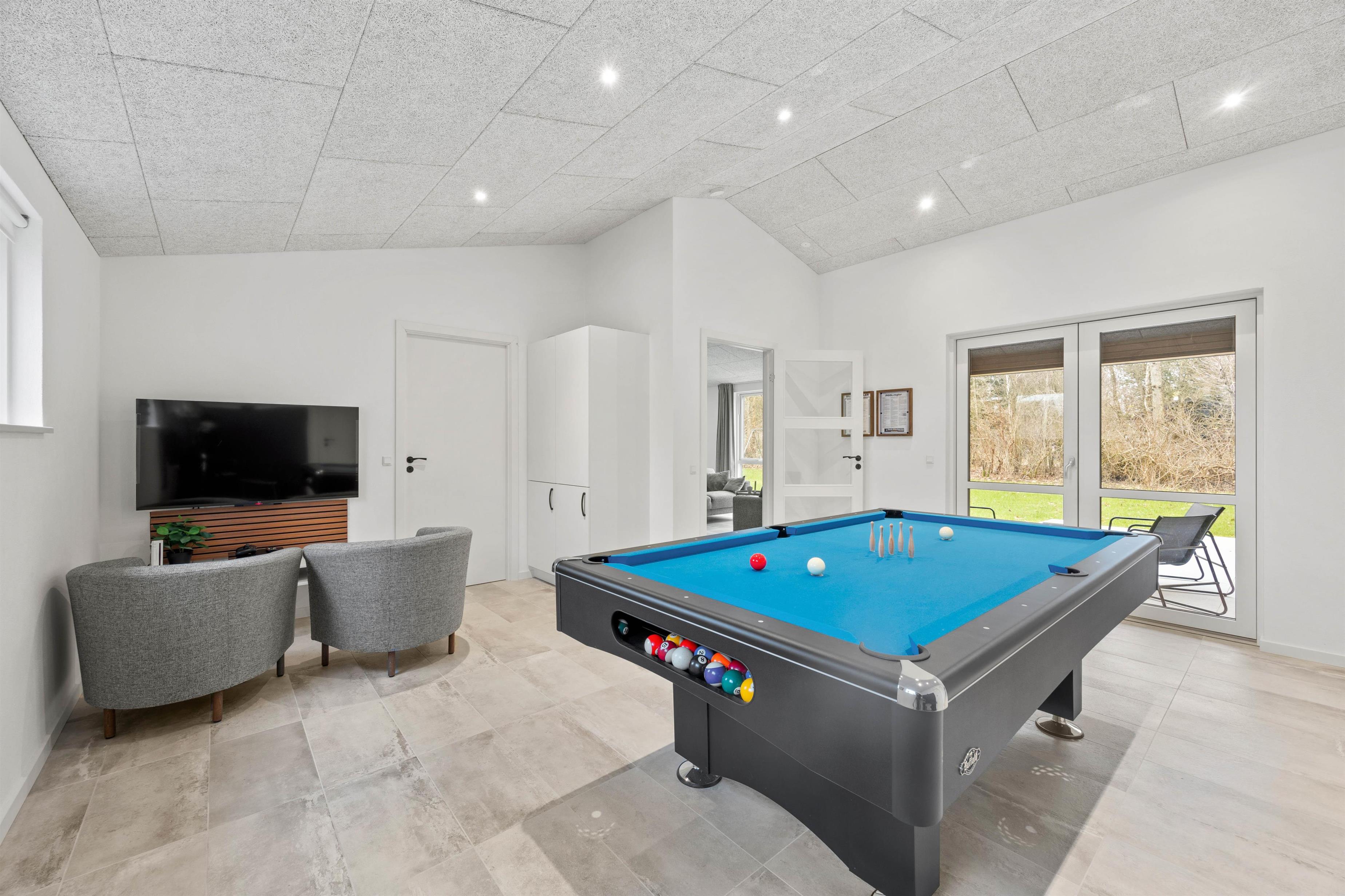 Bevæger man sig videre fra køkkenalrummet, åbner det store aktivitetsrum sig med et indbydende billardbord, som sikrer, at der altid er god underholdning til aftenerne. Skal der flere spil til, kan billardbordet forvandles til et bordtennis bord og spilleaftner kan fortsætte med samme spædning igennem hele opholdet. Egelounden 28 emmer af god stil og en sans for deltajerne - køkkenet er malet i stilrene farver og møblerne er nøje udvalgt for at sikre at opholdet i lige netop dette sommerhus bliver så skønt som muligt.