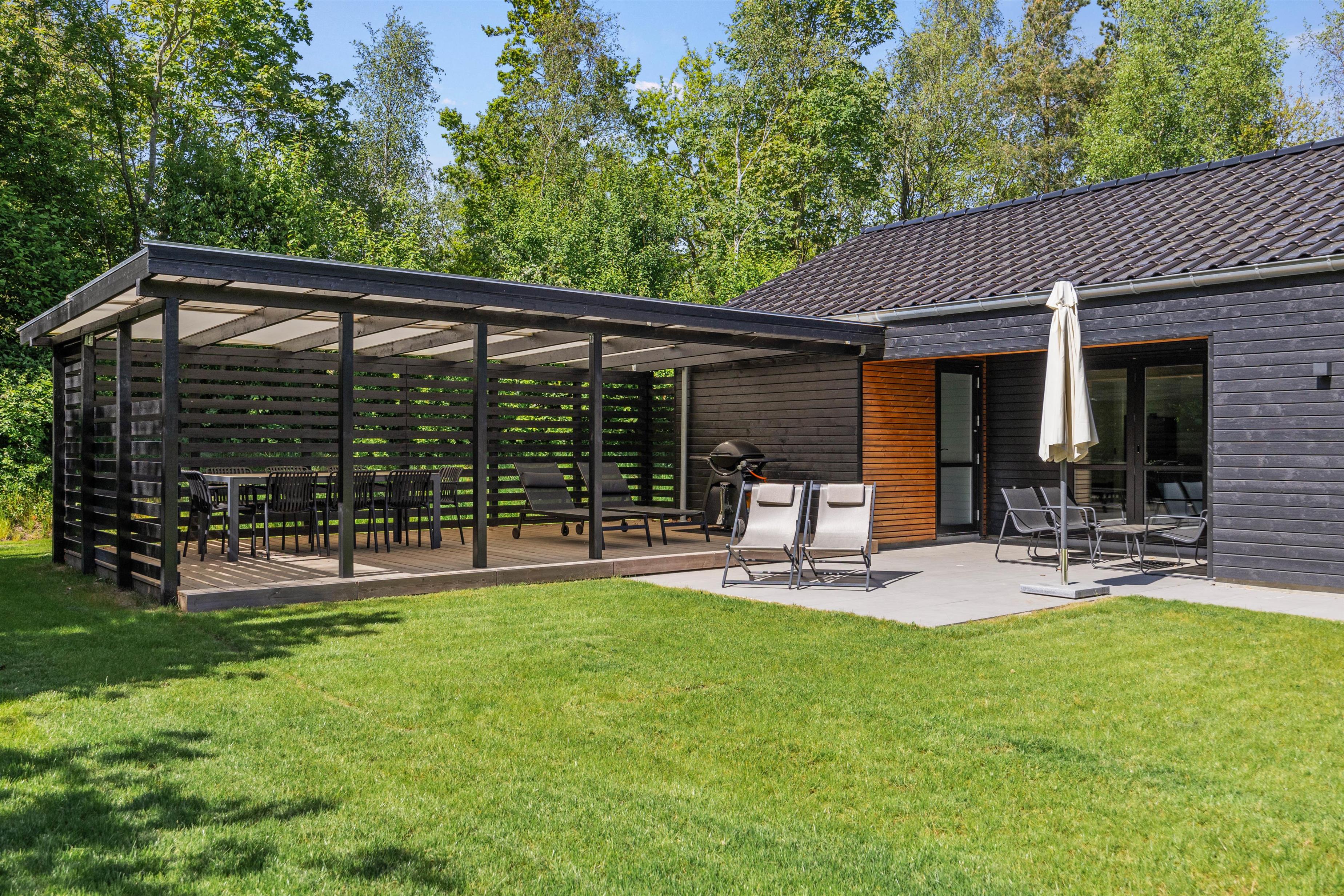 Udearealerne omkring sommerhuset giver jer fantastiske muligheder for at nyde den friske luft og de naturskønne omgivelser, som Jegum Ferieland har at byde på. Den overdækkede terrasse er et ideelt sted at starte dagen med en kop kaffe eller afslutte den med et godt glas vin, mens I lader udsigten over den fredelige natur synke ind og snakkene folde sig ud.