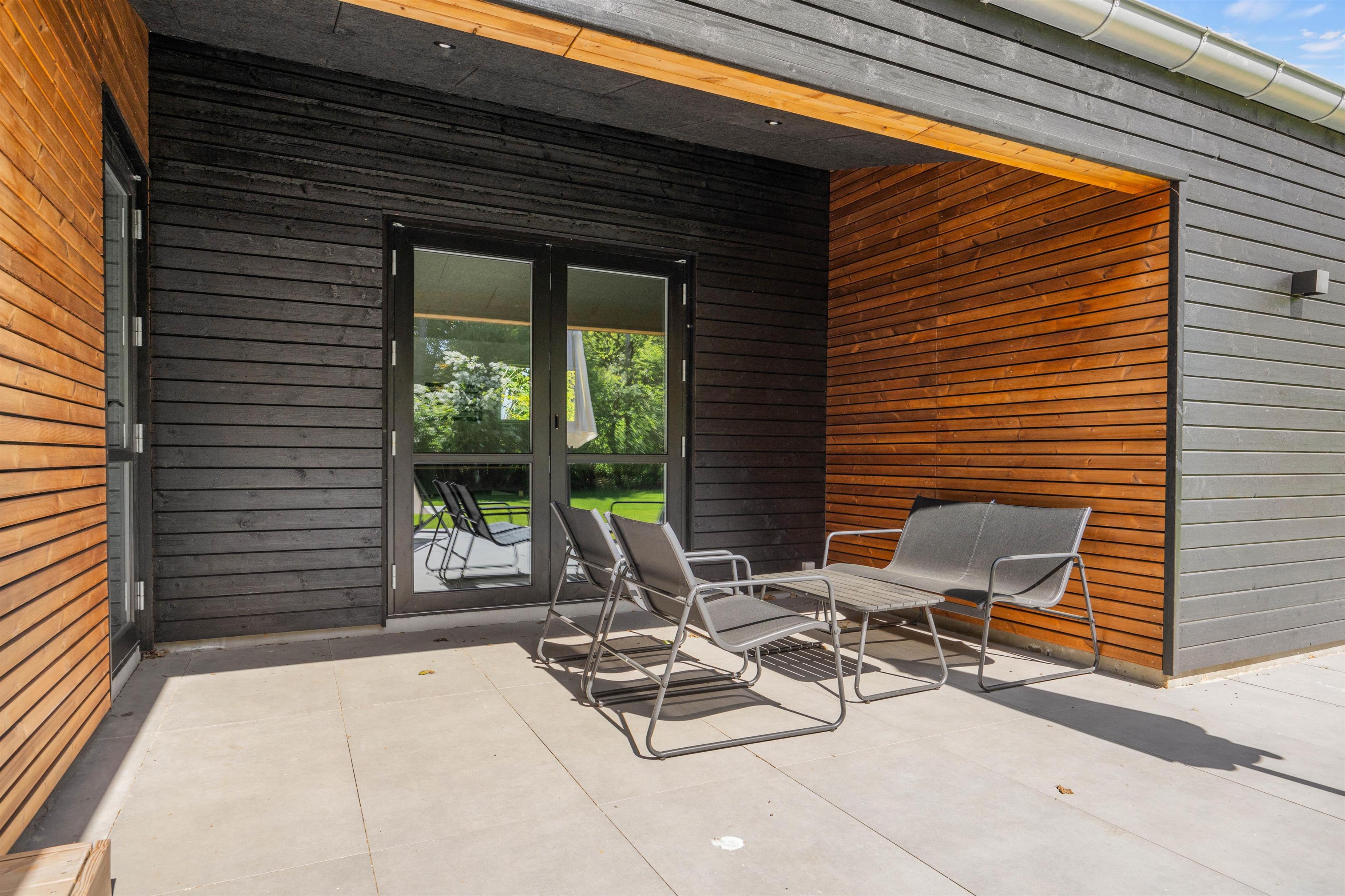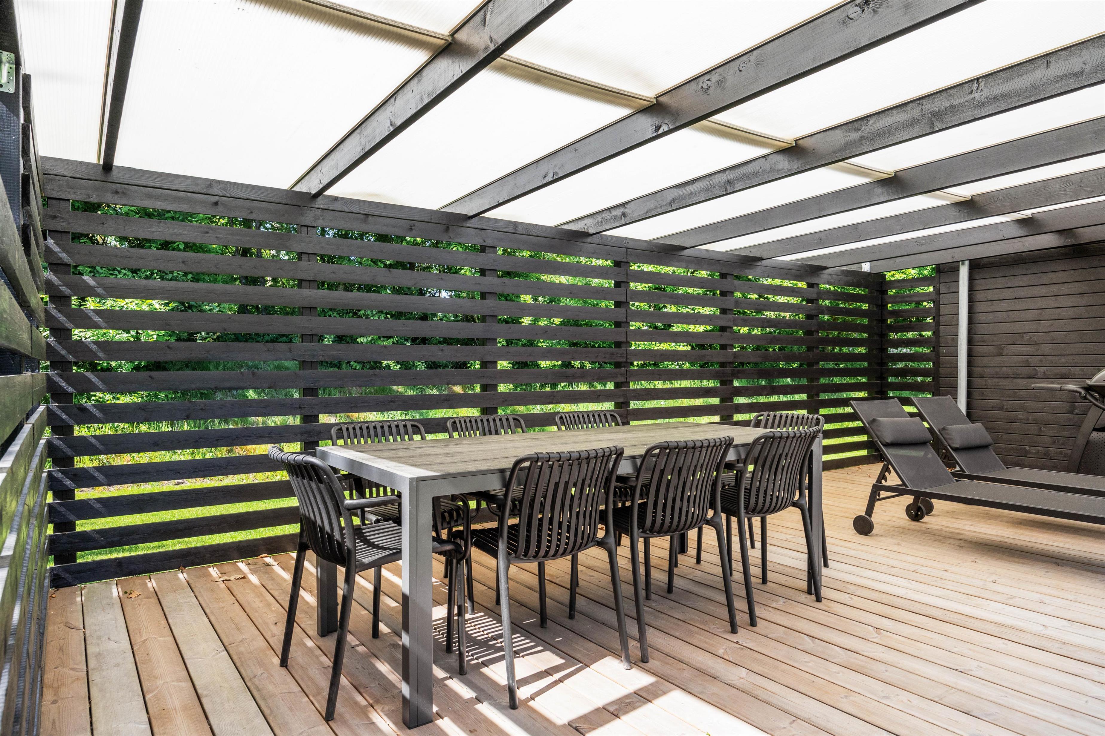 Overdækket terrasse med en hyggelig udestue