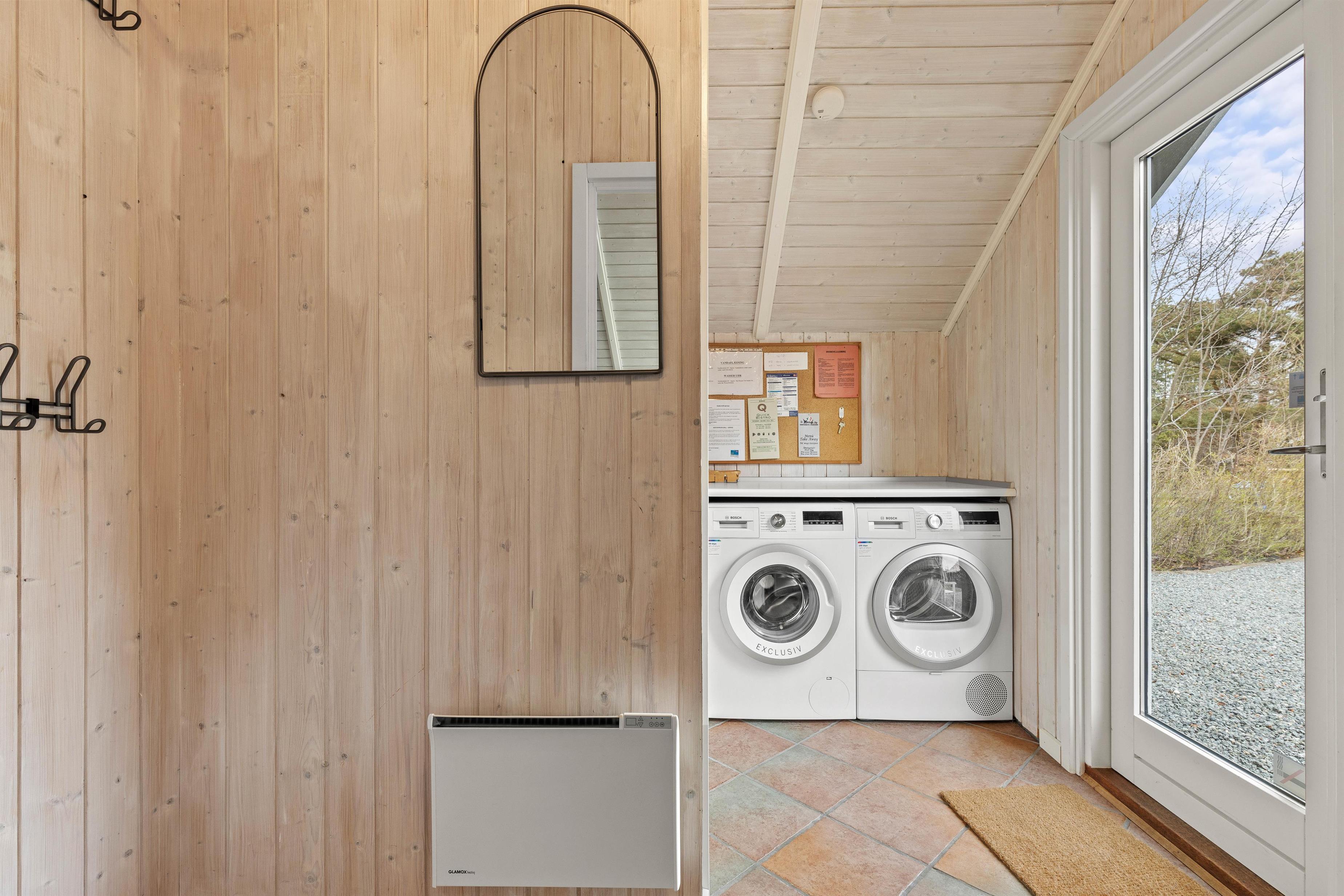 Feriehjemmet er udstyret med et stort badeværelse og et gæstetoilet - og på det store badeværelse får I jeres egen lille wellnessafdeling med sauna og spabad til 2 personer. Her bliver der tid til ekstra selvforkælelse og afslapning på de skønne feriedage.