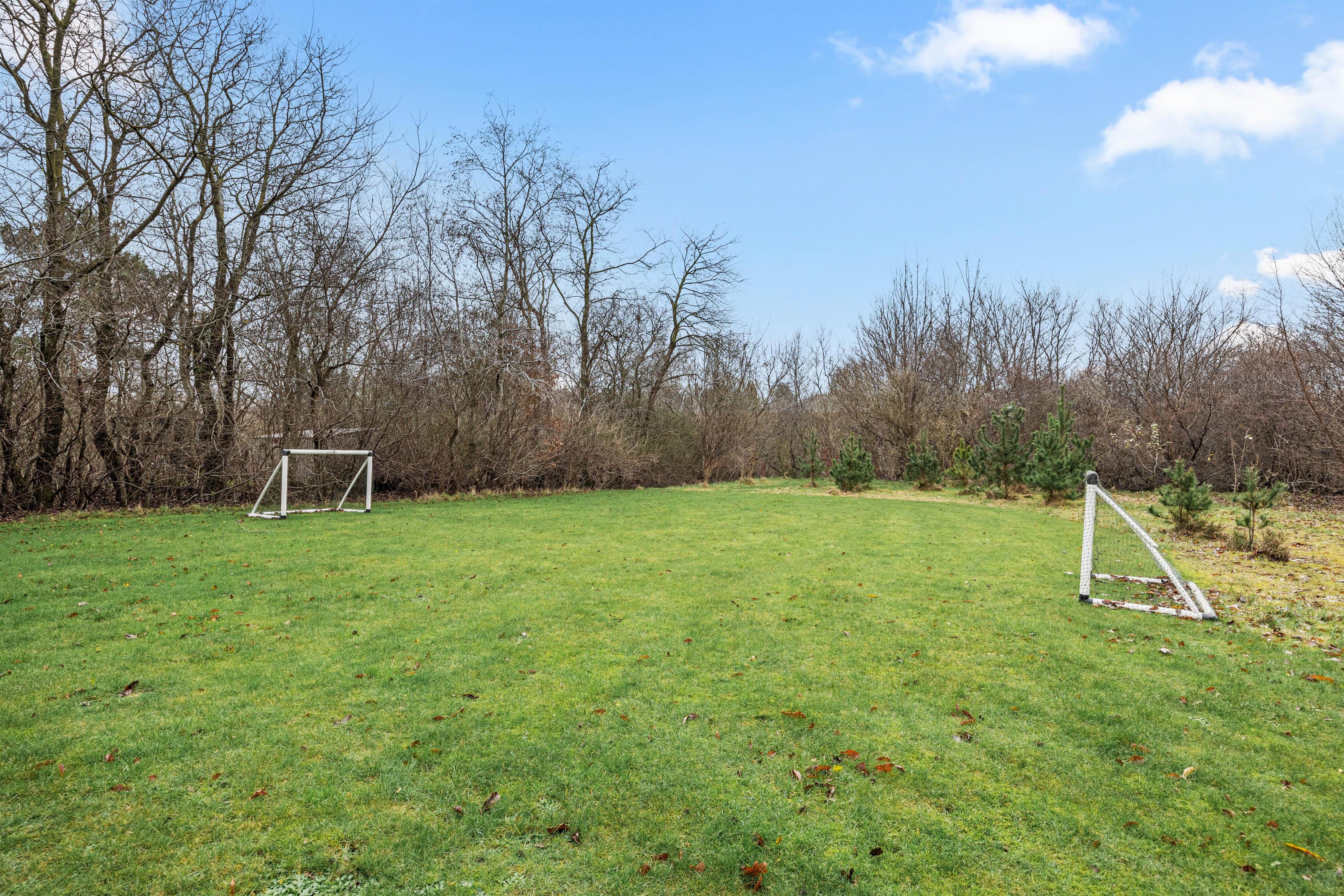 Sommerhuset ligger på en 1600 kvadratmeter stor plænegrund, som indbyder til spil og leg. Omkring huset er der flere terrasser, både åbne og delvist overdækkede. Her finder I havemøbler og en grill, så I kan nyde en aften med mad under åben himmel. Solvogne og en parasol står klar til de solrige dage.
