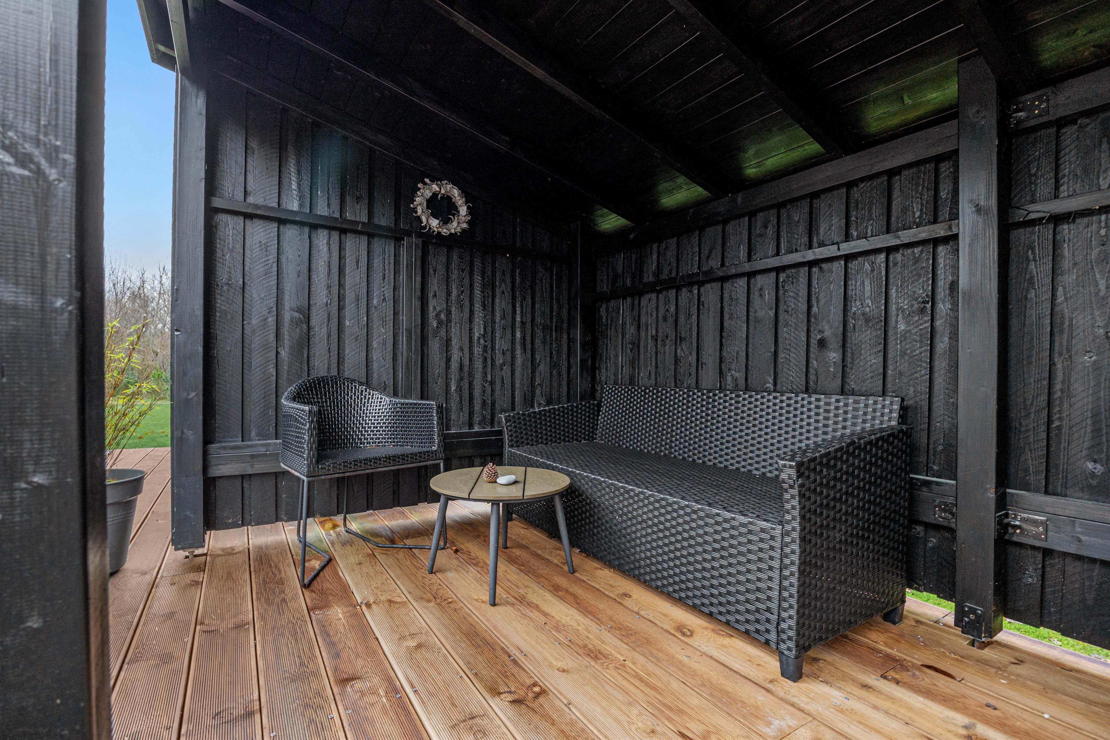 Den store terrasse byder på flere hyggelige kroge, hvor man kan sidde og nyde morgenkaffen eller en god bog. På terrassen er der altid mulighed for at finde en solplads, hvor I kan slappe af og nyde solens varme stråler.