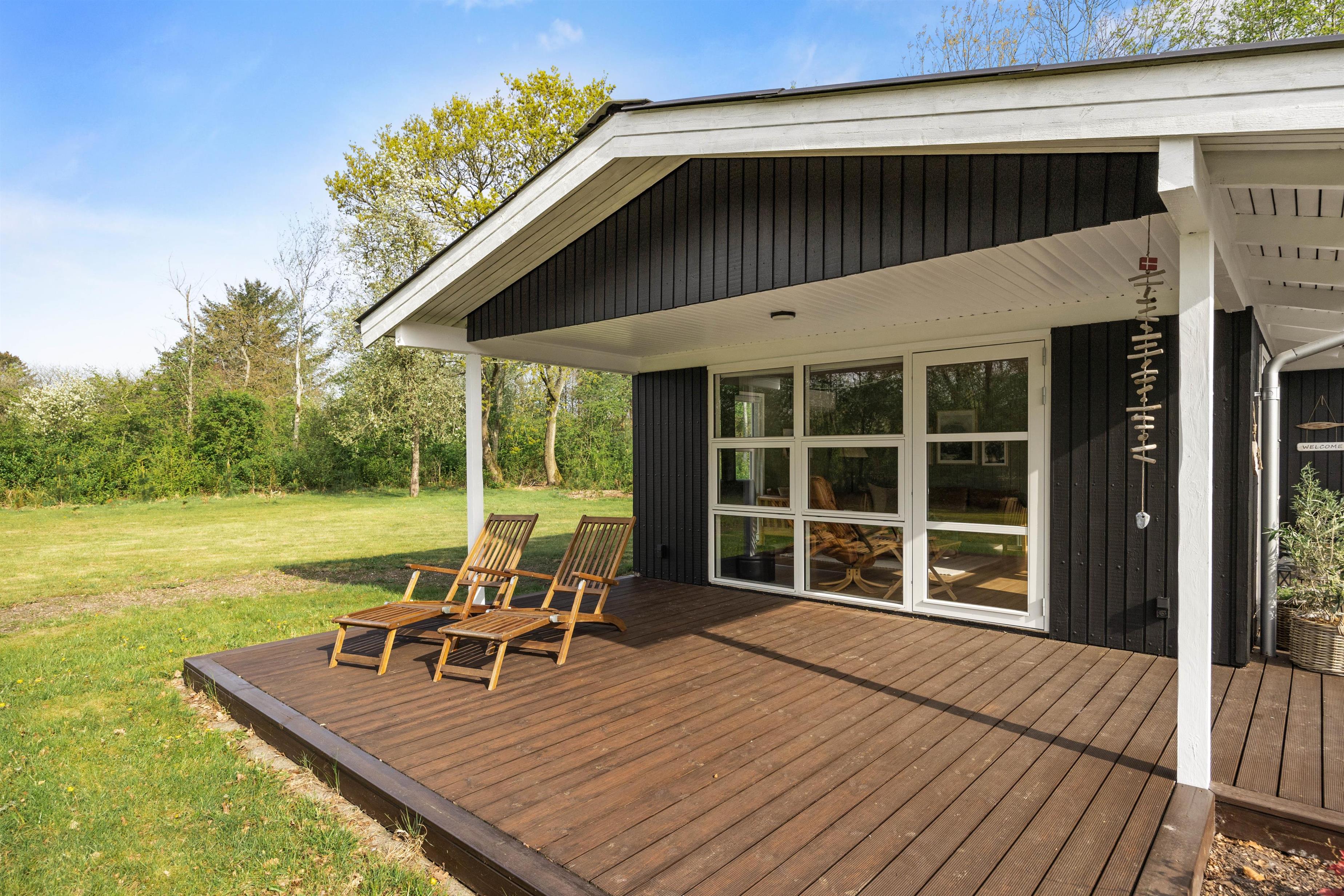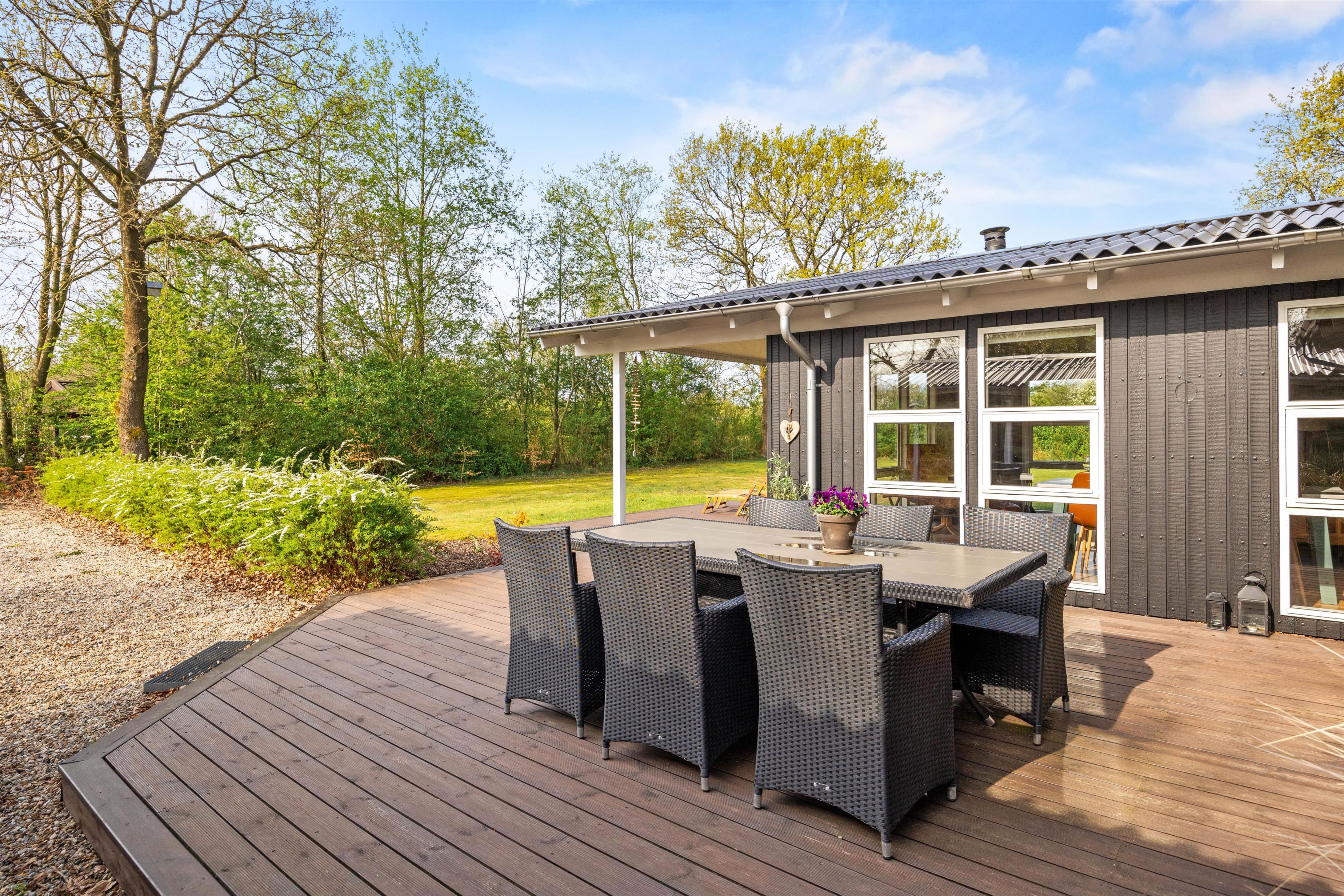 Ferieboligen er placeret på en rummelig 1700 kvadratmeter stor plænegrund, omkranset af træer, der indbyder til diverse leg og boldspil under solens stråler. Til udendørs hygge og afslapning er sommerhuset fuldt udstyret med en grill, komfortable havemøbler, en solvogn og en parasol, så I kan nyde det danske sommervejr.