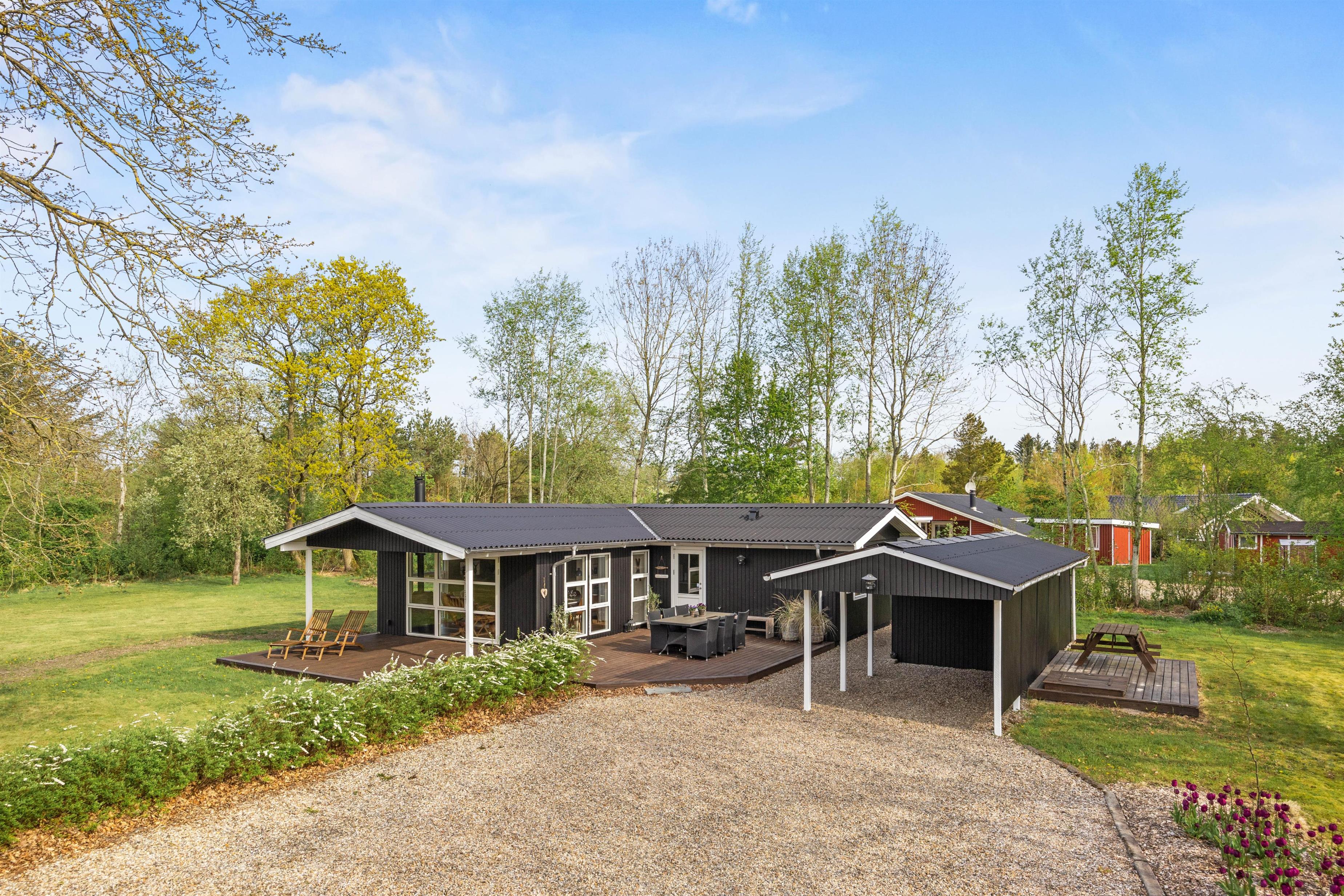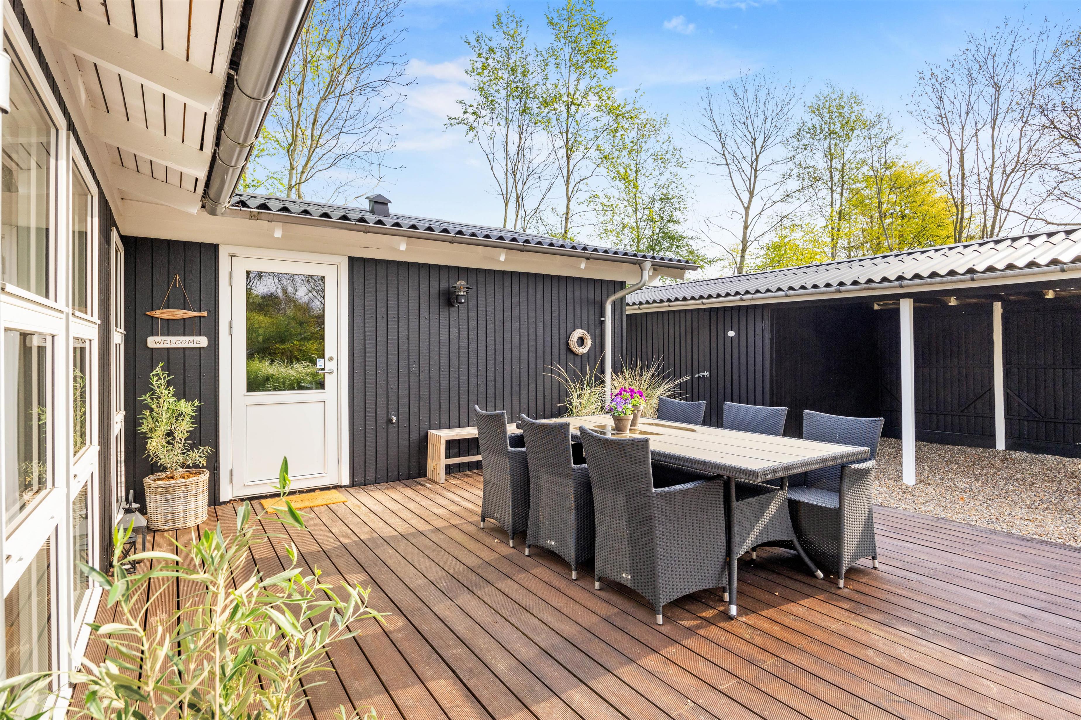 Derudover tilbyder ferieboligen en praktisk carport, der sikrer, at I trygt kan parkere bilen og nemt komme til og fra sommerhuset. Sommerhuset byder på både en åben og en overdækket terrasse, hvor I kan samles og nyde jeres måltider under åben himmel eller i læ for solen, mens duften af grillmad fylder luften.