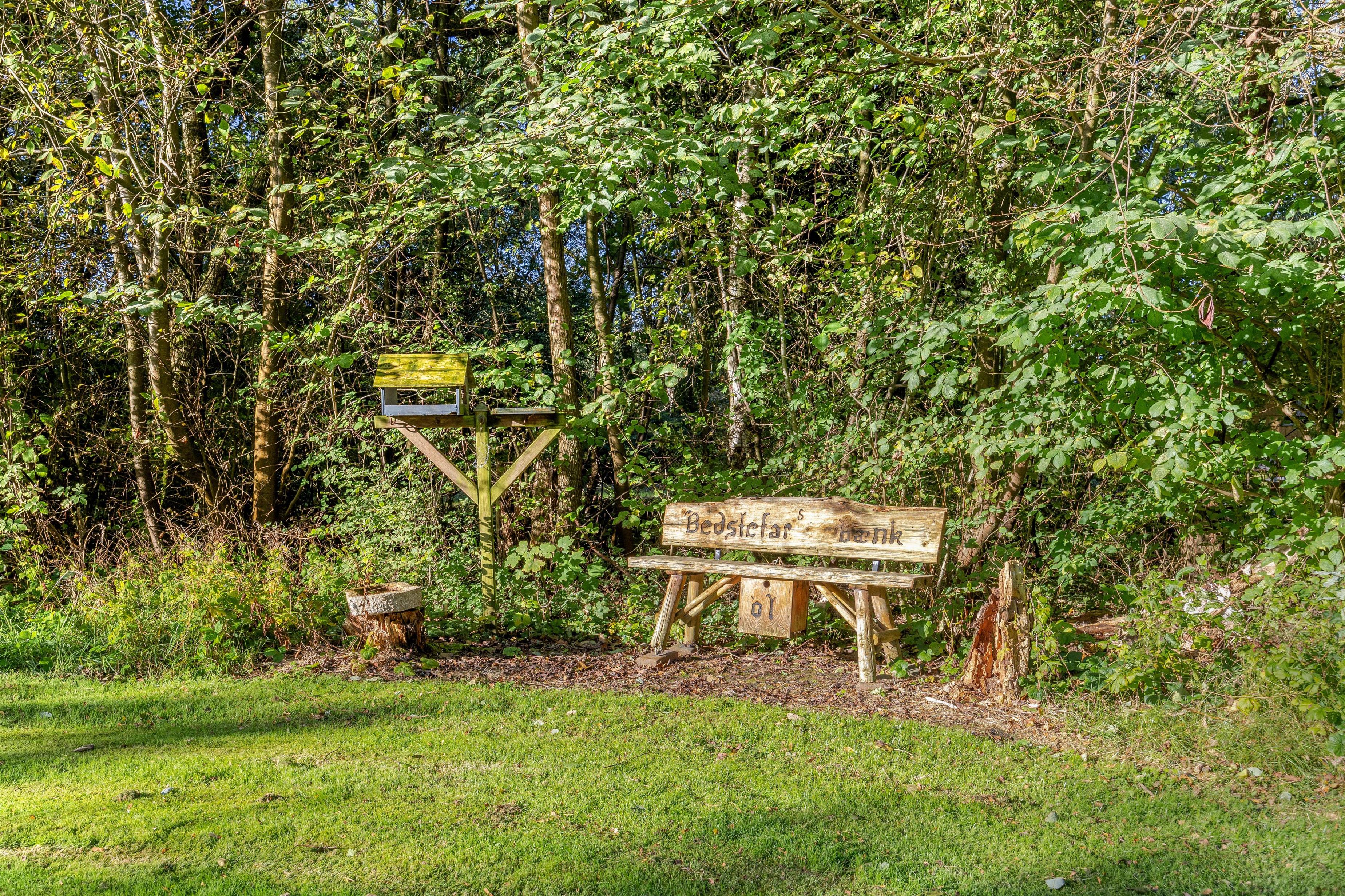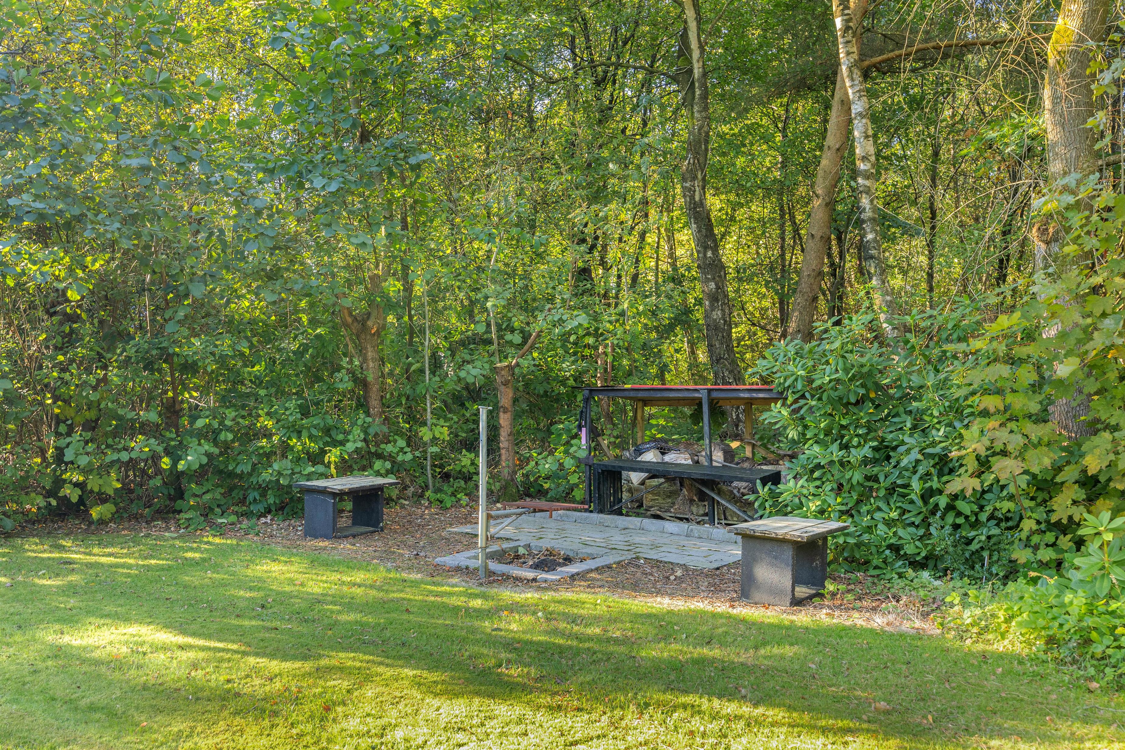Udover terrassen er der indrettet flere hyggelige siddesteder rundt omkring i haven, hvor der bl.a. også er en lille bålplads, så I kan grille skumfiduser eller snobrød på de lune sommeraftener.