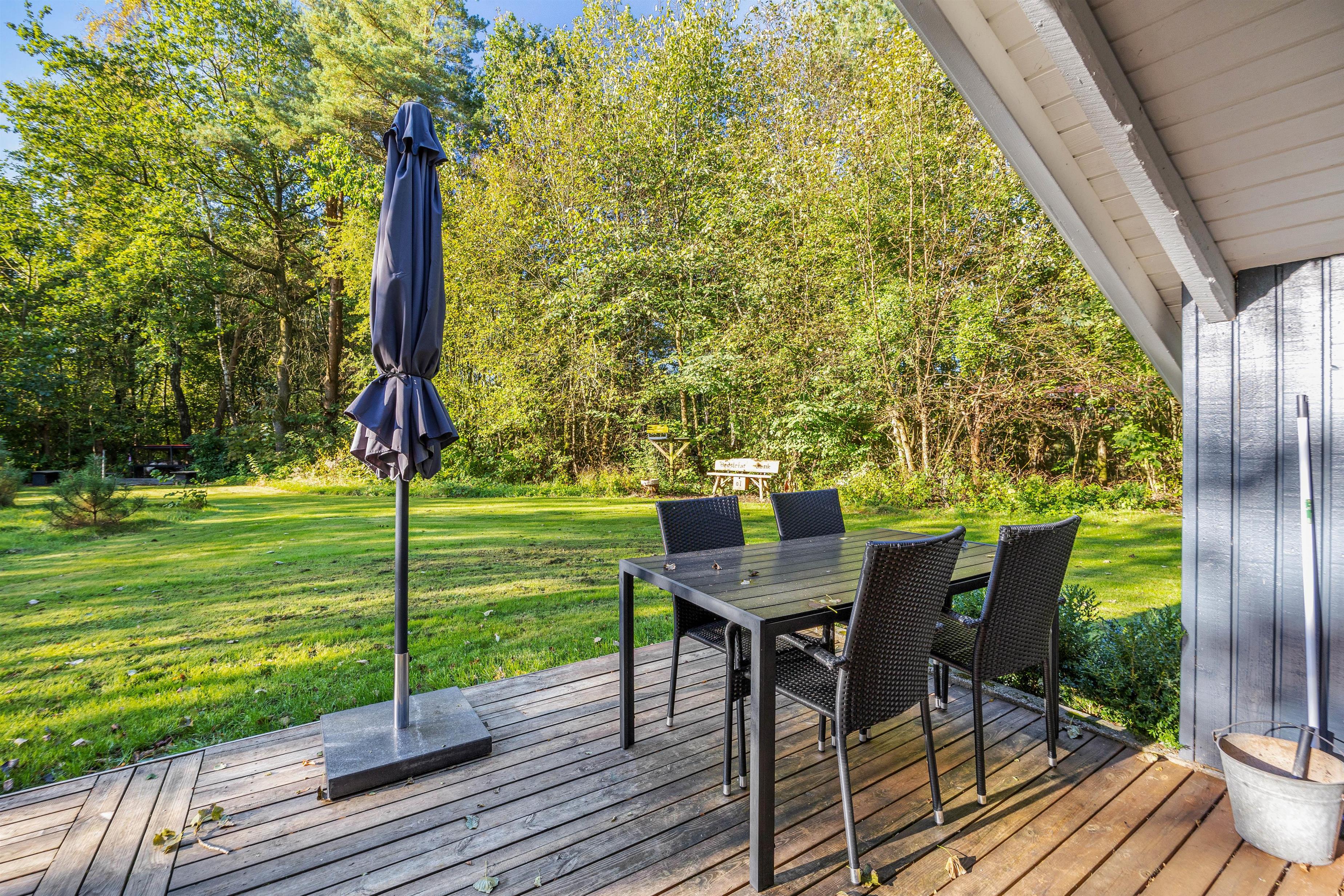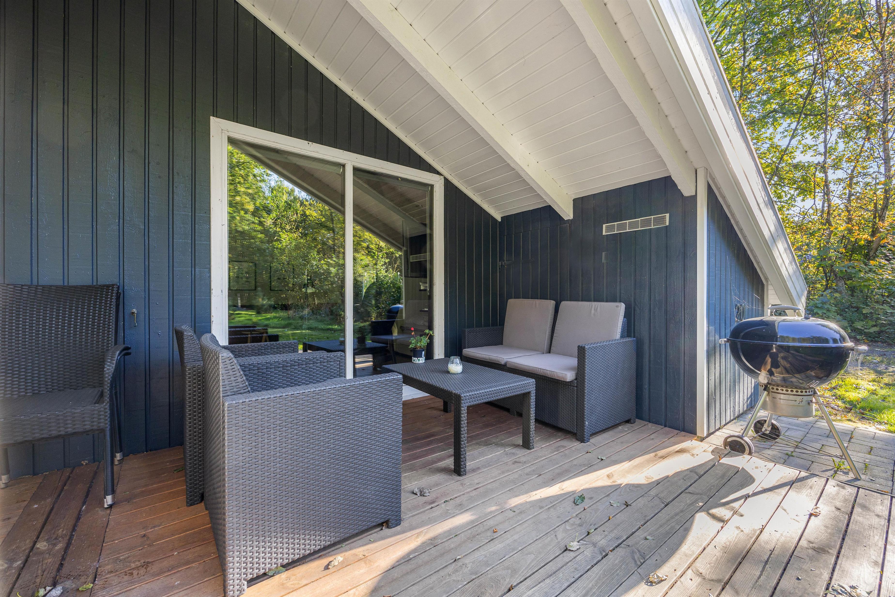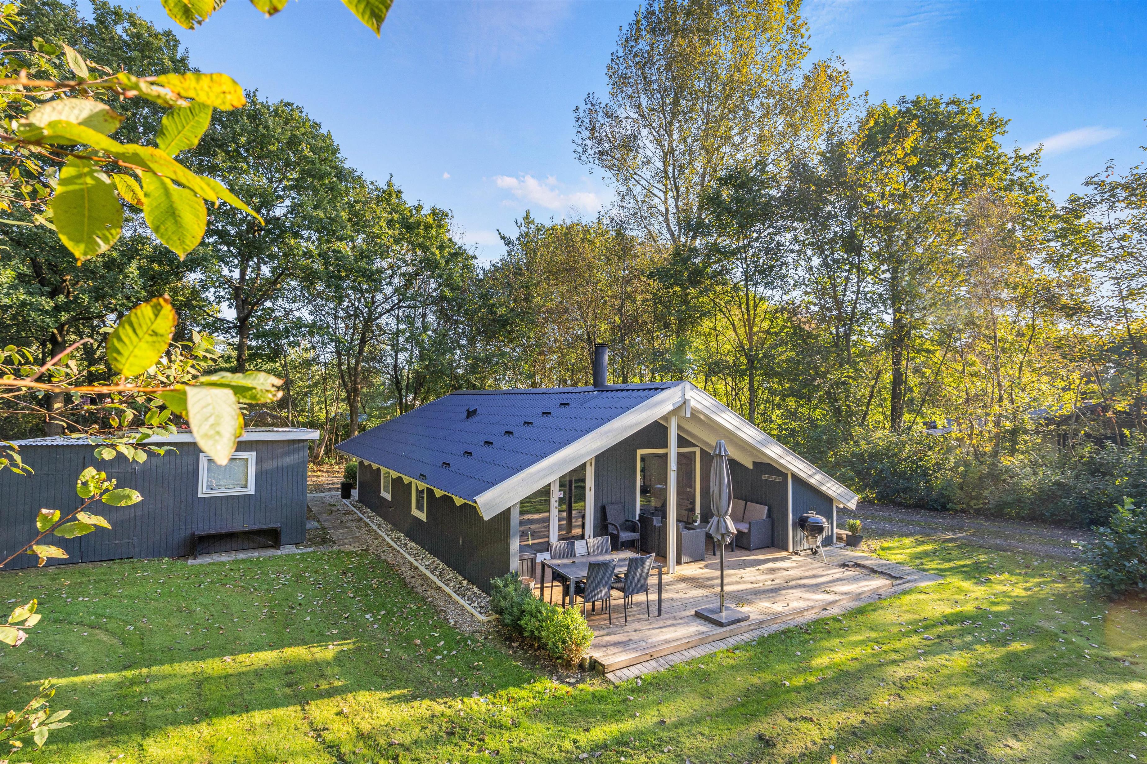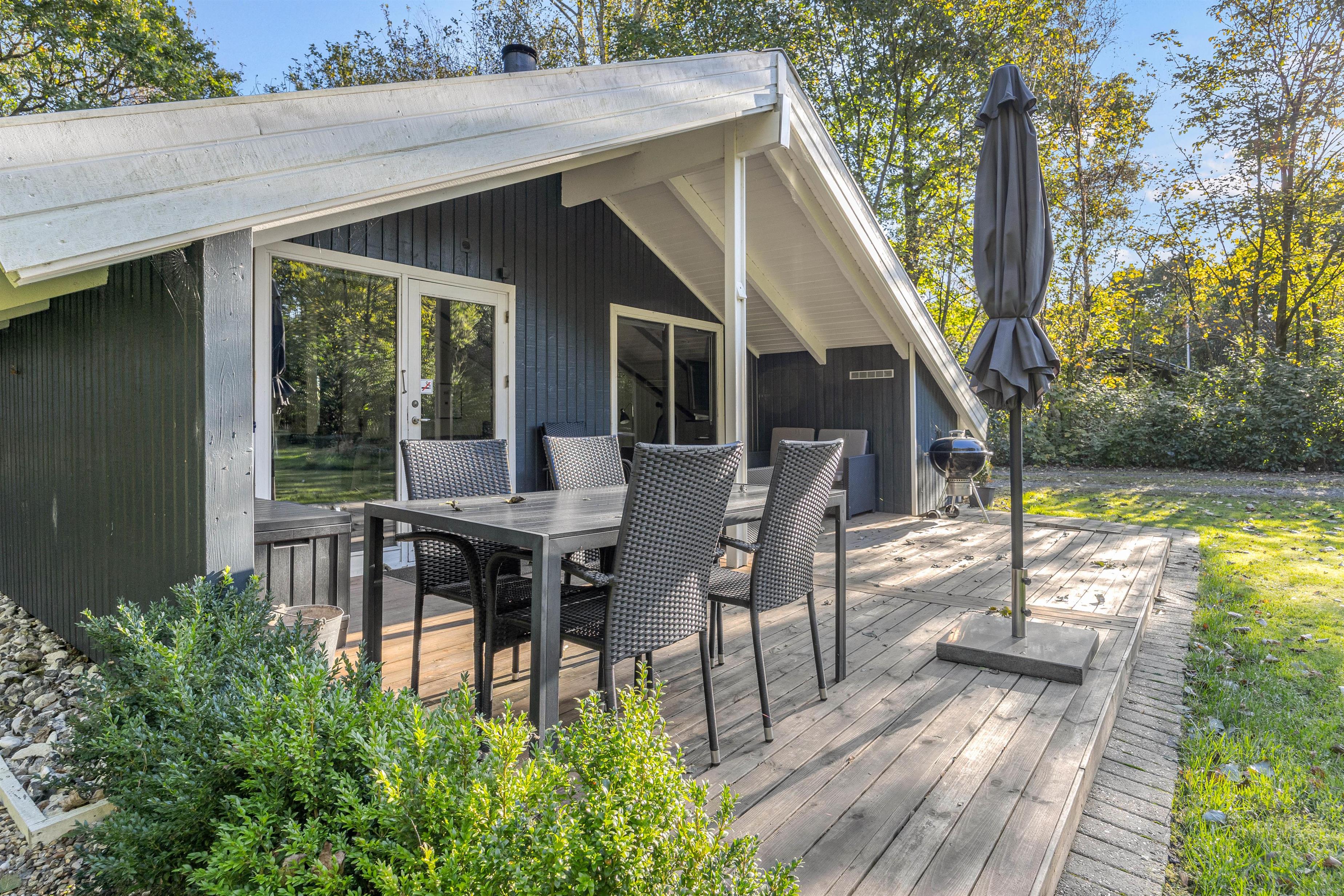 Feriehuset på Hybenvangen 20 er beliggende på en stor plænegrund med masser af plads til, at børn og hunde kan boltre sig og få brændt noget energi af, eller en gang yoga under åben himmel. Her kan I fra den delvist overdækkede træterrasse nyde lyden af de legende børn, fuglenes kvidren fra de mange omkringliggende træer og nyde duften af dansk sommer fra de komfortable havemøbler. De omkringliggende træer giver også læ og privatliv, så I kan nyde hyggelige grillmiddage med familien eller venner.