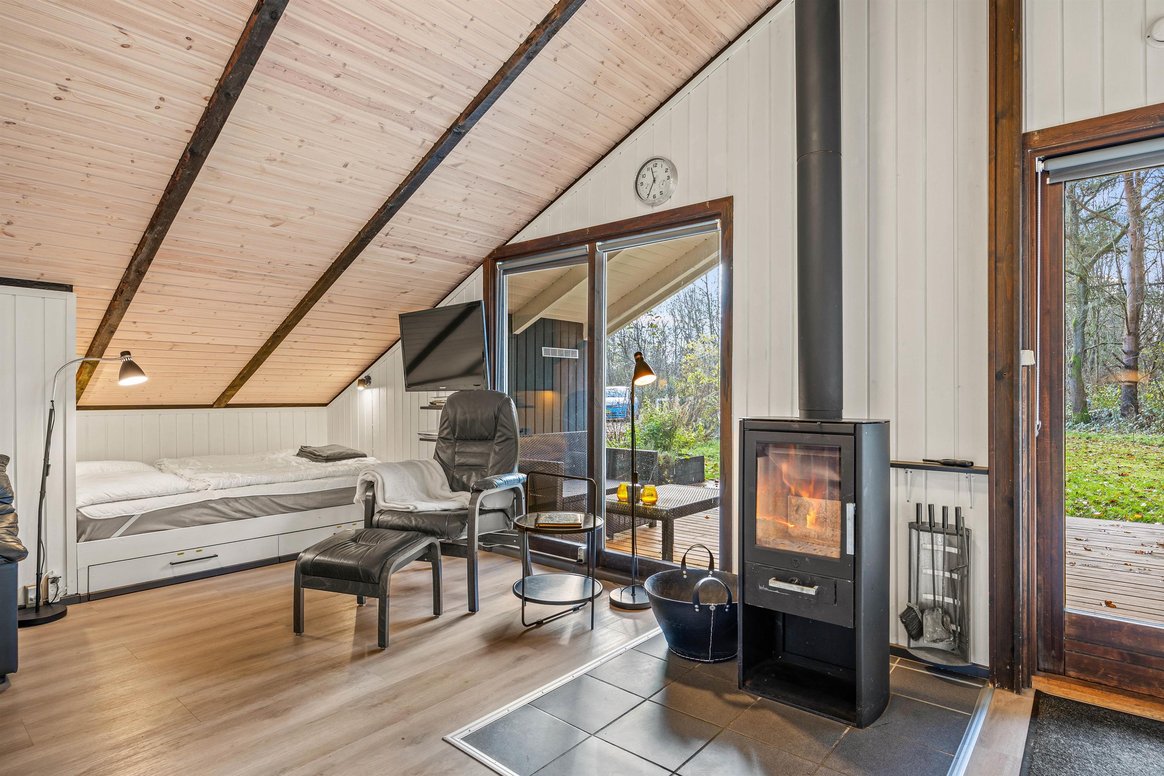 Feriehuset opvarmes via en energisparende varmepumpe, der sørger for en behagelig temperatur og et godt indeklima.