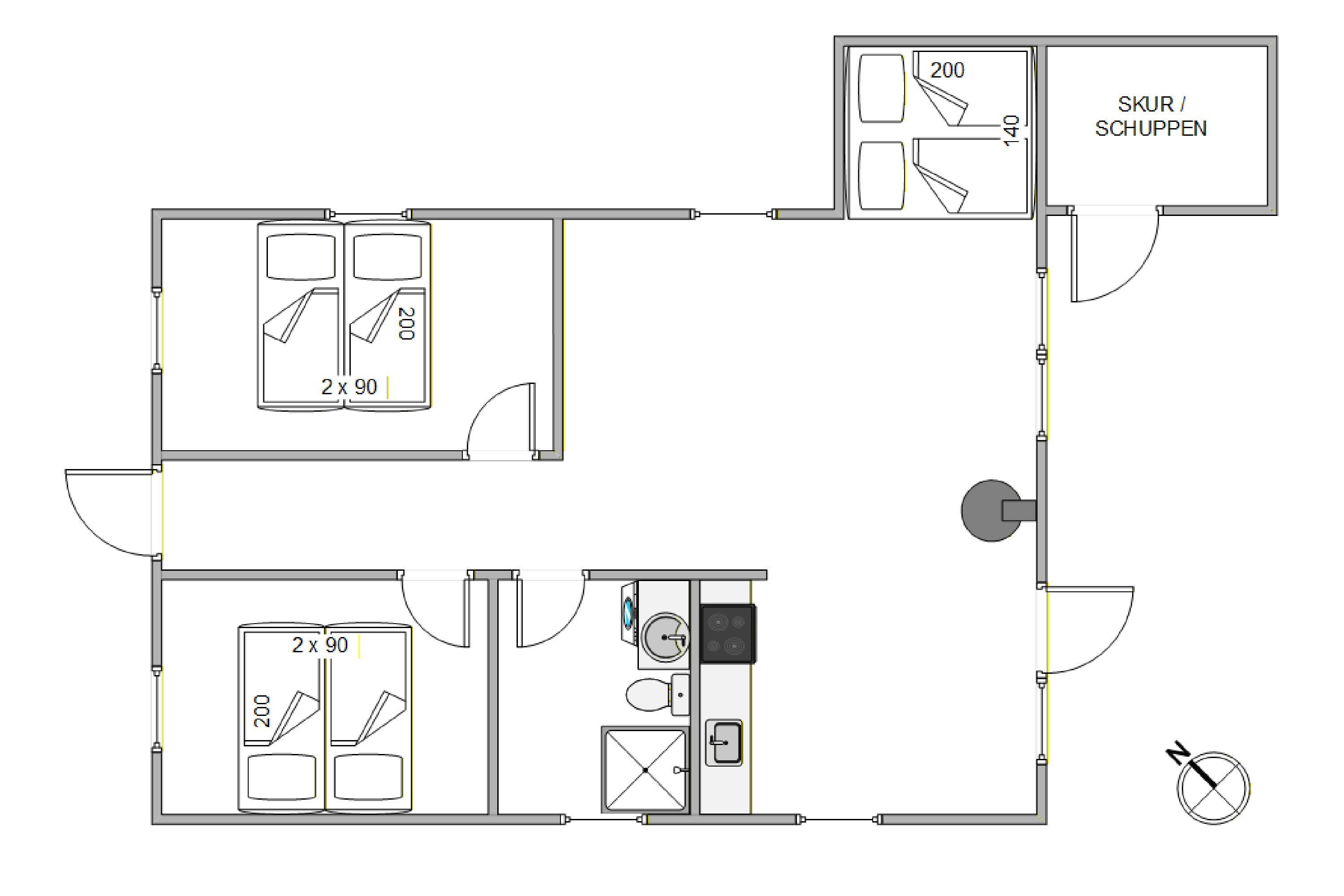 Fordelt på det 63m2 boligareal venter jer 2 rummelige soveværelser hver med dobbeltseng, hvor I kan trække jer tilbage og nyde en god nats søvn efter en begivenhedsrig feriedag. De sidste sengepladser findes i alkoven, der især er et hit blandt børnene. Det lyse badeværelse har, udover bruseniche og gulvvarme, også en vaskemaskine, så I nemt kan vaske tøj under opholdet.