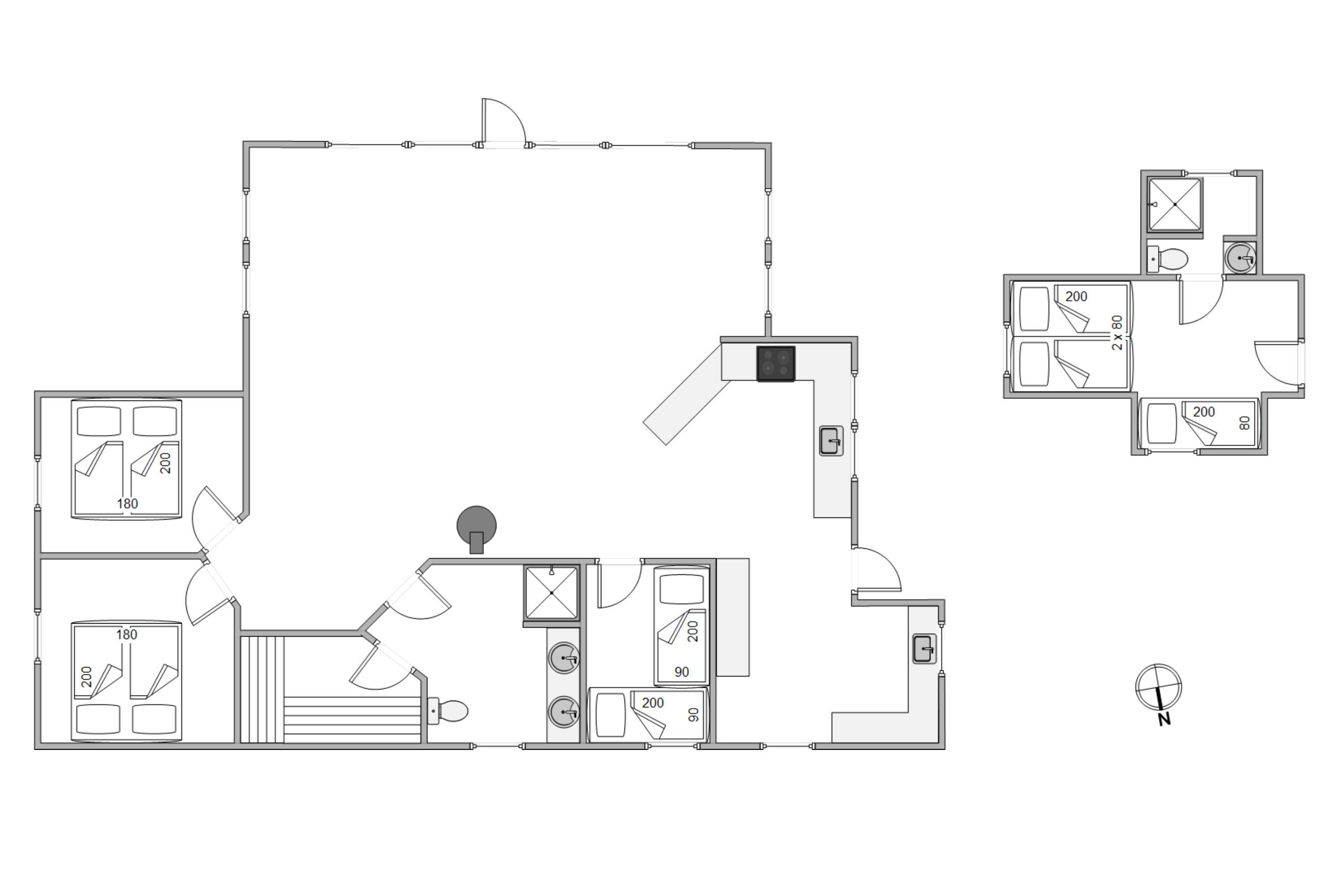 4. soverum/sengestørrelserAnnex, 2x90x200+80x200