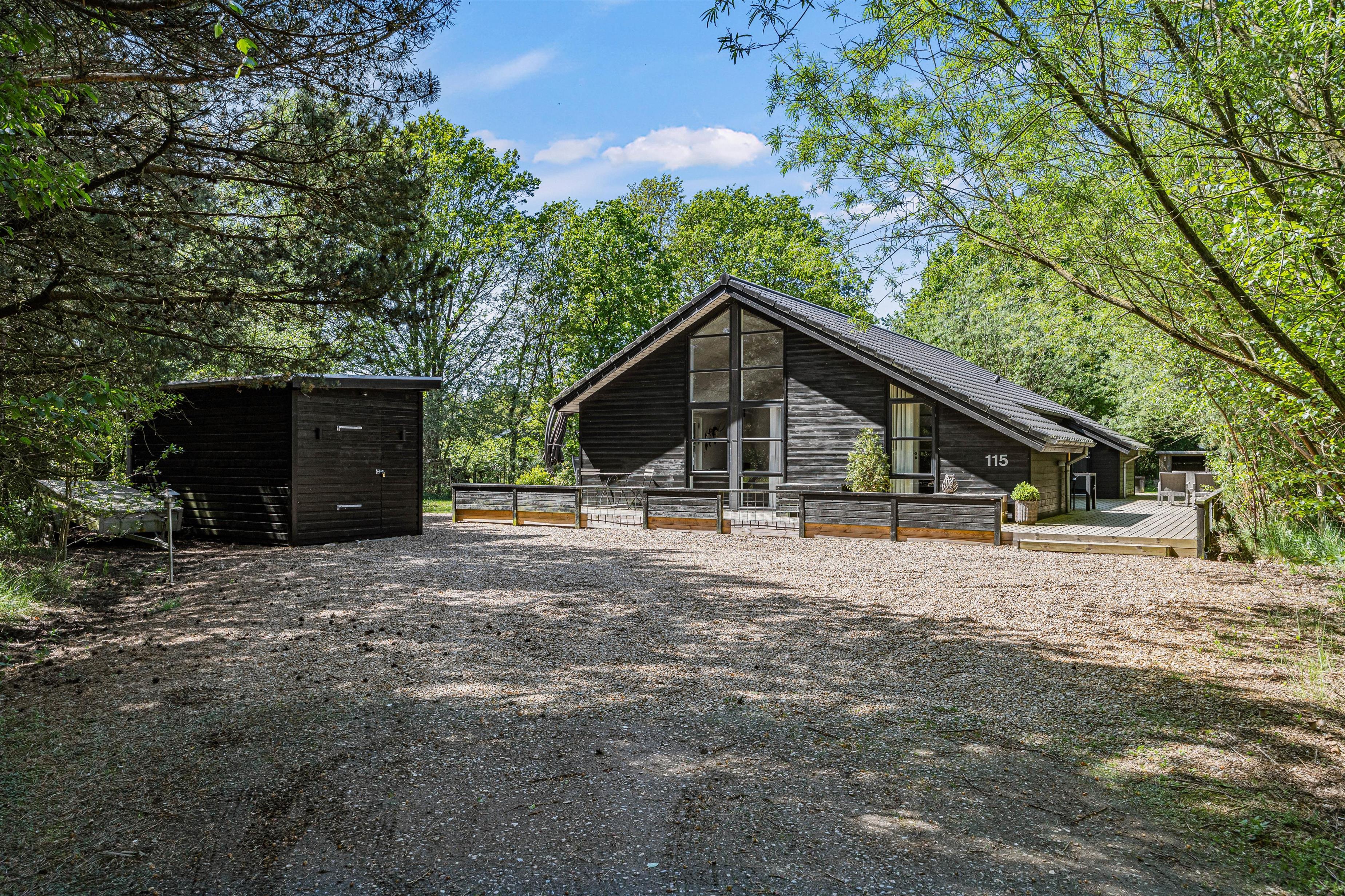 Feriehuset på Blomstervangen 115 er beliggende på en 1593m² stor natur- og plænegrund, der giver jer masser af udendørsplads til sjov og leg. De idylliske omgivelser indbyder til lange gåture og aktiviteter i det fri. Den åbne terrasse er perfekt til at nyde solen og hyggelige grill-aftener.