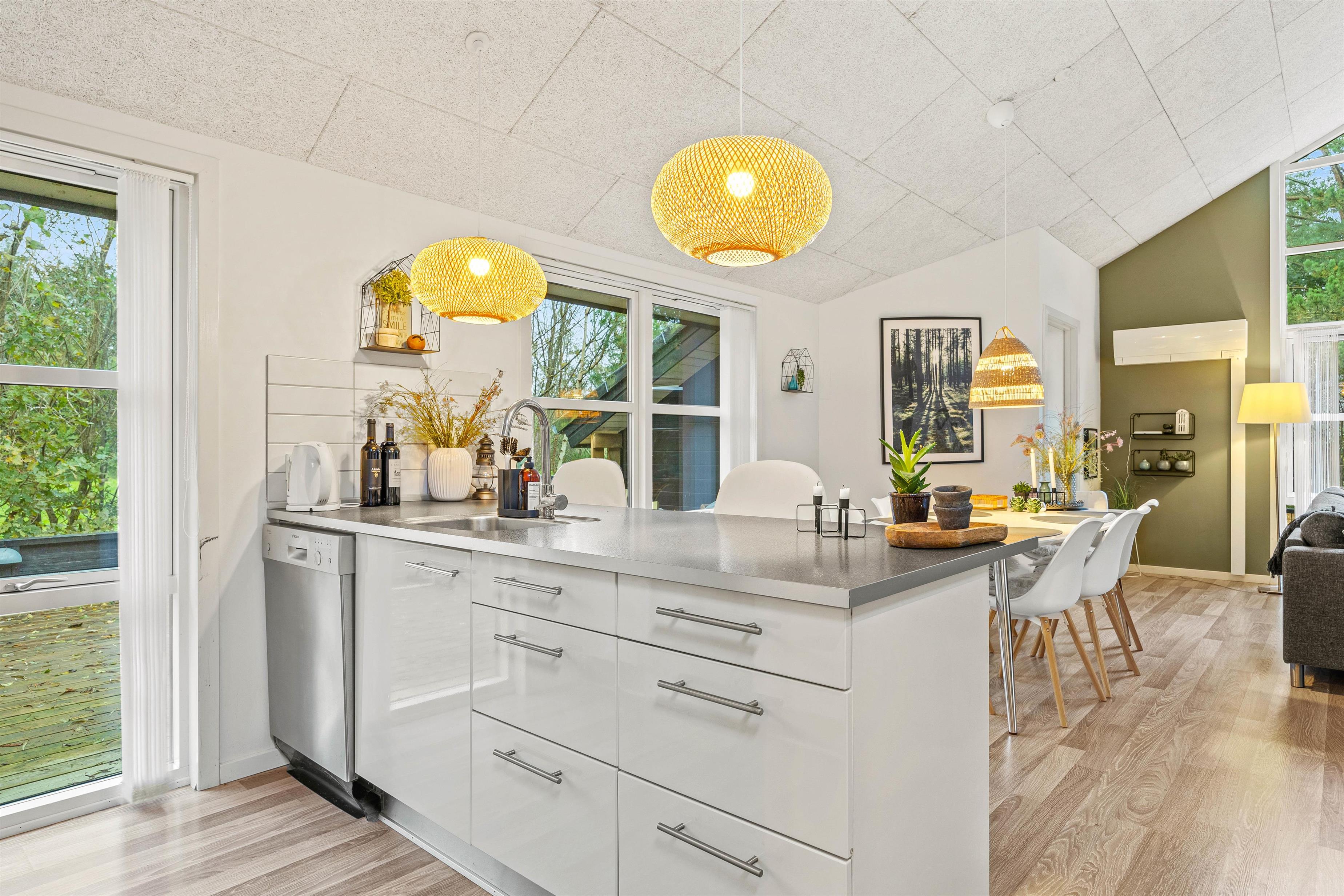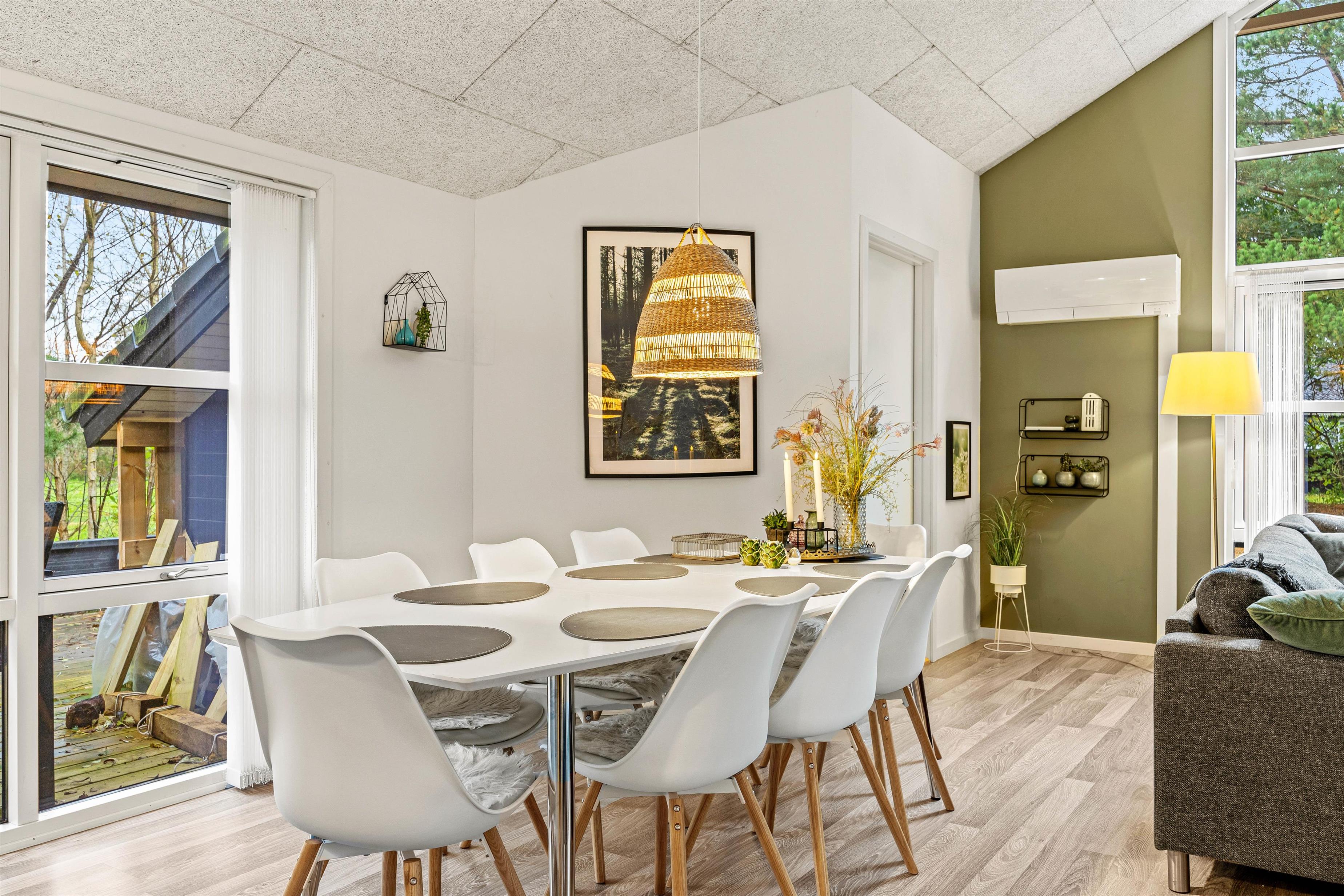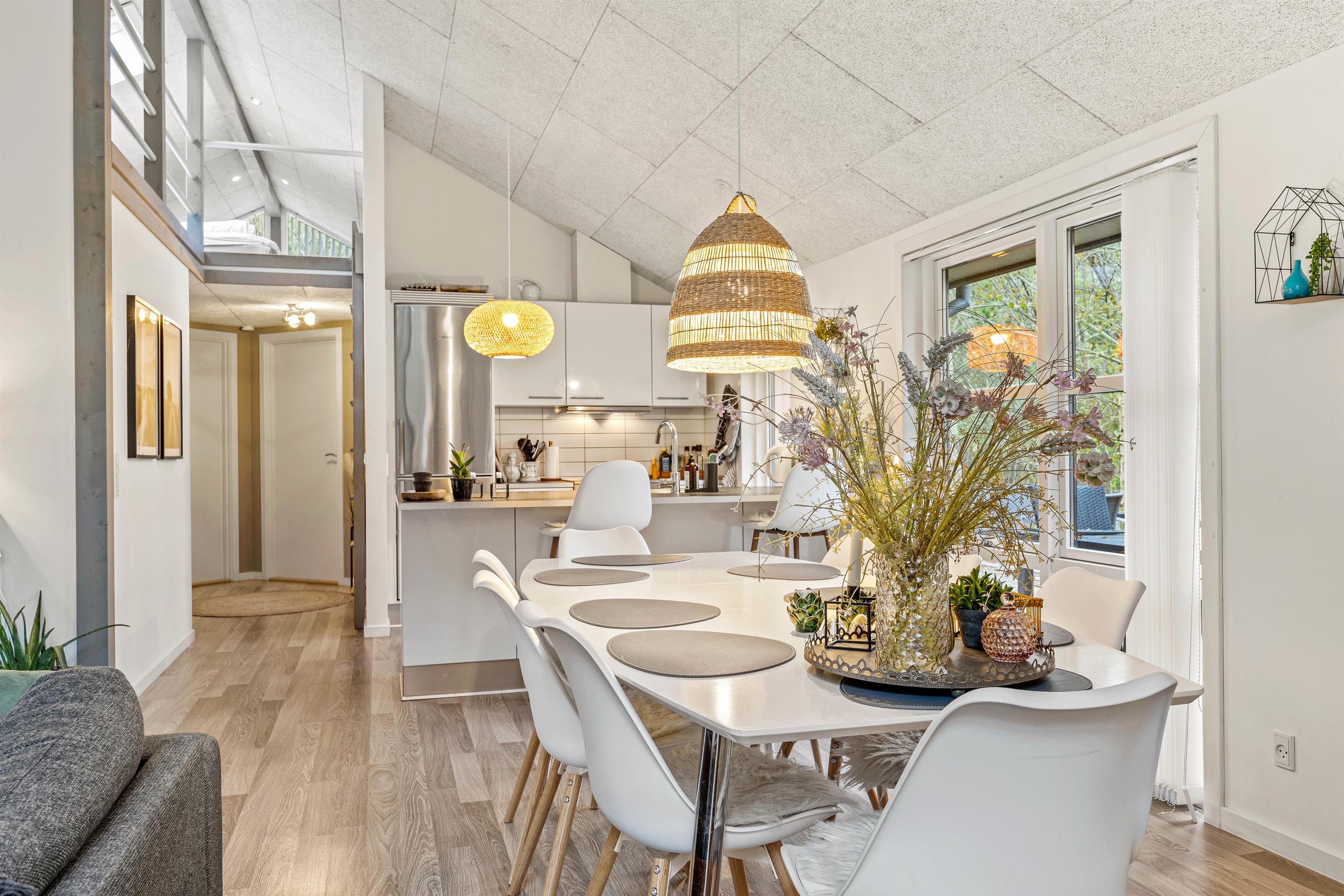 Hvert af feriehusets rum er indrettet med kvalitetsmøbler og stilfulde detaljer og tilbyder maksimal komfort. Det rummelige opholdsareal på 106 m² giver jer masser af plads til afslapning og velvære. Bliv betaget af den moderne og stilfulde indretning i dette feriehus.
