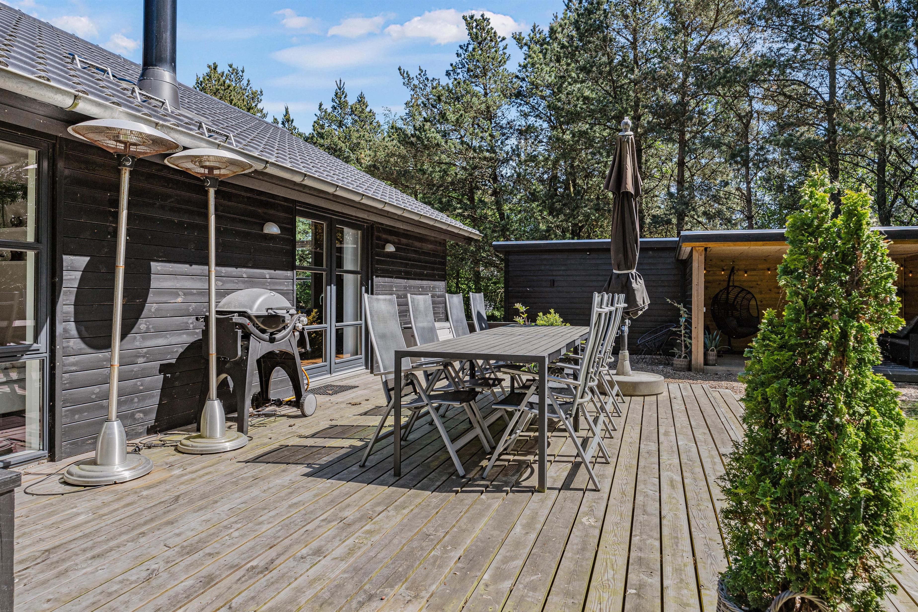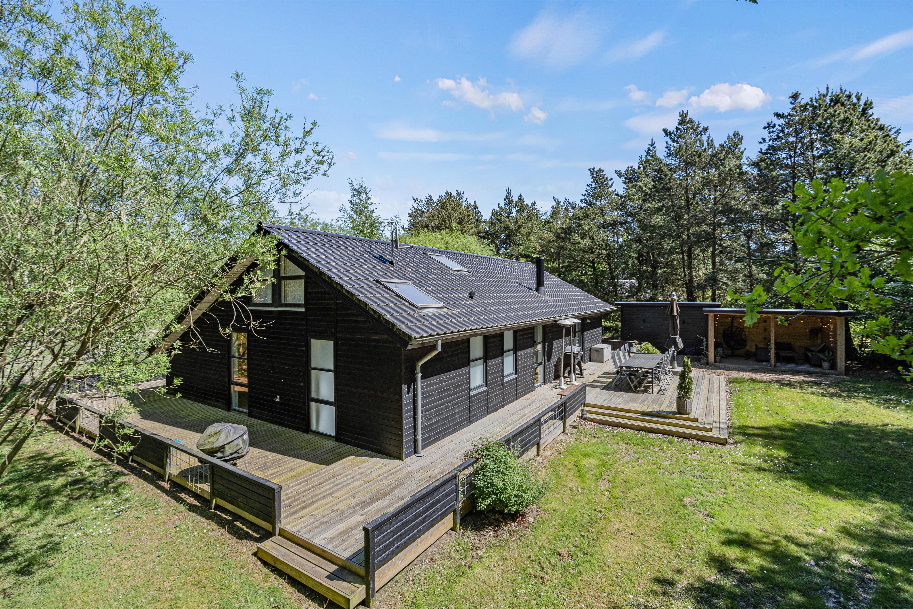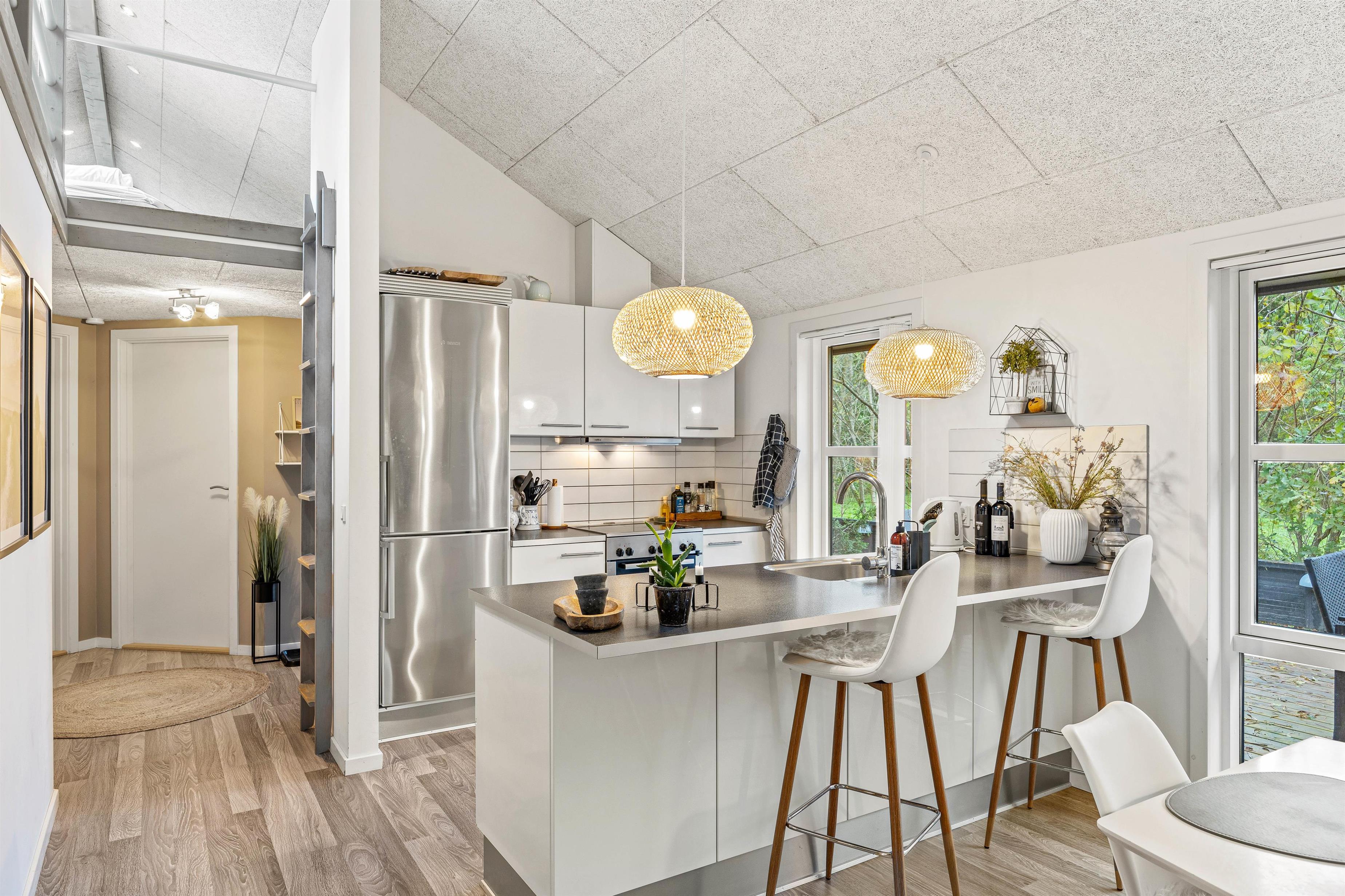 Hvert af feriehusets rum er indrettet med kvalitetsmøbler og stilfulde detaljer og tilbyder maksimal komfort. Det rummelige opholdsareal på 106 m² giver jer masser af plads til afslapning og velvære. Bliv betaget af den moderne og stilfulde indretning i dette feriehus.