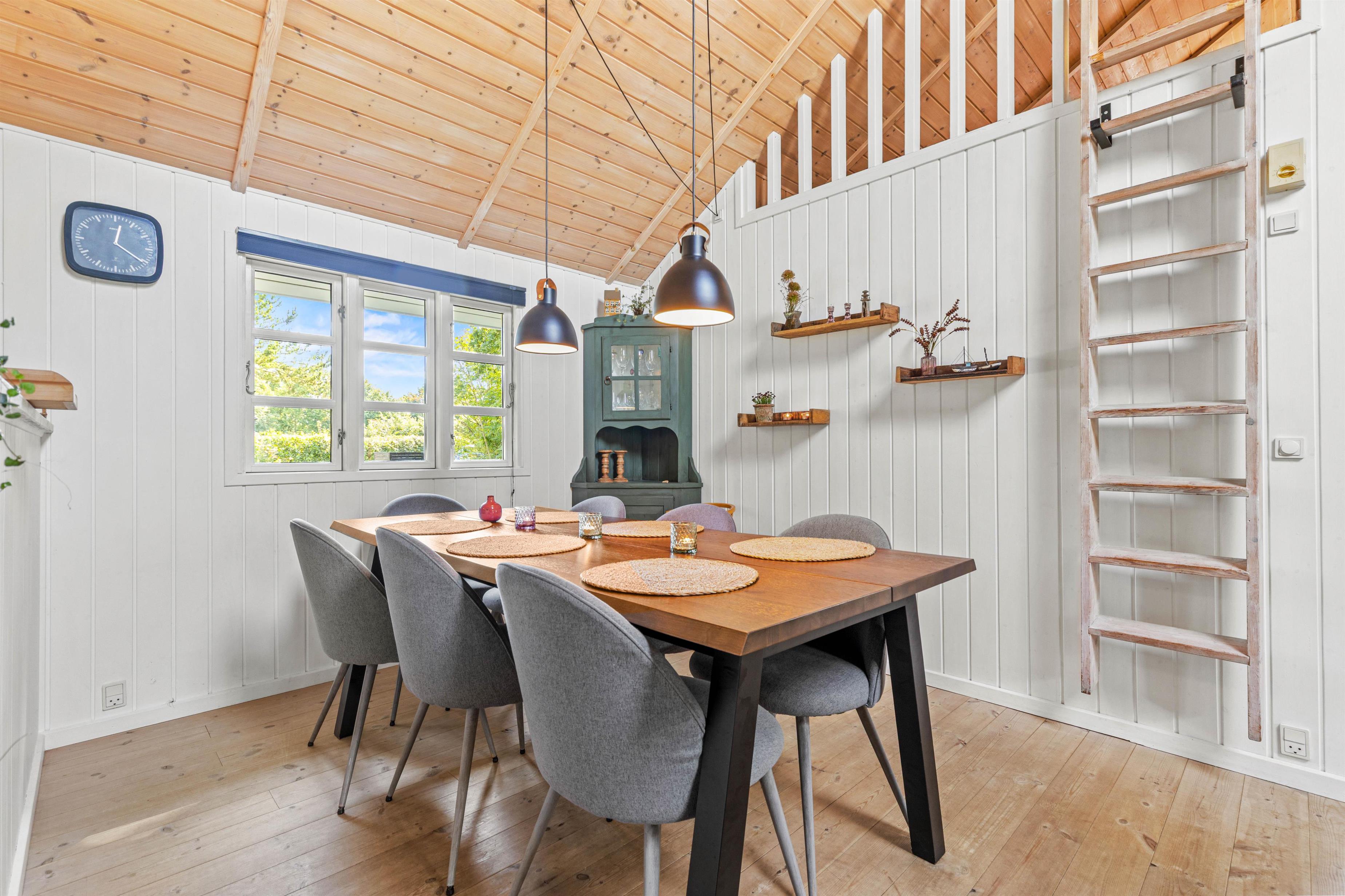 Sovepladserne er fordelt på 3 soverum – 2 værelser med dobbeltsenge og 2 enkeltsenge, der befinder sig i det lille anneks. Husets badeværelse er udstyret med gulvvarme, og her har I både vaskemaskine og tørretumbler. Naturligvis er der gratis trådløst internet i sommerhuset.