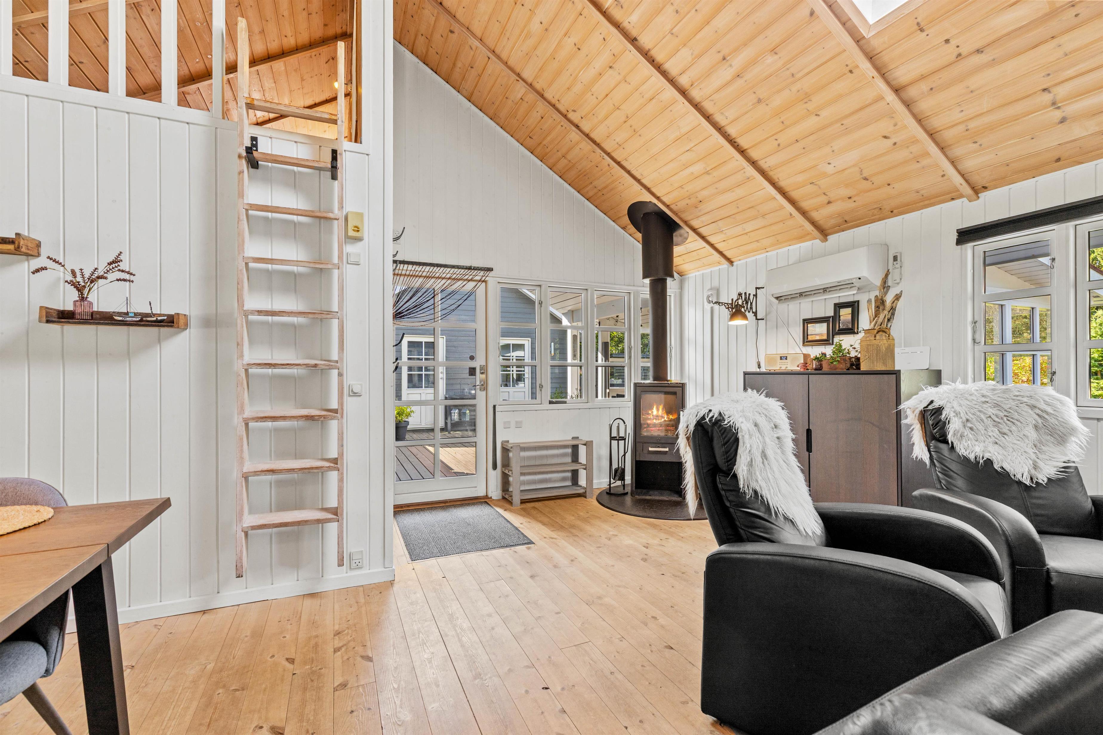 De store vinduer giver et dejligt lysindfald i køkkenalrummet, der består af en stue med lækre lædermøbler, et spisehjørne med et langt spisebord og et stort rummeligt køkken med opvaskemaskine. Her kan I samles op til 6 personer til fælles madlavning, spilleaftener ved spisebordet eller til en god film, imens jeres 2 hunde flader ud i varmen foran brændeovnen.