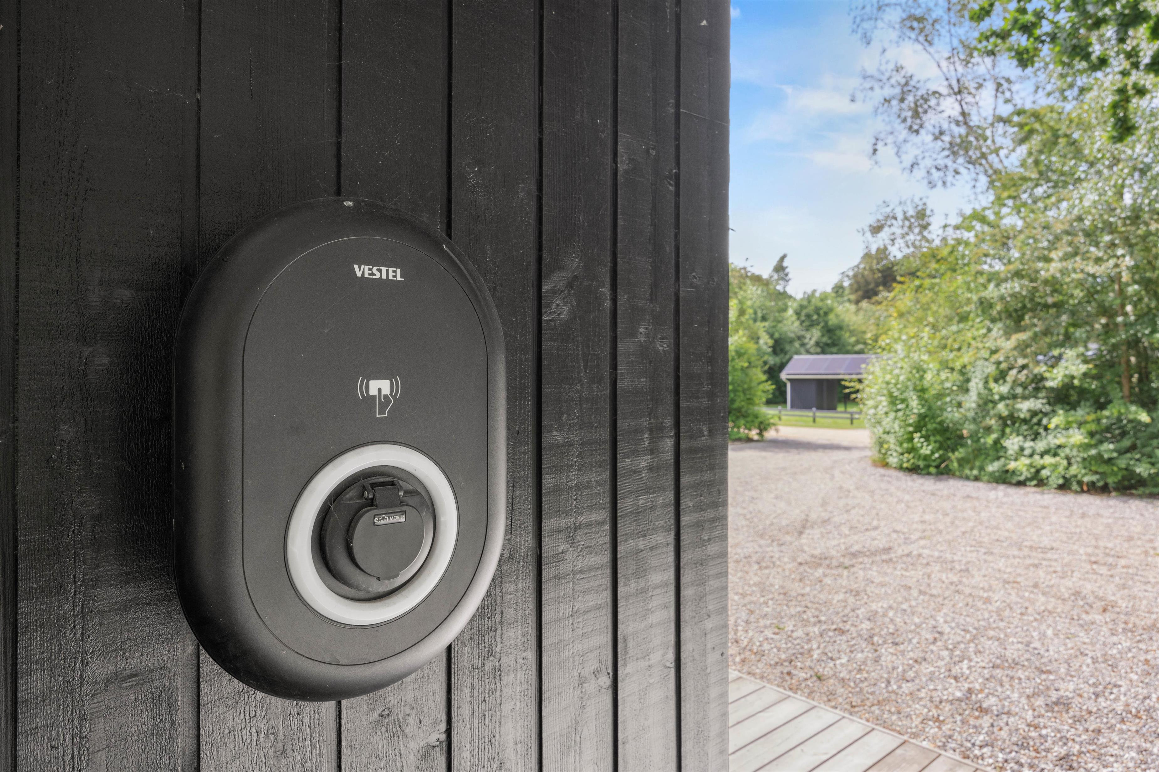 For dem med el-bil er der tænkt på alt; sommerhuset er udstyret med en ladestander, så bilen kan lades op, mens I nyder roen og lader batterierne op.
