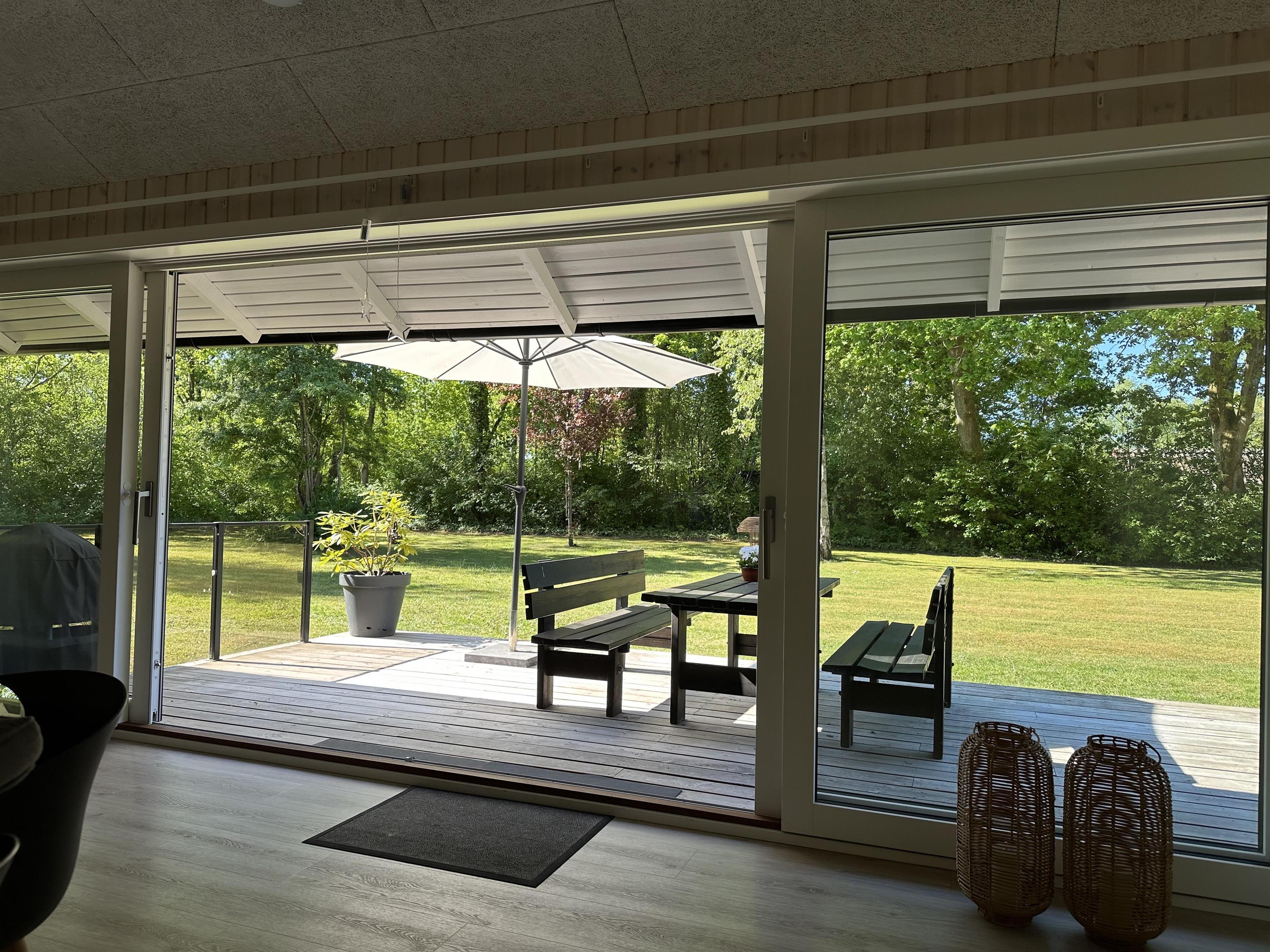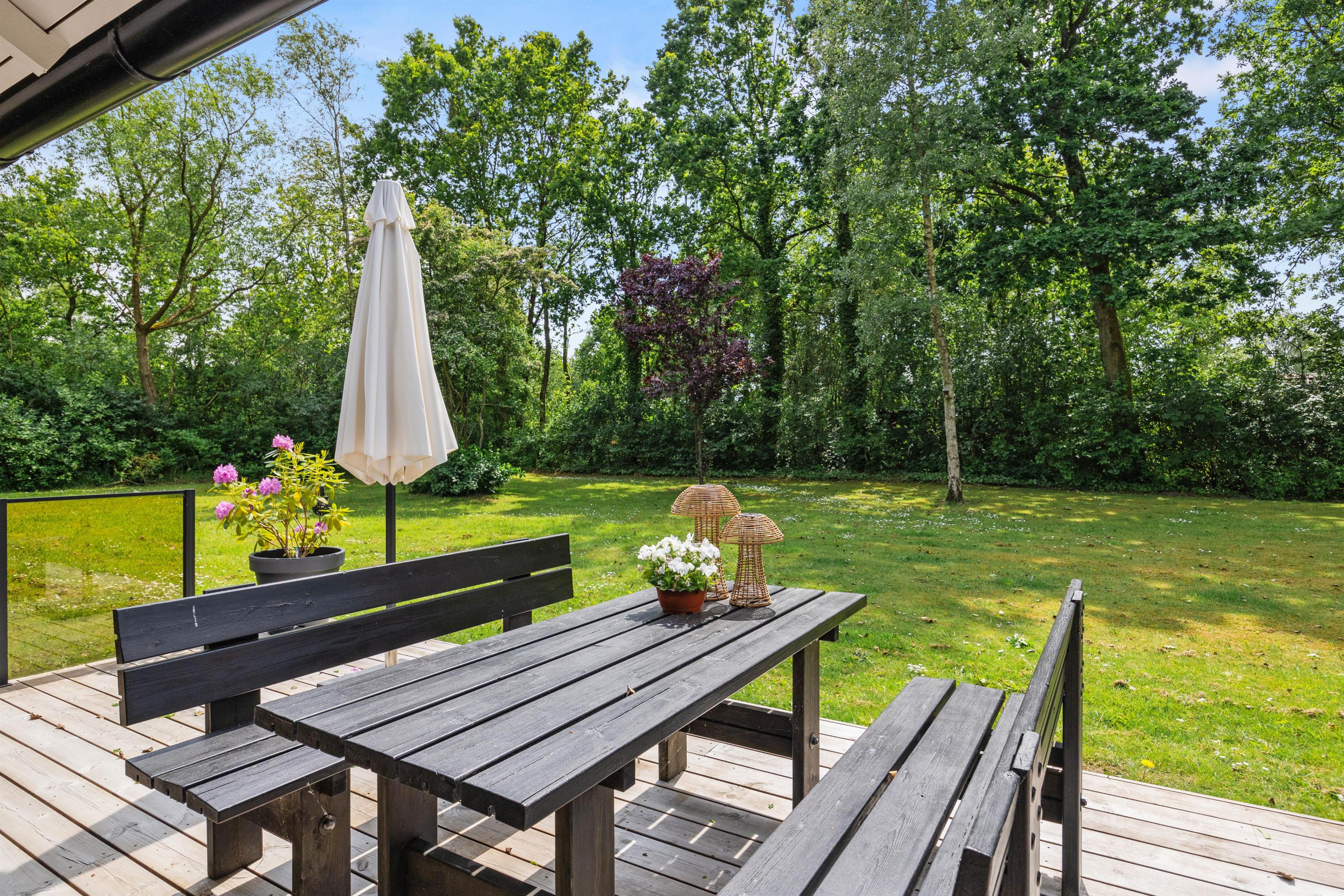 Fra terrassen har I udsigt over den skønne plænegrund, der indbyder til leg og spil – måske en familieturnering i kongespil?