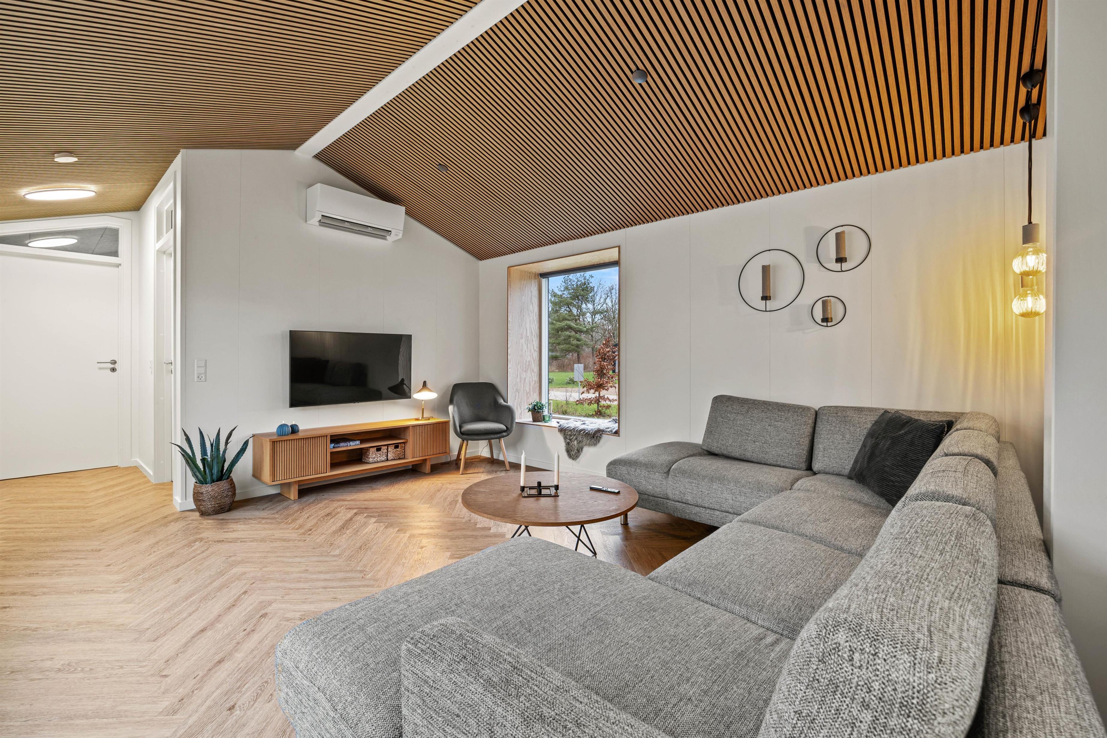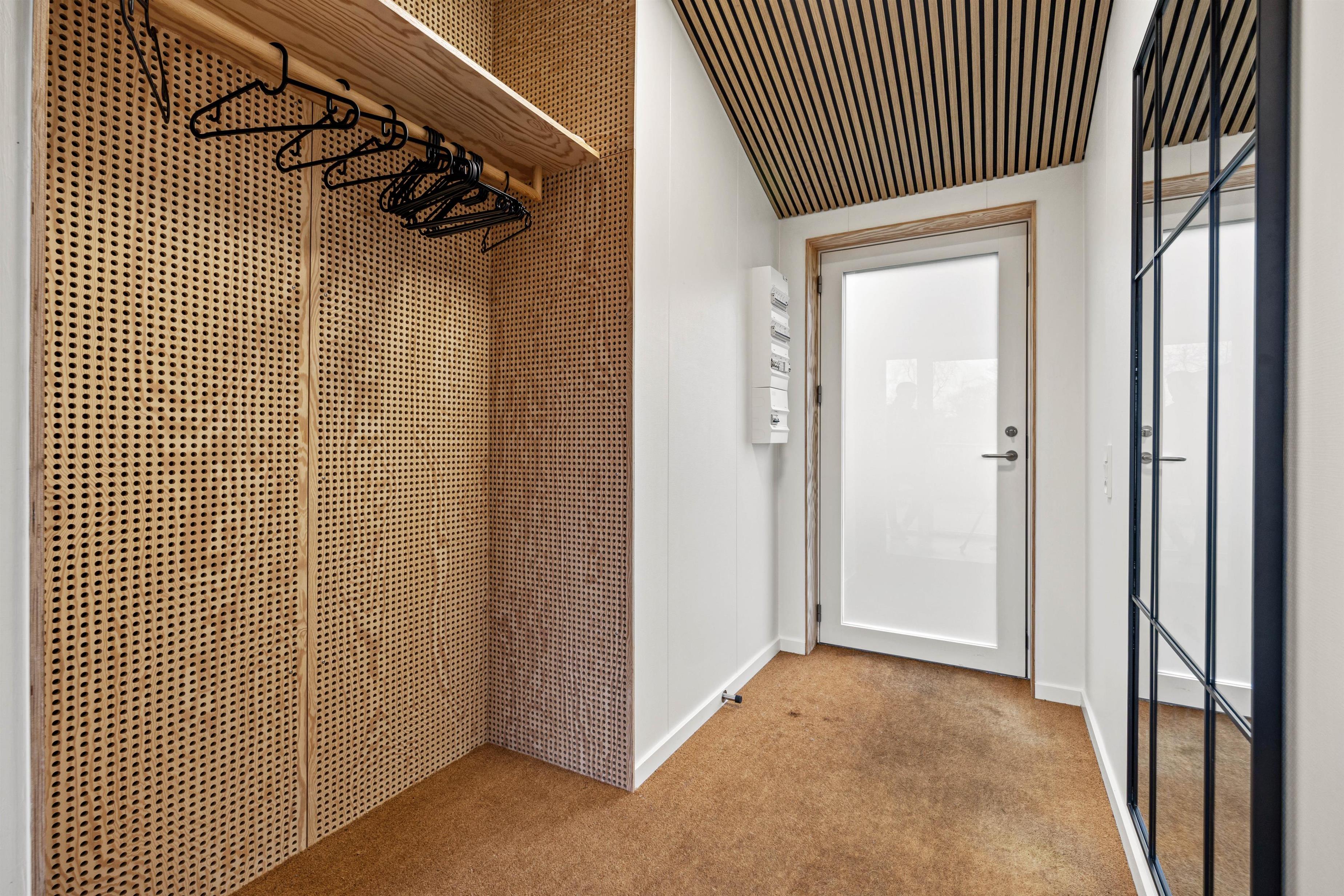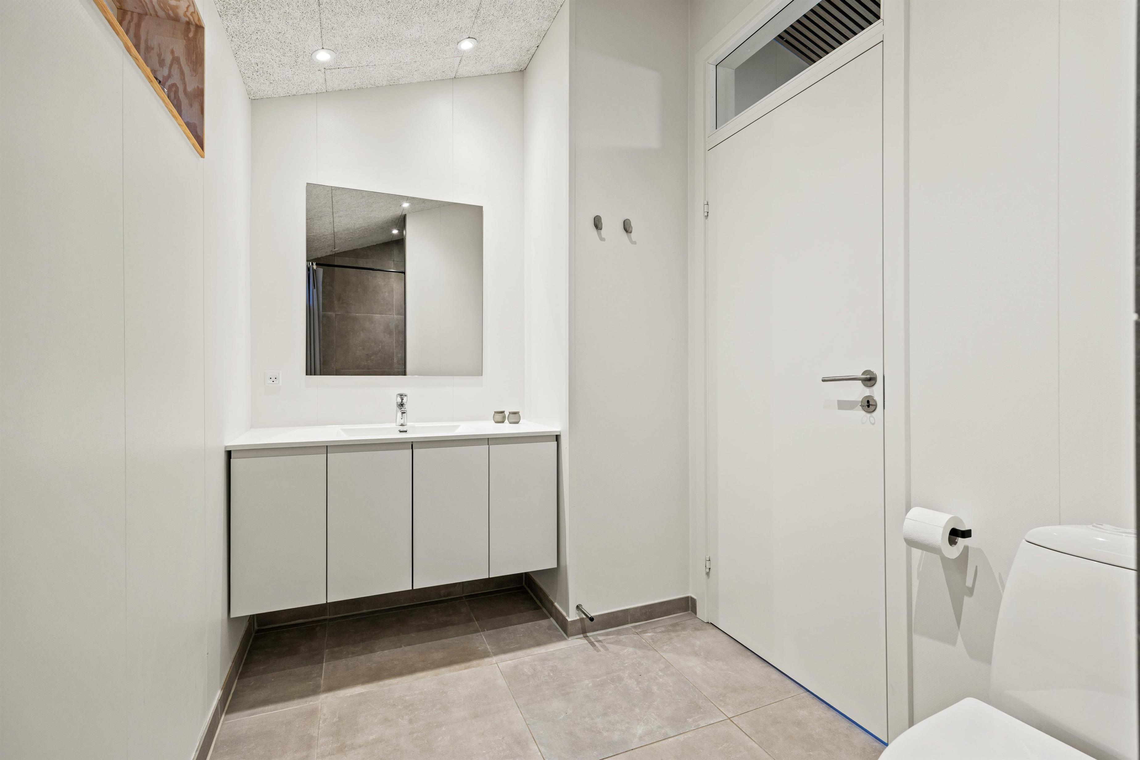 Badeværelset byder på et rummeligt bruseområde og god opbevaringsplads, så alle let kan dele faciliteterne. Her finder I også en vaskemaskine, som er praktisk til længere ophold. Den energivenlige luft-til-luft varmepumpe sørger samtidig for et behageligt og lunt indeklima – ideelt efter en dag ude i naturen.