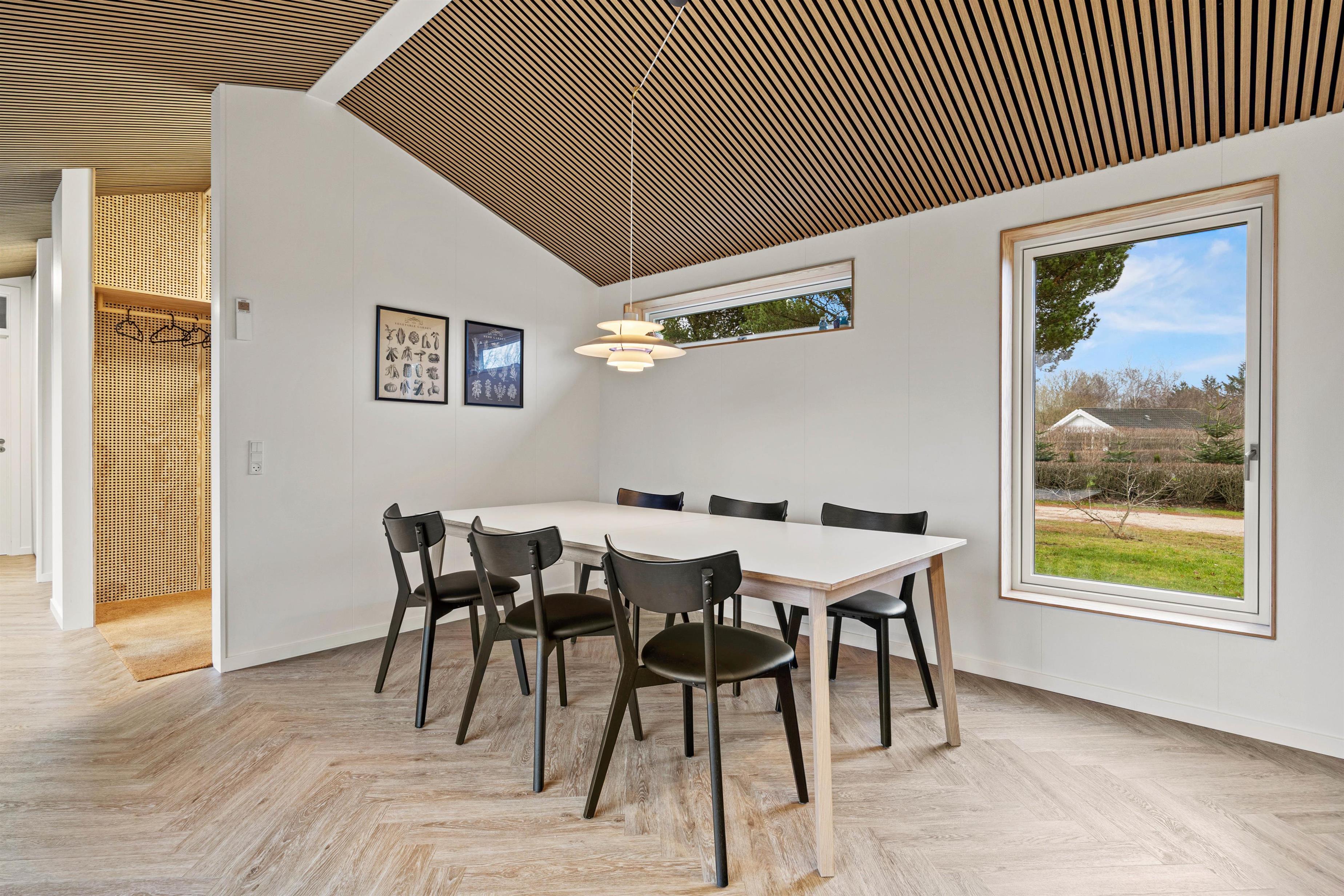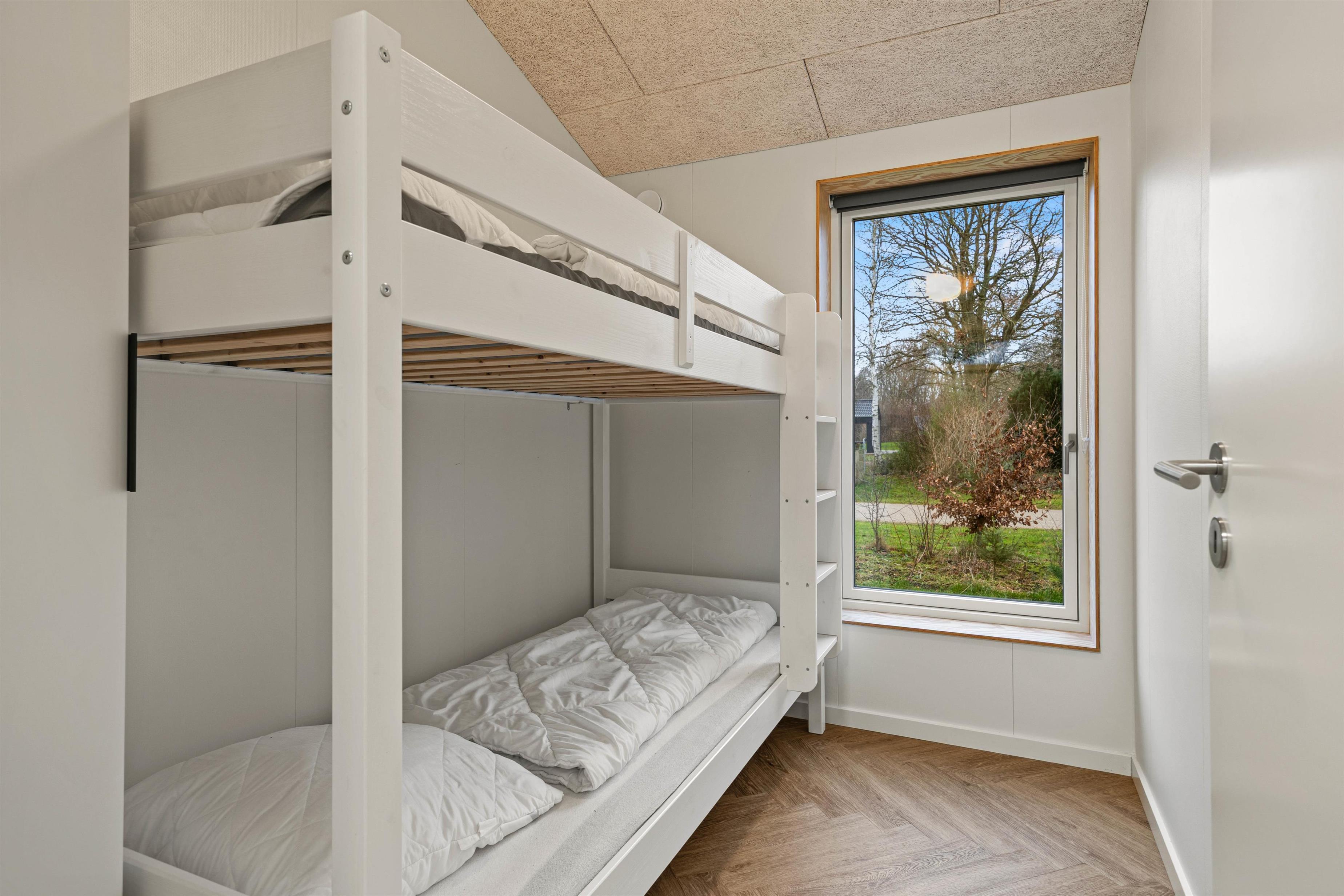 Sommerhuset har plads til op til 6 personer fordelt på 3 indbydende soveværelser med 2 dobbeltsenge og 1 køjeseng, perfekt til både familier og vennegrupper. De store vinduer giver et smukt lysindfald og skaber en varm og afslappet atmosfære i hele sommerhuset.