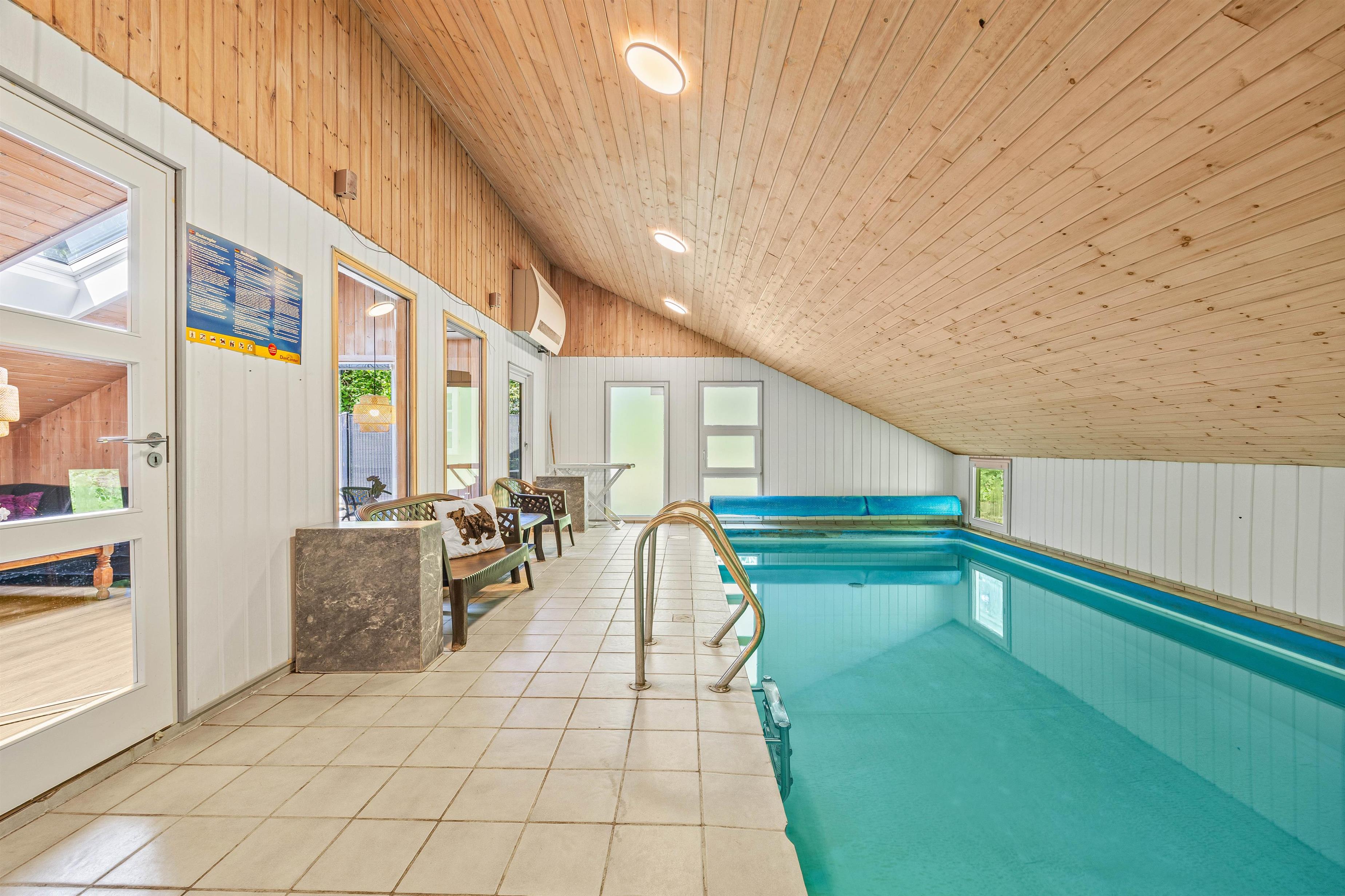 Rummeligt poolhus med brændeovn, spabad og sauna